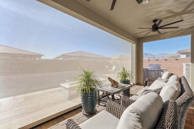 Welcome to this stunning Affirm model in the sought-after Trilogy at The Polo Club -- better than new and loaded with over $250,000 in upgrades! This immaculate home features 2 bedrooms plus a spacious enclosed den with custom built-ins, ideal as a bonus room, office, or potential 3rd bedroom. Step inside to find designer finishes and fixtures throughout, showcasing true pride of ownership. The open-concept layout flows seamlessly to the backyard retreat -- a true masterpiece. Enjoy a Pebble Tec pool with tanning shelf, spa, three tranquil water features, a firepit, and a full outdoor kitchen complete with Blaze 5-burner grill, griddle, and power burner. The covered patio features motorized screens, creating an enclosed extension of the living space when the sliding doors are open. The extended garage includes cabinetry, epoxy flooring, and a mini-split system. Energy-efficient solar panels and IID electric keep costs low, and low HOA dues make this home even more appealing. Luxury, comfort, and functionality -- this home truly has it all!