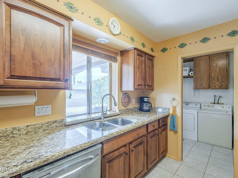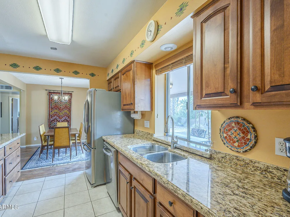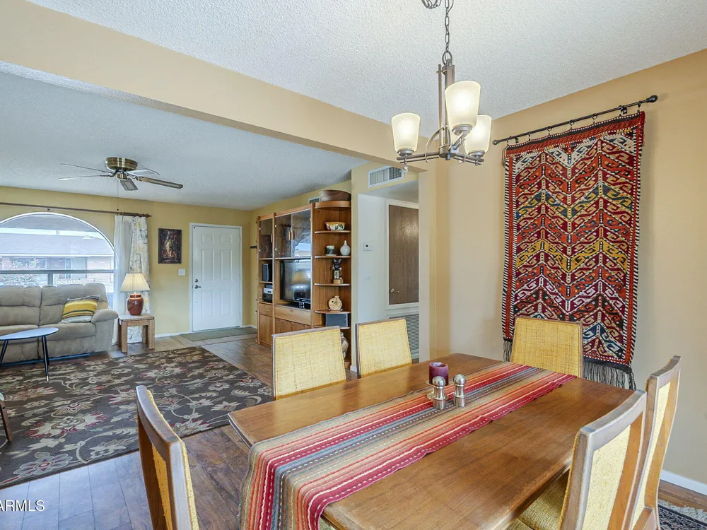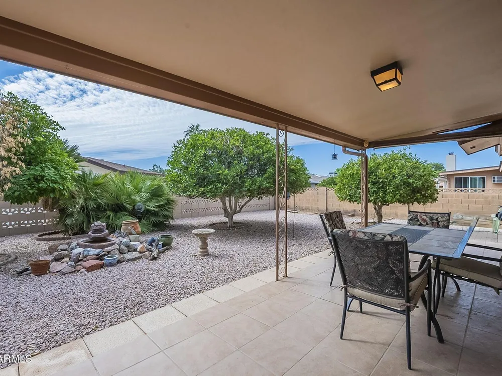 Looking for the perfect lock-and-leave home in one of the East Valley's favorite active adult communities? You've just found it! This 2 bedroom, 2 bathroom furnished gem checks all the boxes with just the right amount of space, a great layout, and updates where they count; roof replaced in 2020 and A/C in 2017. Inside, you'll love the open-concept living and dining area that flows into the remodeled kitchen, complete with newer appliances and a sit-up breakfast bar (perfect for morning coffee or chatting with friends while you cook). Both bedrooms are spacious, offering comfort whether you're full-time or seasonal. Step outside and soak up the Arizona lifestyle in your south-facing backyard—a true desert oasis with mature palm and citrus trees, a large covered patio, and plenty of sunshin And there's more! The double garage includes a rare workshop space, ideal for projects, tinkering, or extra storage. The home comes furnished, too (just a few exclusions; ask the listing agent). But the real magic? Location! You're just a short stroll from the North Complex amenities; tennis, shuffleboard, pool, lap pool, hot tub, fitness center, HOA office, library, billiards room, and a jam-packed calendar of fun events and activities. This is more than just a home, it's your ticket to the good life in Sunland Village East. Move right in and start living the resort lifestyle today!