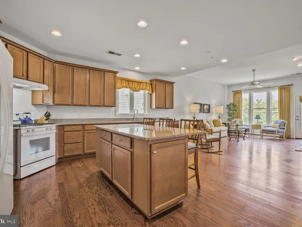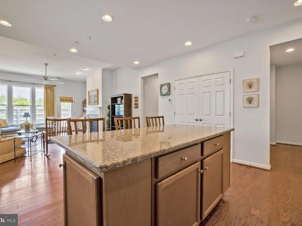- Breakfast Area, Kitchen - Island, Kitchen - Table Space, Family Room Off Kitchen, Entry Level Bedroom, Upgraded Countertops, Wood Floors, Floor Plan - Open