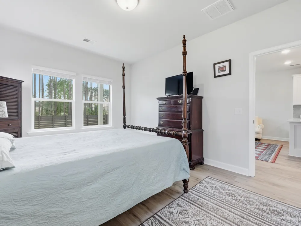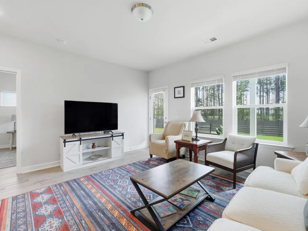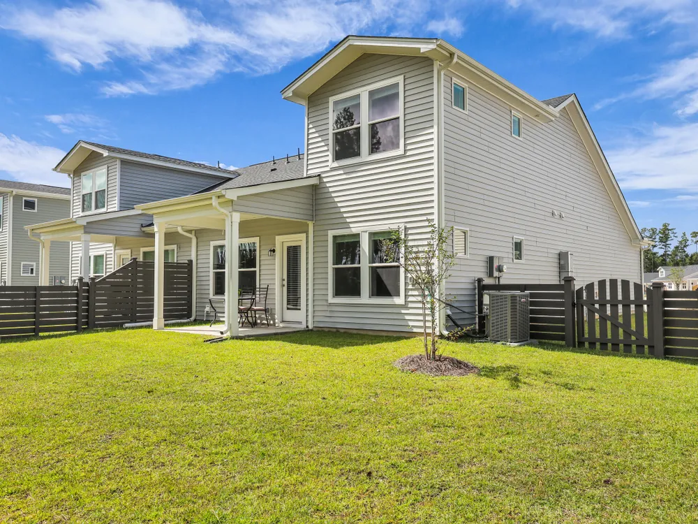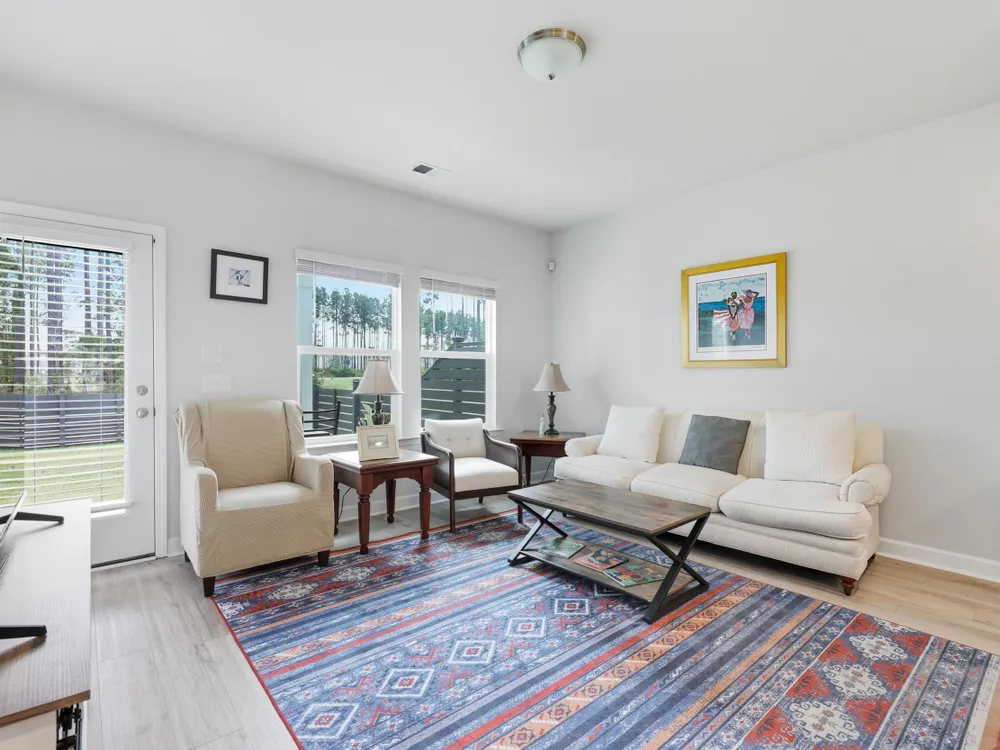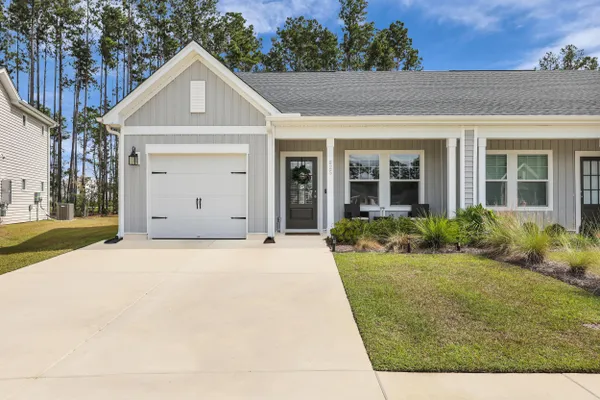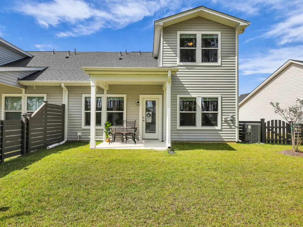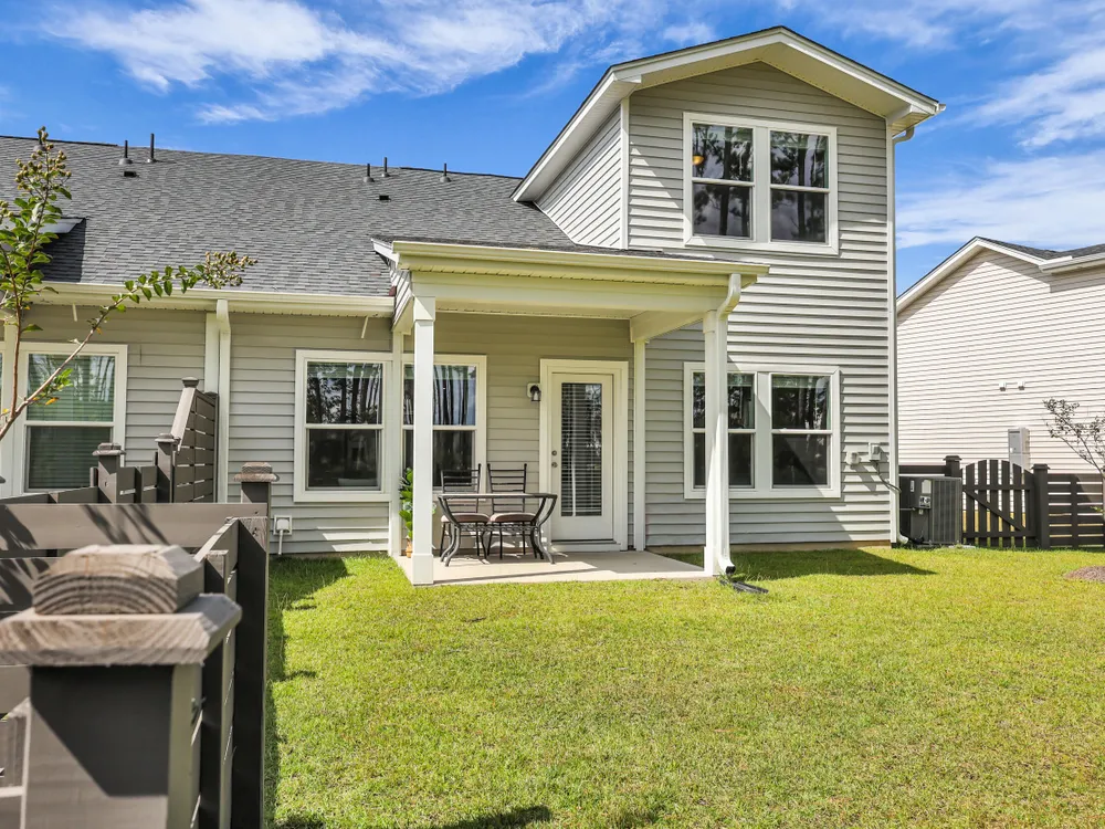 Welcome to this barely lived-in gem located in the desirable 55+ community of Hammock Walk Villas in Nexton. Designed for both comfort and style, this home offers thoughtful upgrades and a flexible layout that fits a variety of lifestyles. From the moment you step inside, you're greeted by durable, neutral-toned luxury vinyl plank flooring that runs throughout the main level, creating a seamless and modern feel.Just off the entry, a versatile flex space with double doors and a closet can be used as a home office, reading room, dining, or even an additional bedroom. The kitchen is a true centerpiece, featuring white cabinetry with brushed nickel hardware, a farmhouse sink, solid white countertops, a warm grey tile backsplash, stainless steel appliances, and convenient bar seatingperfect for casual dining or entertaining guests. The main-floor primary suite offers both privacy and elegance, with additional windows the builder no longer offers, allowing for extra natural light. The spacious ensuite bathroom includes dual sinks and an oversized walk-in shower with a tile floor. Upstairs, you'll find a generously sized secondary bedroom along with a charming loft area ideal for a desk, reading nook, or decorative display. Additional features include five-panel interior doors, blinds throughout, a glass-pane front door, an in-wall Taexx pest control system, a home alarm system, a covered rear patio, and a brand-new custom fence and gate. The backyard is lined with mature Carolina pines, providing both privacy and a peaceful, natural setting. Washer, dryer, refrigerator, window treatments, and garage door opener are all included, making this home truly move-in ready. Residents of Hammock Walk Villas enjoy access to exceptional community amenities including a dog park, pickleball court and patio, scenic walking and biking trails, and a tranquil pond with pavilion seating. This home combines low-maintenance living with high-end finishes and a welcoming community vibe. Schedule your private tour today and experience all that this special home has to offer.