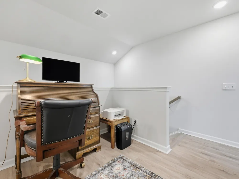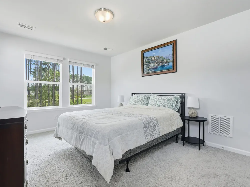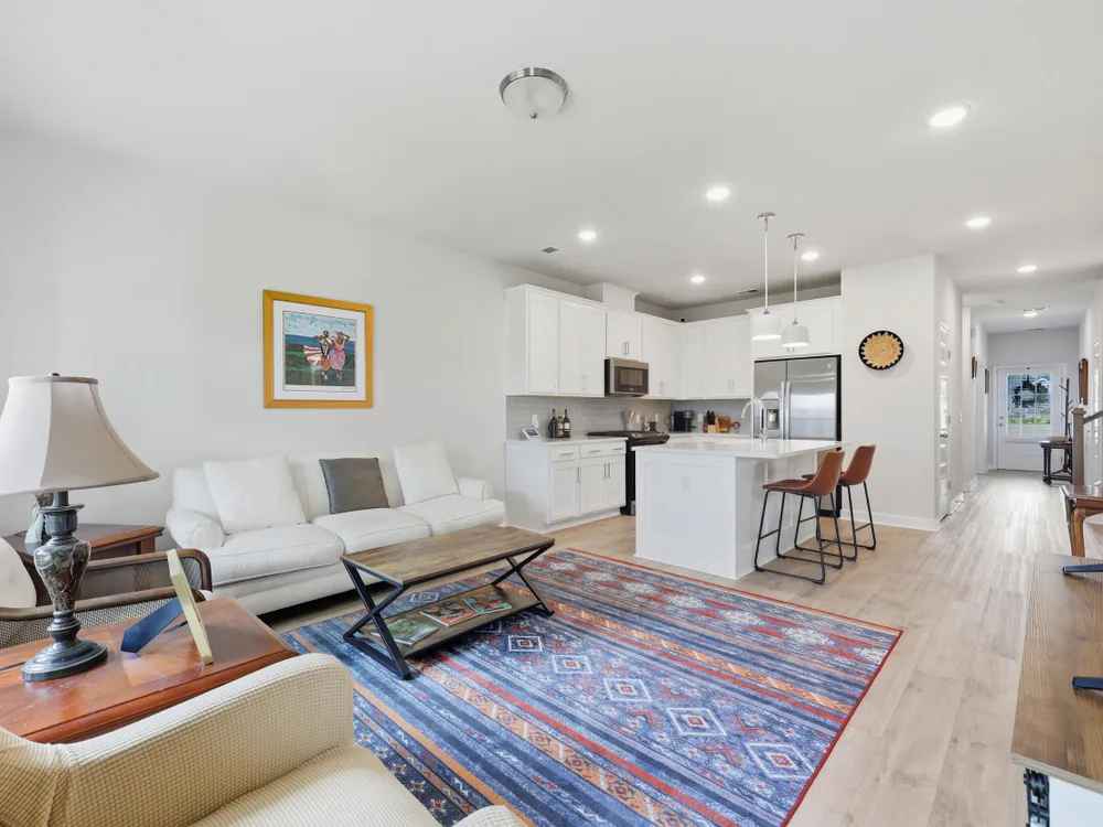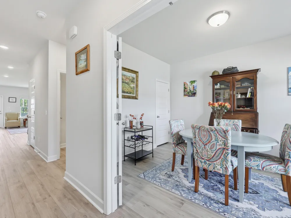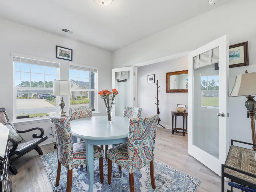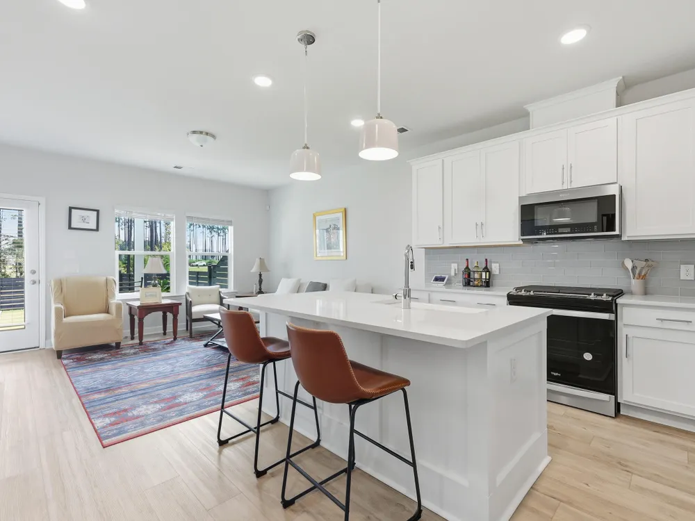 Welcome to this barely lived-in gem located in the desirable 55+ community of Hammock Walk Villas in Nexton. Designed for both comfort and style, this home offers thoughtful upgrades and a flexible layout that fits a variety of lifestyles. From the moment you step inside, you're greeted by durable, neutral-toned luxury vinyl plank flooring that runs throughout the main level, creating a seamless and modern feel.Just off the entry, a versatile flex space with double doors and a closet can be used as a home office, reading room, dining, or even an additional bedroom. The kitchen is a true centerpiece, featuring white cabinetry with brushed nickel hardware, a farmhouse sink, solid white countertops, a warm grey tile backsplash, stainless steel appliances, and convenient bar seatingperfect for casual dining or entertaining guests. The main-floor primary suite offers both privacy and elegance, with additional windows the builder no longer offers, allowing for extra natural light. The spacious ensuite bathroom includes dual sinks and an oversized walk-in shower with a tile floor. Upstairs, you'll find a generously sized secondary bedroom along with a charming loft area ideal for a desk, reading nook, or decorative display. Additional features include five-panel interior doors, blinds throughout, a glass-pane front door, an in-wall Taexx pest control system, a home alarm system, a covered rear patio, and a brand-new custom fence and gate. The backyard is lined with mature Carolina pines, providing both privacy and a peaceful, natural setting. Washer, dryer, refrigerator, window treatments, and garage door opener are all included, making this home truly move-in ready. Residents of Hammock Walk Villas enjoy access to exceptional community amenities including a dog park, pickleball court and patio, scenic walking and biking trails, and a tranquil pond with pavilion seating. This home combines low-maintenance living with high-end finishes and a welcoming community vibe. Schedule your private tour today and experience all that this special home has to offer.