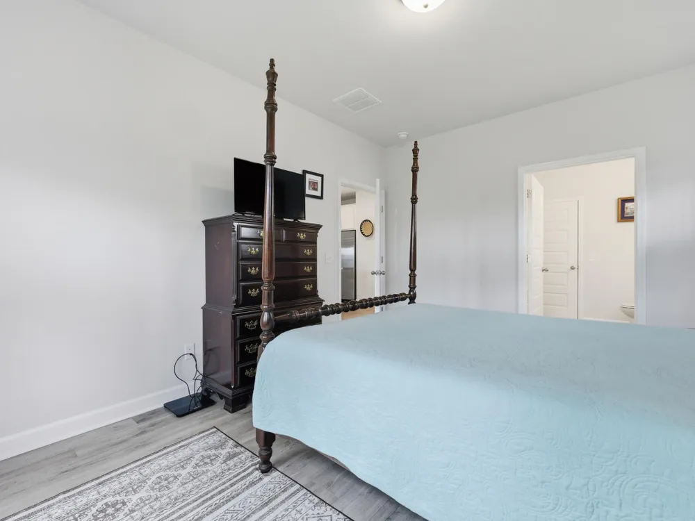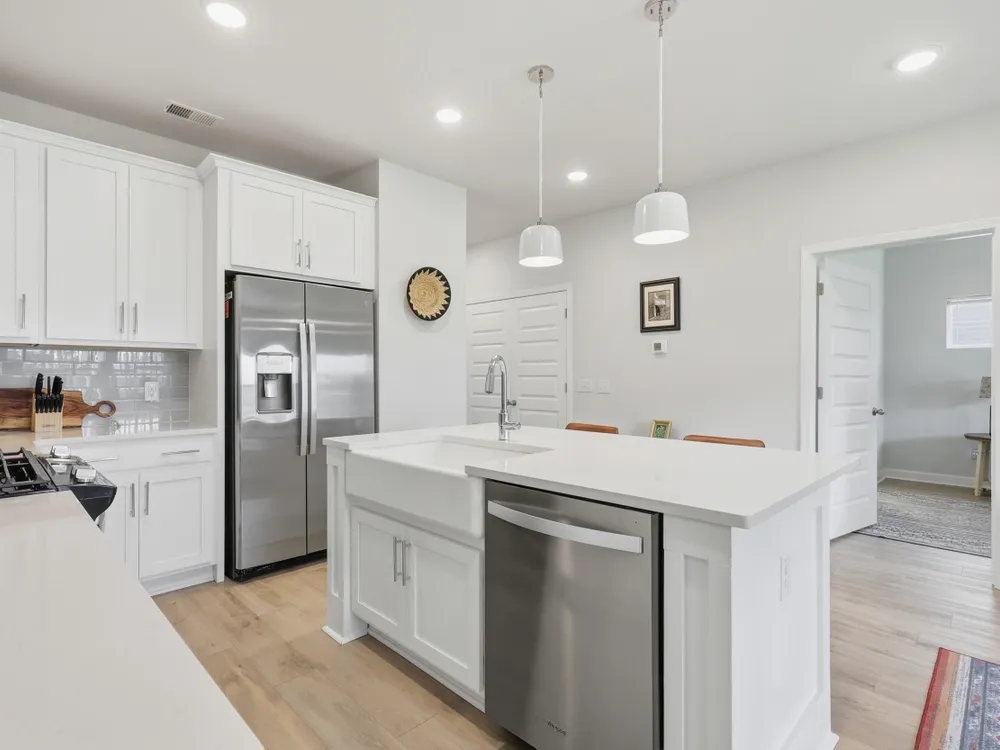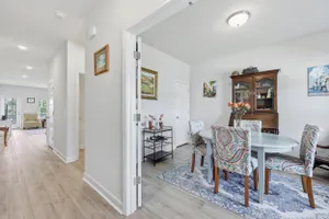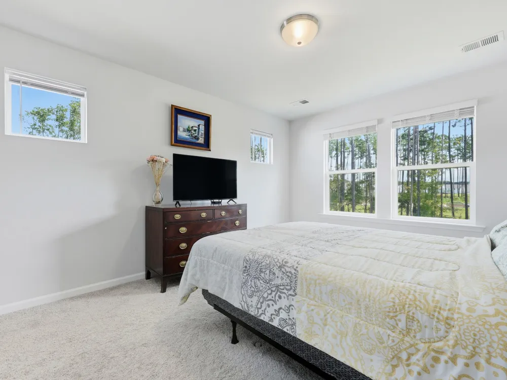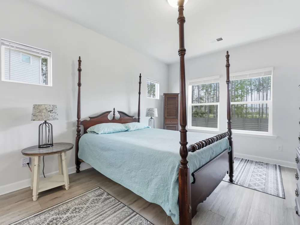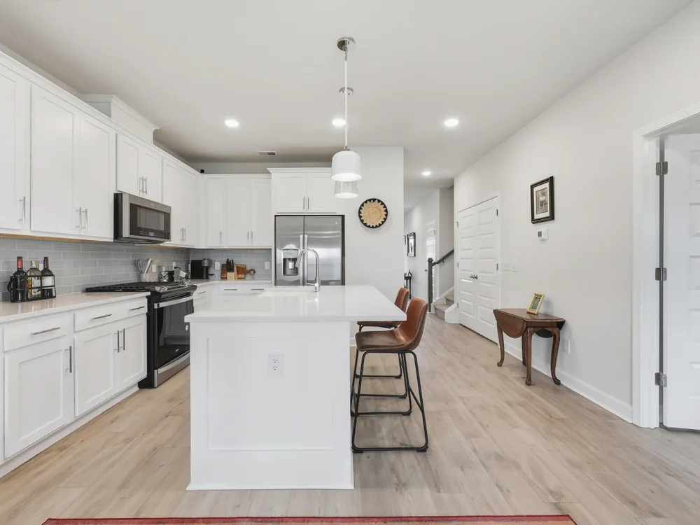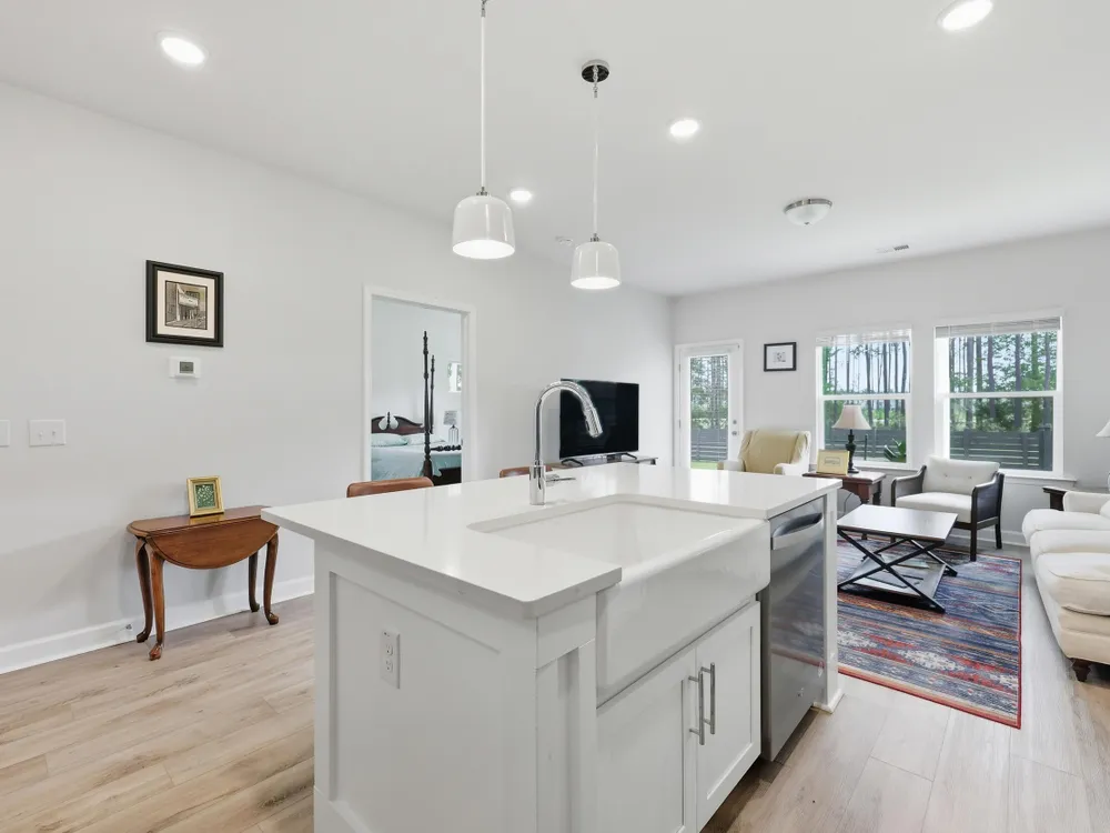 Welcome to this barely lived-in gem located in the desirable 55+ community of Hammock Walk Villas in Nexton. Designed for both comfort and style, this home offers thoughtful upgrades and a flexible layout that fits a variety of lifestyles. From the moment you step inside, you're greeted by durable, neutral-toned luxury vinyl plank flooring that runs throughout the main level, creating a seamless and modern feel.Just off the entry, a versatile flex space with double doors and a closet can be used as a home office, reading room, dining, or even an additional bedroom. The kitchen is a true centerpiece, featuring white cabinetry with brushed nickel hardware, a farmhouse sink, solid white countertops, a warm grey tile backsplash, stainless steel appliances, and convenient bar seatingperfect for casual dining or entertaining guests. The main-floor primary suite offers both privacy and elegance, with additional windows the builder no longer offers, allowing for extra natural light. The spacious ensuite bathroom includes dual sinks and an oversized walk-in shower with a tile floor. Upstairs, you'll find a generously sized secondary bedroom along with a charming loft area ideal for a desk, reading nook, or decorative display. Additional features include five-panel interior doors, blinds throughout, a glass-pane front door, an in-wall Taexx pest control system, a home alarm system, a covered rear patio, and a brand-new custom fence and gate. The backyard is lined with mature Carolina pines, providing both privacy and a peaceful, natural setting. Washer, dryer, refrigerator, window treatments, and garage door opener are all included, making this home truly move-in ready. Residents of Hammock Walk Villas enjoy access to exceptional community amenities including a dog park, pickleball court and patio, scenic walking and biking trails, and a tranquil pond with pavilion seating. This home combines low-maintenance living with high-end finishes and a welcoming community vibe. Schedule your private tour today and experience all that this special home has to offer.