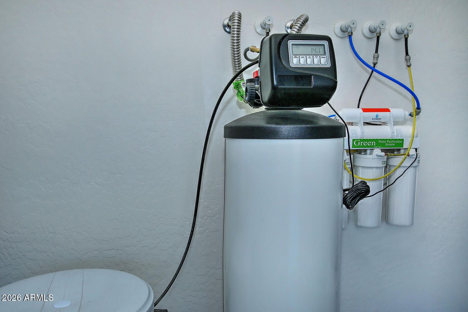 - Stacked Washer/Dryer, Water Softener Owned, Reverse Osmosis, Refrigerator, Built-in Microwave, Dishwasher, Disposal, Gas Cooktop, Built-In Electric Oven, Water Purifier
