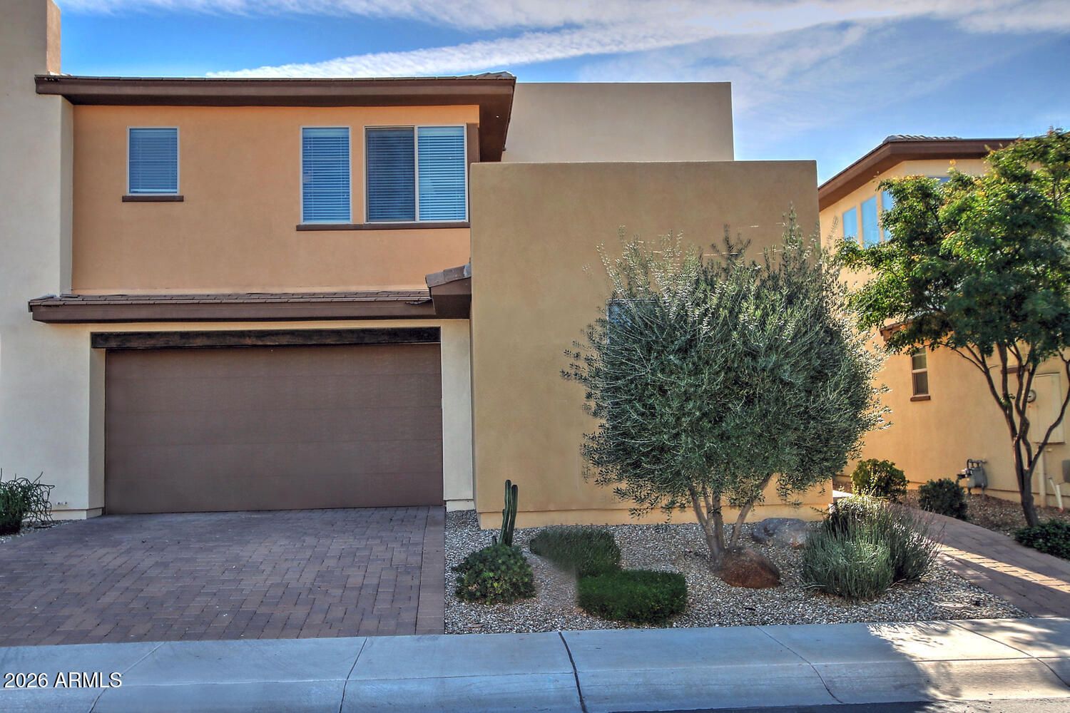 Located within the prestigious Encanterra Community of Queen Creek. This beautifully designed 2 bedroom 2 bathroom home offers easy lock and leave living. The inviting main level features a cozy fireplace and opens into a private serene back patio overlooking a green area. Picturesque mountain views. Spacious second story provides flexibility for a home office, future bedroom and bathroom or a guest retreat. The 2 car attached garage has an epoxy floor. Encanterra offers a resort lifestyle with championship golf, 4 pools, clubhouse dinning, pickle ball courts, bocce ball, and miles of scenic walking paths. Well suited for full time living or seasonal enjoyment.This residence is an exceptional home in one of the east valley's most sought after communities. Welcome Home.
