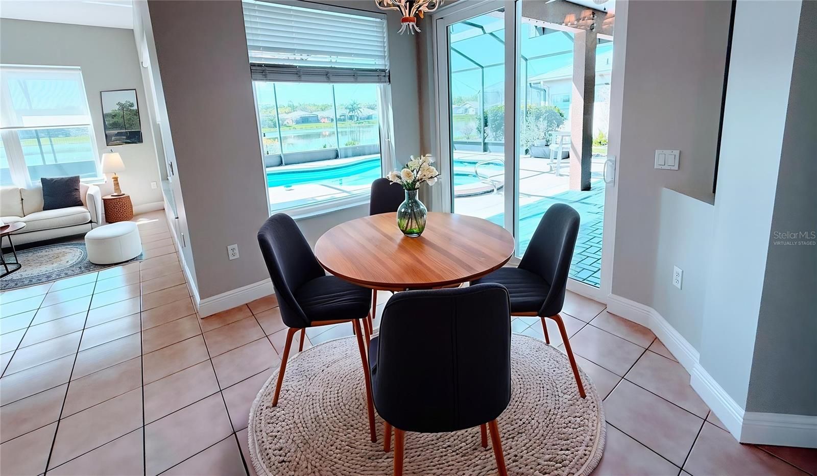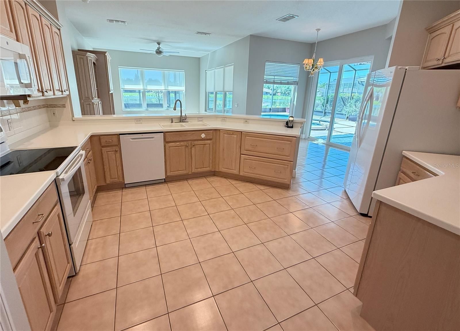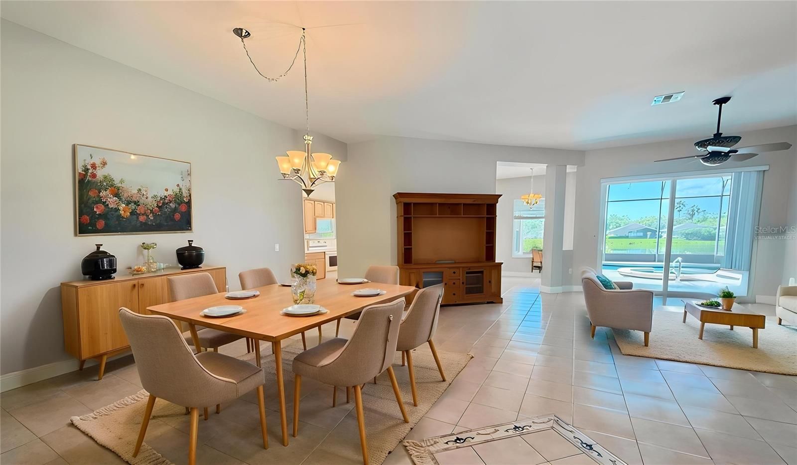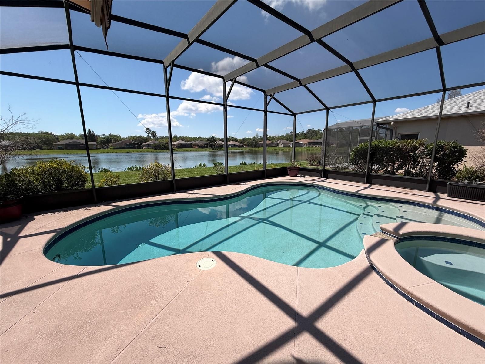 One or more pictures virtually staged. OUTSTANDING OPERETTA Model PRICED TO SELL with a heated POOL & SPA on a POND in the Terra Vista subdivision of Solivita. BEST VIEWS OF WATER in Solivita & CONSERVATION across the street. HVAC new in 2017. Roof new in 2016. NINETEEN vinyl frame, DOUBLE PANE Low E (New South Windows) & THREE SLIDERS new in 2015. CERAMIC TILE FLOORS, 8' DOORs & 5 1/2" BASEBOARDS throughout. Front porch is screened and front door has a LEADED GLASS INSERT. Kitchen features Corian counters, RECESSED lights, PULL-OUT drawers in lower cabinets, 42" UPPER cabinets with CROWN MOLDING, APPLIANCES new in 2020 and PANTRY with PULL-OUT drawers. Primary Bedroom had two WALK-IN closets with custom shelving. Primary Bathroom has GRANITE counters, DUAL SINKS, CUSTOM extra cabinets & a HYDROTHERAPY tub. All THREE bathrooms have comfort height commodes with BIDETS. Second bathroom has a UPDATED WALK-IN shower & a linen closet. Lanai faces SOUTH & has SWEEPING POND VIEWS. POOL is 20' wide X 28' long and ranges from 3' to 5' deep. Pool & Spa are heated with a HEAT PUMP. Lanai has a Sunbrella-type RETRACTABLE shade. There also is a SCREENED DOG AREA w/ astroturf like flooring. Garage floor is painted with epoxy & confetti chips and it has a side access door.***Solivita is an active adult 55+ community located in Kissimmee, Florida. It is approximately 50 minutes from Disney World & the Orlando International Airport. Solivita has a total of 5,470 homes. Approximately 10,000 - 11,000 people live in Solivita during the winter while approximately 7,500 live in Solivita during the summer. Enjoy your active years in this piece of paradise. Solivita's amenities include: - a manicured SOFTBALL diamond & field - 36 holes of CHAMPIONSHIP GOLF that can be played by joining the Stonegate Golf Club or paying as you go - 2 STATE of the Art AMENITY centers with updated exercise equipment, yoga studio & meeting rooms - 3 restaurants - 14 HEATED POOLS - 17 PICKLEBALL courts - 9 TENNIS courts - 4 BOCCE BALL courts - 4 SHUFFLEBOARD courts - 3 HORSESHOE pits - a BILLIARDS room - miles of bike paths - 2 DOG PARKS (Small & Large Dogs) - Corn Hole - Tot Lot PLAYGROUND - COMMUNITY GARDEN - over 250 resident clubs. The HOA: - maintains the LANDSCAPING & IRRIGATION systems in the common areas as well as at individual homesites - maintains the roads throughout the community - PROVIDES SECURITY with gate guards and mobile patrols including the Polk County Sheriff - allows AUTOMATED GATE ACCESS for residents via license plate readers - provides residents with Fiber Optic Internet & TV service.***Poinciana Lakes Plaza is a MAJOR NEW SHOPPING CENTER that opened directly across from the Solivita Main Gate in Summer of 2024. It features Sprouts Grocery, TJ MAXX, Ross, Burlington, Rack Room Shoes, 5 Below, Ulta, Outback, First Watch, 5 Guys, Urgent Care, Dentist, TD Bank, Petco & Hair Cuttery PLUS MORE TO COME.***