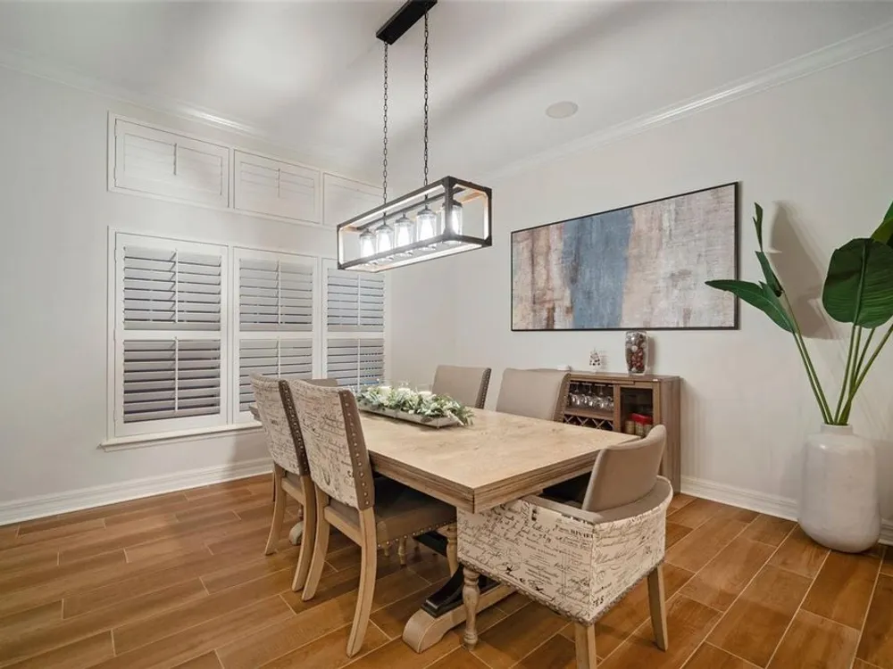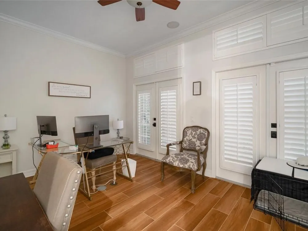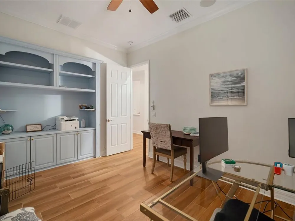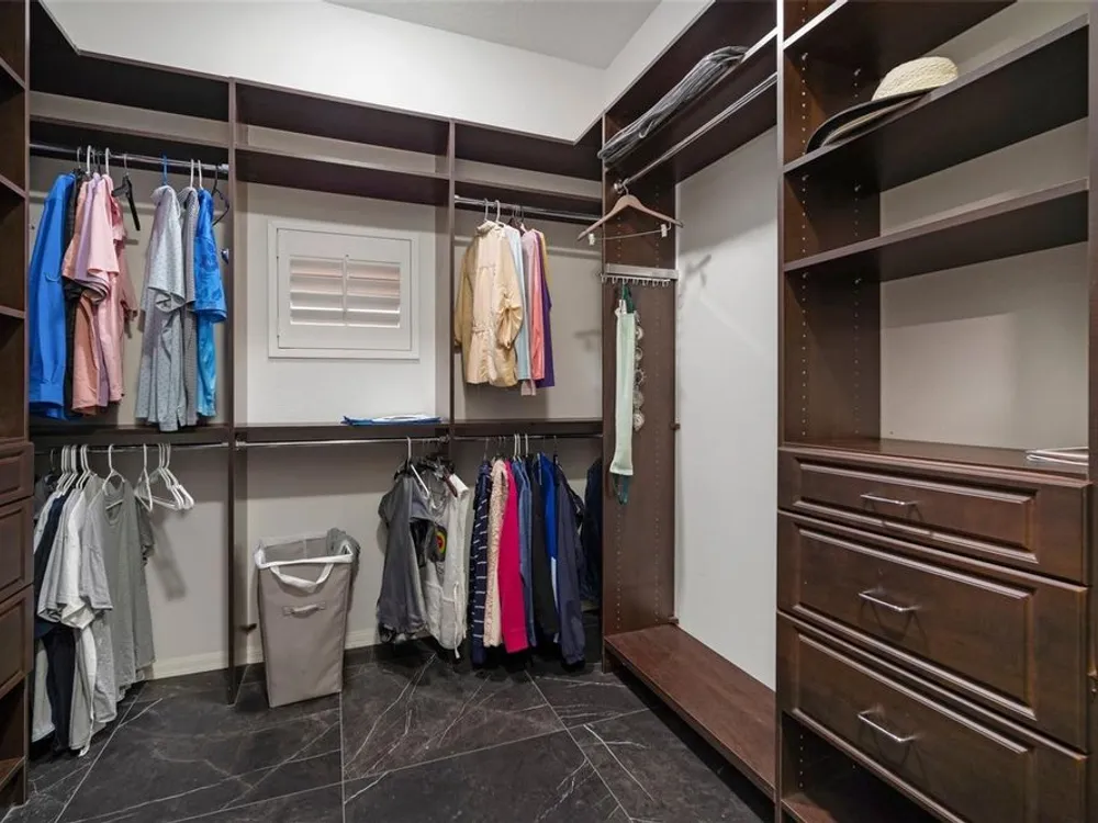 - Built-in Features, Cathedral Ceiling(s), Ceiling Fan(s), Crown Molding, High Ceilings, Open Floorplan, Upper Level Primary, Solid Surface Counters, Solid-Wood Cabinets, Split Bedrooms, Stone Counters, Walk-In Closet(s), Window Treatments