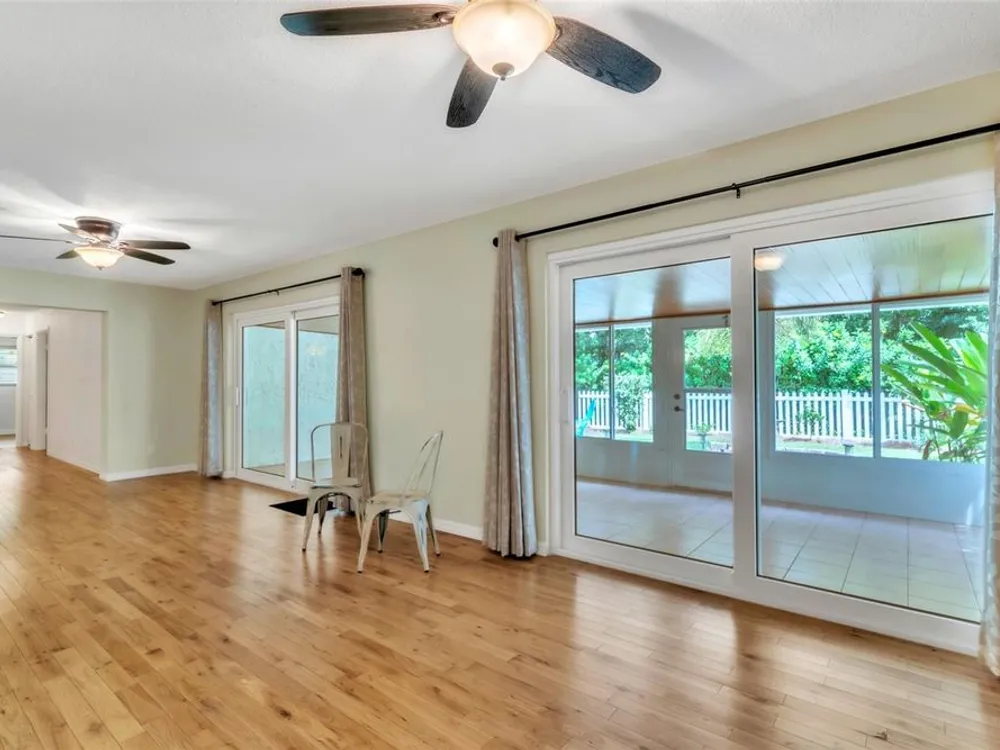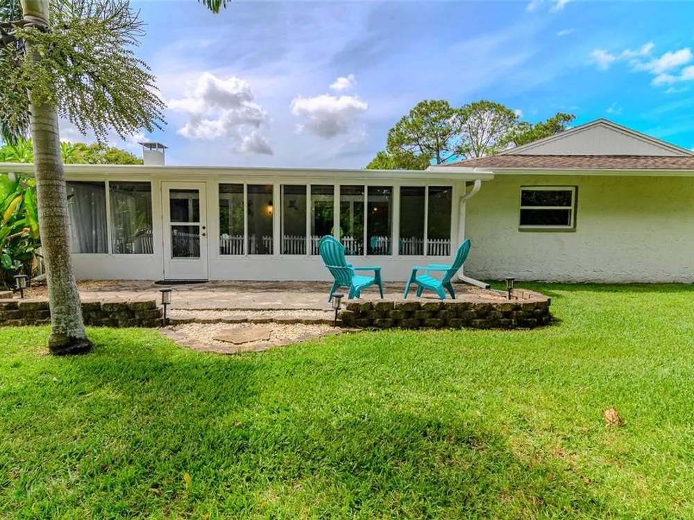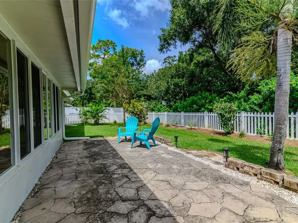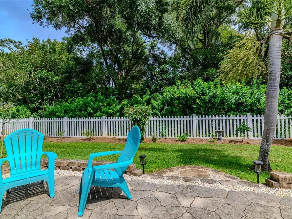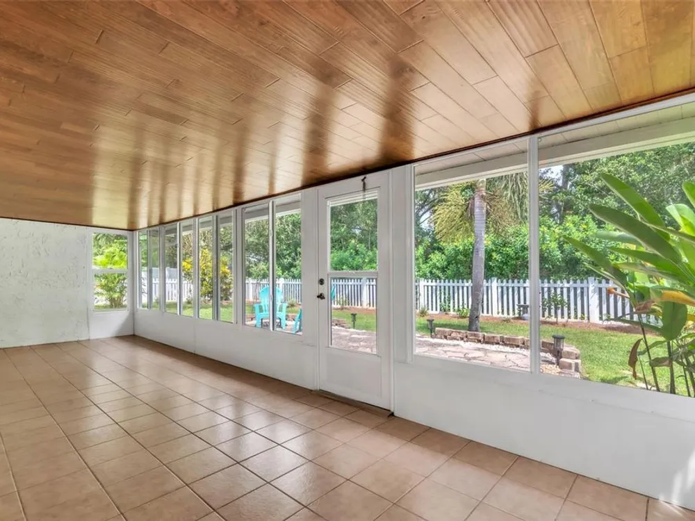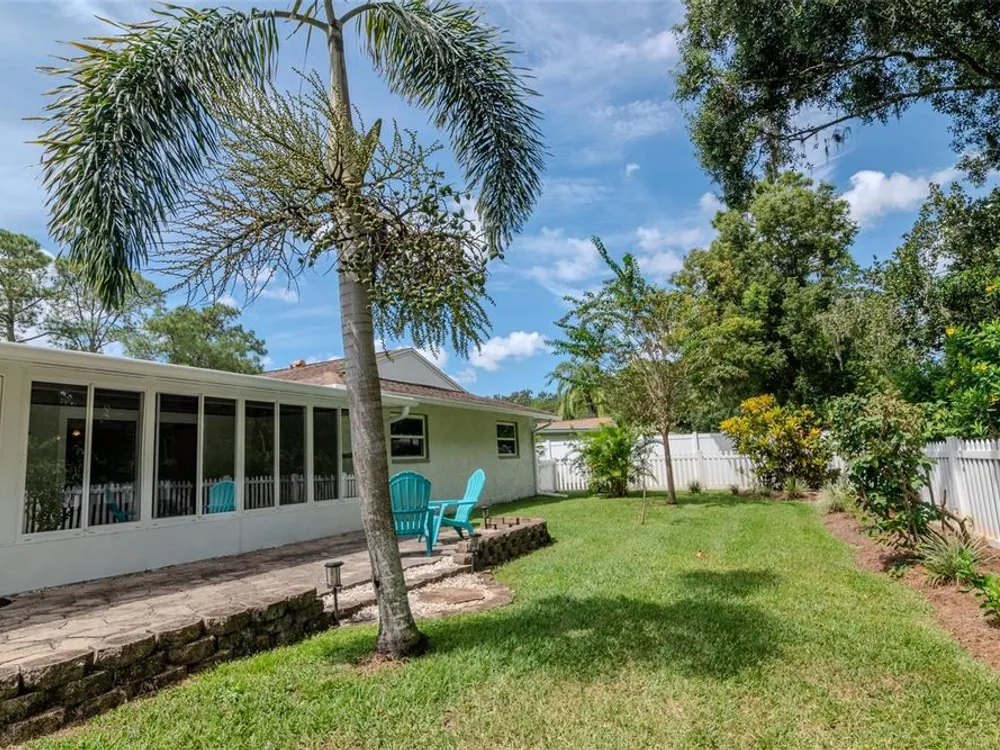 One or more photo(s) has been virtually staged. This beautifully remodeled home has been thoughtfully upgraded from top to bottom starting with New South hurricane-rated windows and doors —just move in and start enjoying your new space. Step through the new front double doors into a bright and spacious living room featuring gleaming engineered hardwood floors and an abundance of natural light. At the heart of the home lies a well-appointed galley kitchen complete with granite countertops, stainless steel dishwasher 2025, stainless steel refrigerator, deep freezer, stainless steel convection oven, cooktop with JennAir, and a layout perfect for entertaining. The flexible split floor plan includes a cozy bonus room at the rear of the home, showcasing an electric fireplace and access to a newly renovated back lanai. With its classic wood ceiling, the lanai overlooks a fenced backyard with a paver patio and a tranquil, private wooded view. The master suite is a true retreat with a walk-in closet and a beautifully remodeled bathroom, including a walk-in shower & new toilet installed in 2024. Two additional bedrooms offer generous space, ideal for guests or a home office. Additional upgrades enhance the home’s value and comfort including a newer tankless hot water heater, updated electric panel, and a whole-house surge protector—plus one dedicated for the A/C unit. The roof and A/C were both replaced in 2015, and the flat roof and lanai roof have also been recently updated. The property also features a newer well pump with updated electrical components and new gutters. Sliding glass doors were replaced in 2018, and the entire interior received fresh paint and retexturing in 2023. With a really low HOA ($42/mo.) this home is ideally located near a wide range of shopping and dining options, the home also enjoys proximity to the scenic John Chestnut Sr. Park on Lake Tarpon—with convenient access right from the 55+ community.