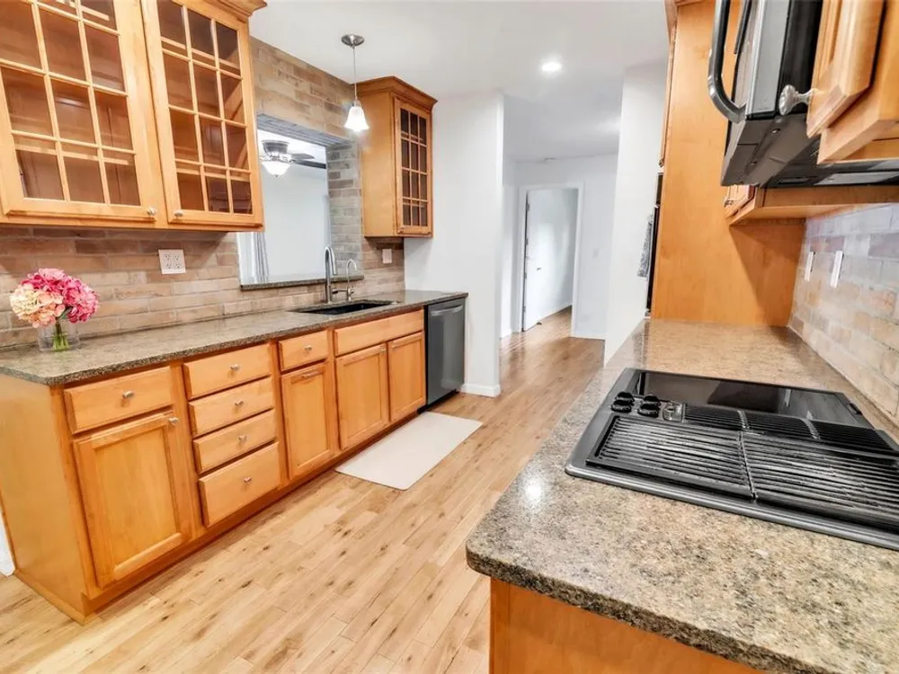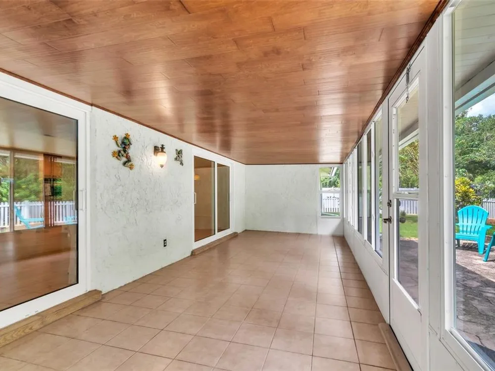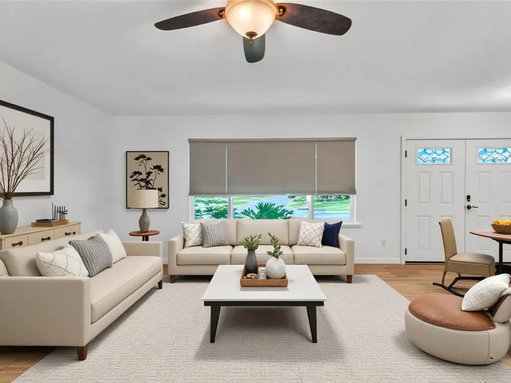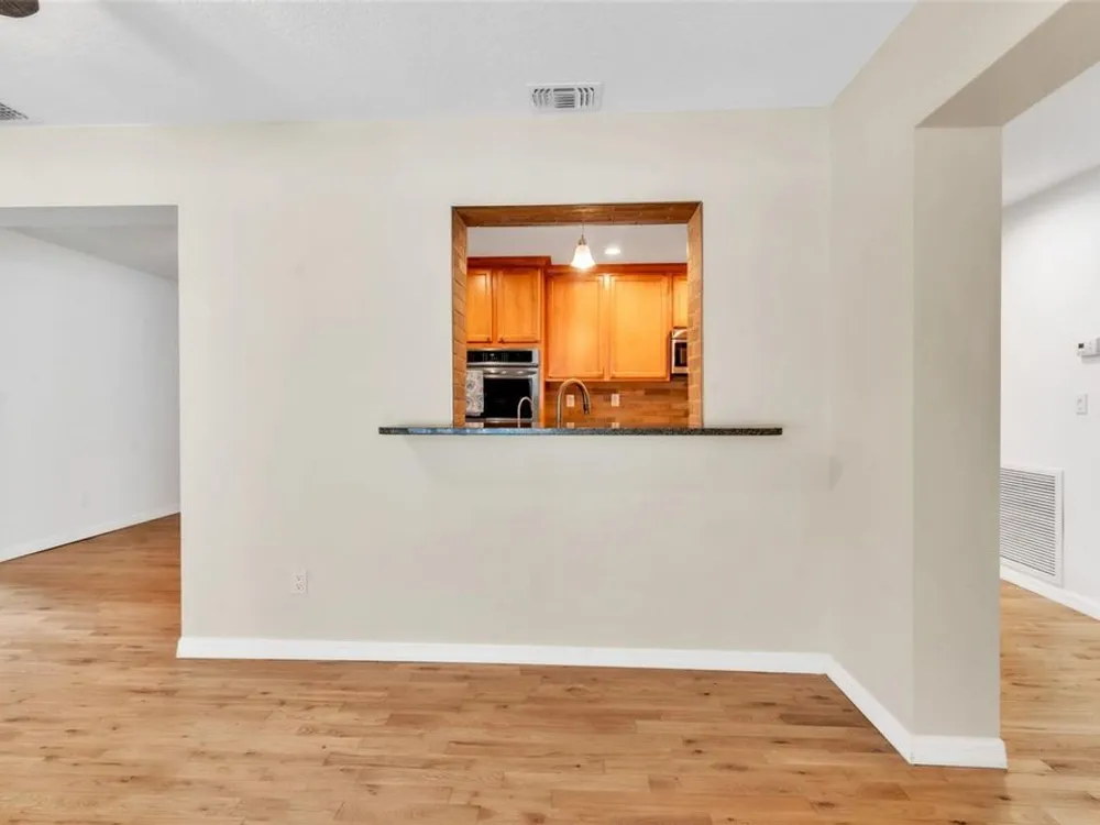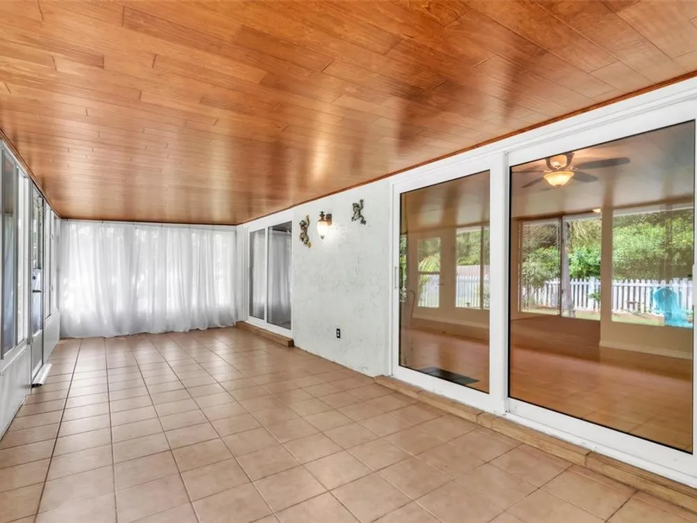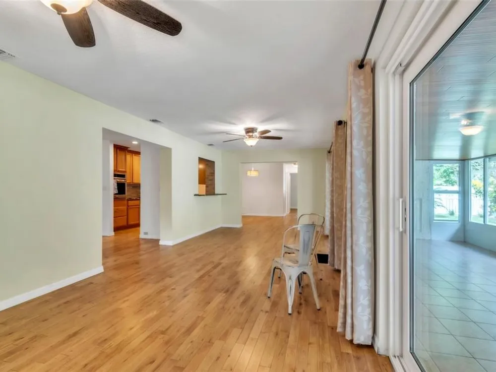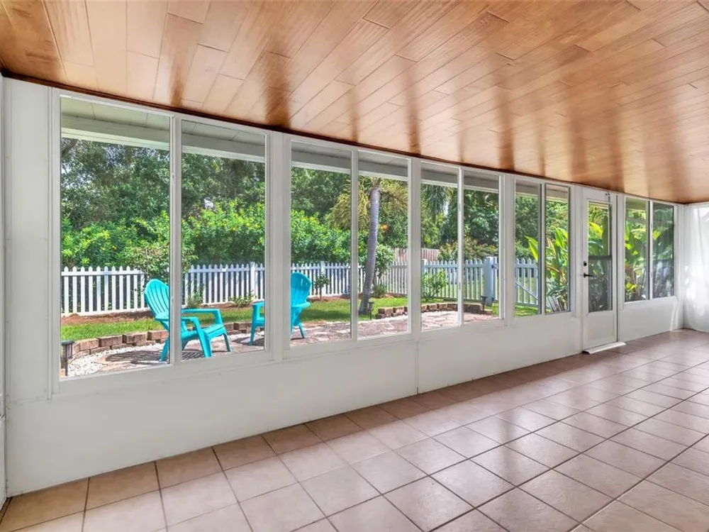 One or more photo(s) has been virtually staged. This beautifully remodeled home has been thoughtfully upgraded from top to bottom starting with New South hurricane-rated windows and doors —just move in and start enjoying your new space. Step through the new front double doors into a bright and spacious living room featuring gleaming engineered hardwood floors and an abundance of natural light. At the heart of the home lies a well-appointed galley kitchen complete with granite countertops, stainless steel dishwasher 2025, stainless steel refrigerator, deep freezer, stainless steel convection oven, cooktop with JennAir, and a layout perfect for entertaining. The flexible split floor plan includes a cozy bonus room at the rear of the home, showcasing an electric fireplace and access to a newly renovated back lanai. With its classic wood ceiling, the lanai overlooks a fenced backyard with a paver patio and a tranquil, private wooded view. The master suite is a true retreat with a walk-in closet and a beautifully remodeled bathroom, including a walk-in shower & new toilet installed in 2024. Two additional bedrooms offer generous space, ideal for guests or a home office. Additional upgrades enhance the home’s value and comfort including a newer tankless hot water heater, updated electric panel, and a whole-house surge protector—plus one dedicated for the A/C unit. The roof and A/C were both replaced in 2015, and the flat roof and lanai roof have also been recently updated. The property also features a newer well pump with updated electrical components and new gutters. Sliding glass doors were replaced in 2018, and the entire interior received fresh paint and retexturing in 2023. With a really low HOA ($42/mo.) this home is ideally located near a wide range of shopping and dining options, the home also enjoys proximity to the scenic John Chestnut Sr. Park on Lake Tarpon—with convenient access right from the 55+ community.