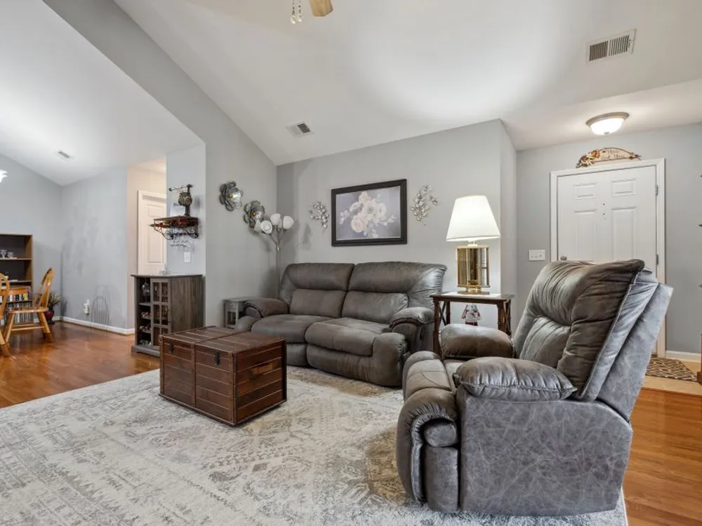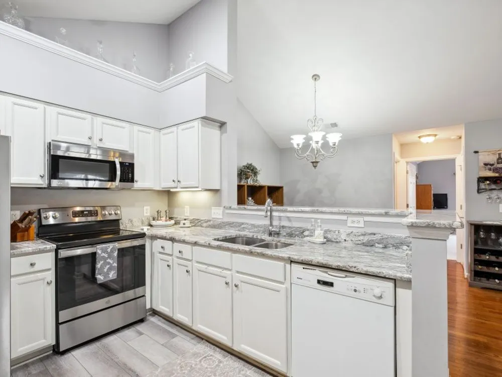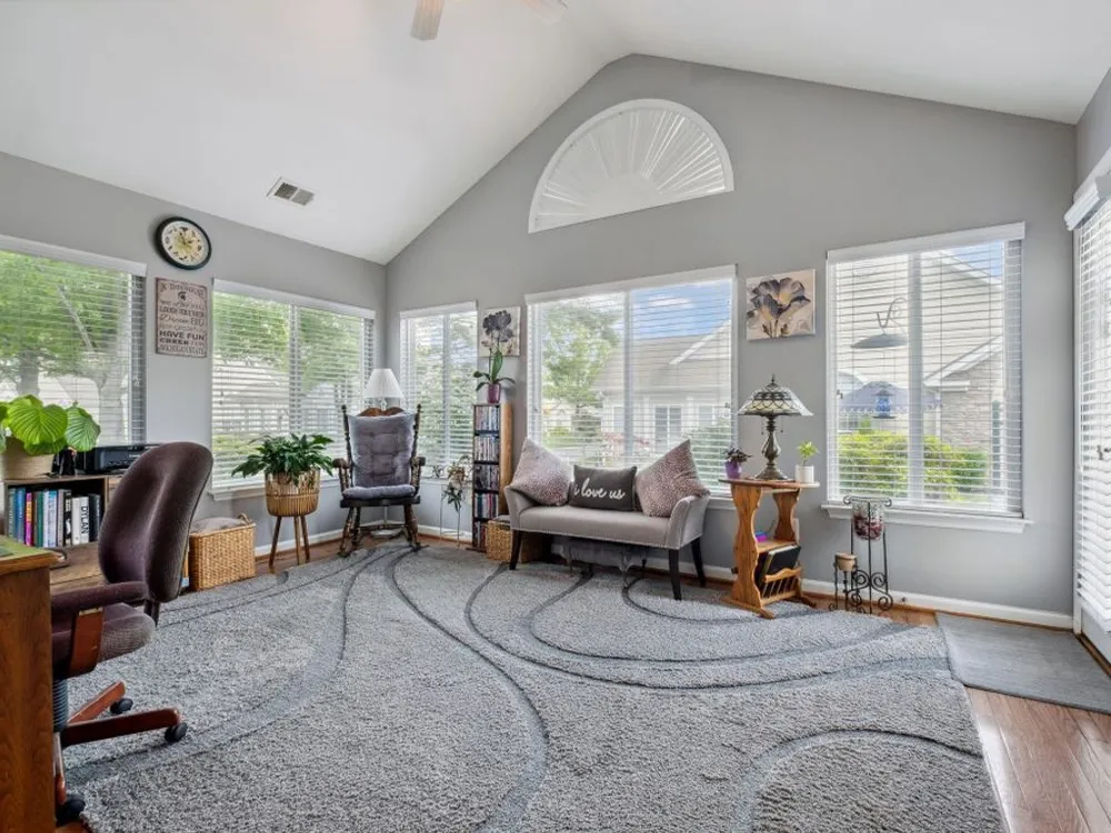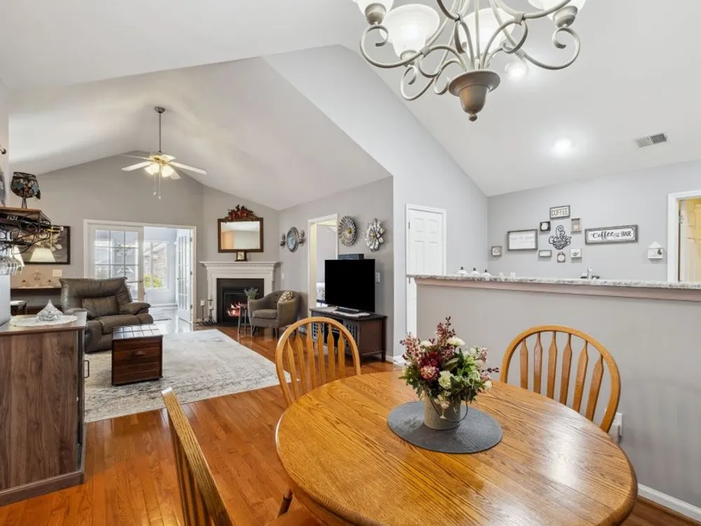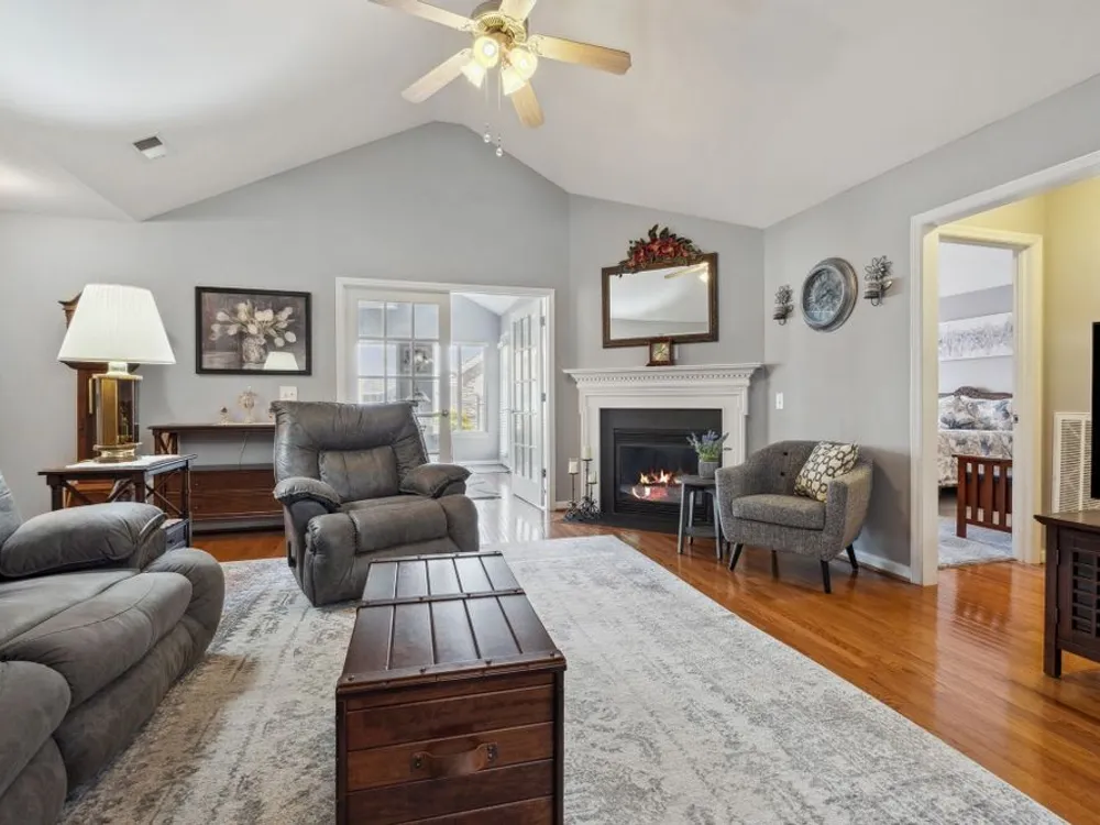 ONE-LEVEL LIVING AT THE COTTAGES! Enjoy low-maintenance living in this beautifully updated home featuring an open floor plan with vaulted ceilings, fresh paint throughout, and stunning hardwood floors. The kitchen boasts brand-new granite countertops, and the spacious layout includes two primary suites with walk-in closets, a cozy gas fireplace, and a versatile bonus room/sunroom with large windows and a closet—perfect as a third bedroom, office, or hobby space. Outdoor patio is perfect for entertaining and 2 Car Garage has a huge closet for additional storage! All Kitchen Appliances plus Washer and Dryer Remain! HVAC only Two Years Old, Water Heater 3 Years Old. Located in a highly desirable community, The Cottages offers easy living with HOA covering water, sewer, trash, lawn care, all exterior maintenance, exterior insurance, access to the pool, clubhouse, and fitness center. Move-in ready and full of charm—don’t miss this one!