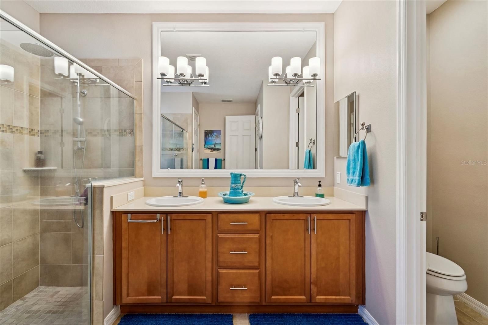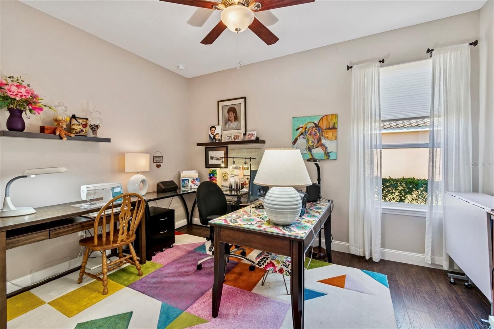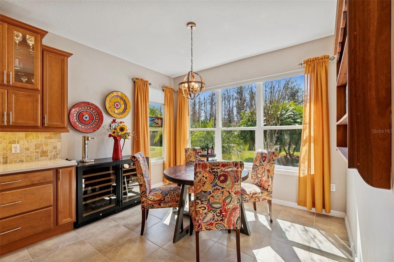 One or more photo(s) has been virtually staged. Stunning 4-bedroom, 3-bath Sorano model set on a private, LUSH conservation lot in Portofino Estates, complete with a designated GOLF CART GARAGE. This exceptional home features an OPEN FLOOR PLAN designed for both comfort and entertaining, including a cozy FOUR-SEASON SUNROOM with CERAMIC TILE floors, a separate covered and screened area WITH A HOT TUB, and a large SCREENED, EXTENDED lanai—perfect for enjoying Florida living year-round. Step through the elegant LEADED GLASS front door into an open foyer that opens to a spacious living room featuring soaring 12-foot ceilings, CERAMIC TILE flooring, and TWO SOLAR TUBES that flood the space with natural light. The living room opens directly to the gourmet kitchen, which boasts 42-inch cabinetry, QUARTZ countertops, STONE BACKSPLASH, a breakfast island, a large pantry, and stainless steel appliances—including TWO wine refrigerators. The adjacent SUN-FILLED dinette offers peaceful conservation views and is ideal for casual meals or afternoon card games. The glass-enclosed sunroom is a true showstopper, featuring a comfortable seating area and a designated bar space—perfect for entertaining and gatherings. This space is CLIMATE-CONTROLLED with its own MINI-SPLIT system, while a decorative LIGHTED BEAM and upgraded lighting add warmth and ambiance, making it truly the perfect space!! The spacious PRIMARY SUITE features a TRAY ceiling that adds both charm and elegance. The attached ENSUITE BATH offers a large TILED WALK-IN shower with BENCH seating, raised vanities with DUAL SINKS, a linen closet, and a private commode. The generous WAK-IN CLOSET includes custom built-ins and provides convenient ACCESS to the laundry room through a separate door. The laundry room is well-appointed with a UTILITY SINK, storage cabinetry, and a WASHER and DRYER that are included in the sale. An office/den with DOUBLE-DOOR entry is located at the front of the home and overlooks the front yard, where you can enjoy the soothing sound of a trickling fountain just outside the window. This versatile space may also be used as an additional bedroom or craft room. The three additional bedrooms feature durable VINYL PLANK FLOORING and are located near full baths, offering comfort and privacy for family members or guests. Additional upgrades include a WHOLE HOUSE WATER SOFTENER, HVAC replaced in 2023, 8 foot doors, ROUNDED CORNERS, screened-in front porch, and the EXTERIOR was painted in 2022. Schedule your private viewing of this fantastic home in an award-winning 55+ community featuring resort-style pools, a fitness center, pickleball and tennis courts, over 200 clubs and so much more! The HOA: - maintains the LANDSCAPING & IRRIGATION systems in the common areas as well as at individual homesites - maintains the roads throughout the community - PROVIDES SECURITY with gate guards and mobile patrols including the Polk County Sheriff - allows AUTOMATED GATE ACCESS for residents via license plate readers - provides residents with Fiber Optic Internet & TV service.***Poinciana Lakes Plaza is a MAJOR NEW SHOPPING CENTER directly across from the Solivita Main Gate. It features Sprouts Grocery, TJ MAXX, Ross, Burlington, Rack Room Shoes, 5 Below, Ulta, Outback, First Watch, 5 Guys, Panda Express, Bojangles, Jersey Mike's Subs, 5 Guys, Papa John's Pizza, Burrito Bar, Cold Stone Creamery, Urgent Care, Dentist, Hand & Stone Massage, America's Best Eyeglasses, Crunch Fitness, Hair Cuttery, Petco, TD Bank, PLUS MORE TO COME.***