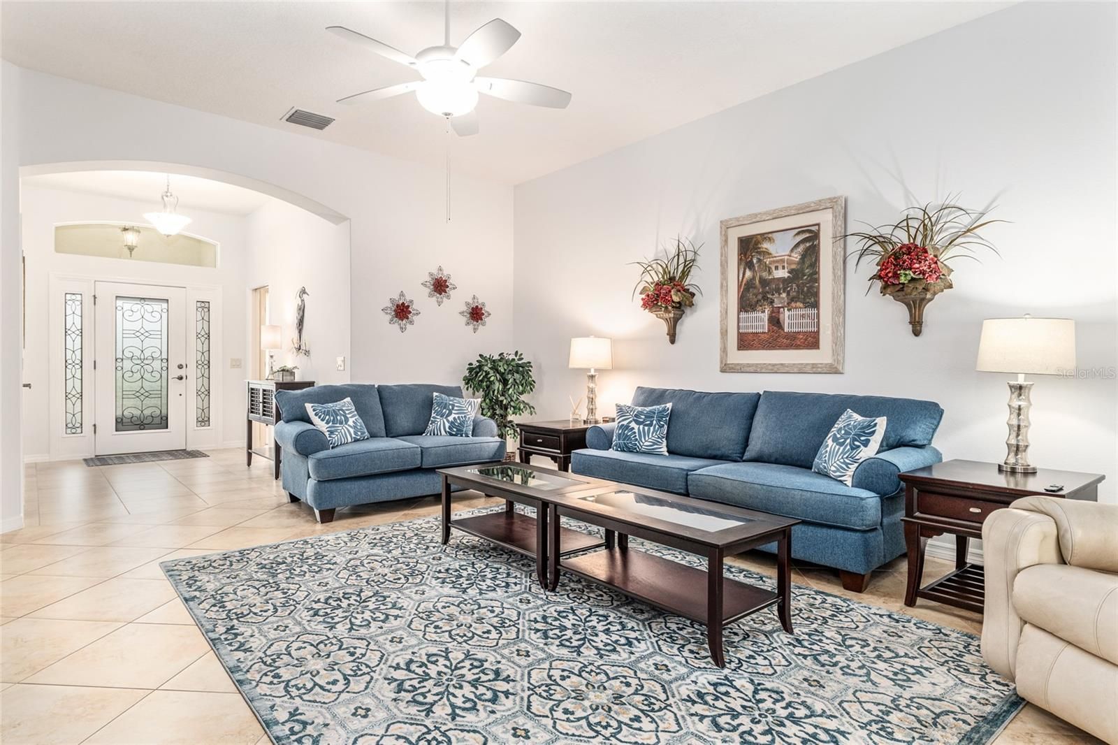 WELCOME TO THIS BEAUTIFUL DESIGNER HOLLY MODEL HOME IN THE VILLAGE OF CHARLOTTE! This well-maintained home offers a spacious and functional layout with numerous UPGRADES throughout. The kitchen is appointed with TILE FLOORS, GRANITE COUNTERTOPS, STAINLESS STEEL APPLIANCES, LOTS OF CABINETS, POT DRAWERS, a DESK AREA, and a NEW REFRIGERATOR with additional WATER FILTRATION under the sink. Enjoy the OPEN LIVING AREA with ROUNDED CORNERS, a 9FT SLIDER to the SCREENED LANAI, and TRANSOM WINDOWS for added natural light. The PRIVATE BACKYARD features a PAINTED FLOOR and a tranquil setting—perfect for relaxing or entertaining. The LARGE PRIMARY SUITE offers DUAL SINKS, DOUBLE CLOSETS, SEPARATE WATER CLOSET, ROMAN TILED SHOWER, and a LINEN CLOSET. Your guest will love the privacy with a POCKET DOOR that creates a private suite with 2 additional bedrooms, including one with a WALK-IN CLOSET. The INDSIDE LAUNDRY has a built-in sink and cabinets. The 2-car garage has an EPOXY FLOOR, PULL-DOWN STAIRS to the attic space for additional storage Additional highlights include: WHOLE HOUSE WATER FILTRATION SYSTEM, 2024 QUIET BELT DRIVEN GARAGE DOOR OPENER, INSULATED GARAGE DOOR, PAINTED DRIVEWAY, EXTERIOR OF THE HOME PAINTED (OCT 2024). Most of the furniture is negotiable. This Gem is nestled in a QUIET NEIGHBORHOOD, SHORT DISTANCE TO THE POOL, and offers both comfort and convenience. The Village of Charlotte is centrally located near Brownwood Paddock Square, Colony Plaza, golf courses, recreation centers, shopping, dining, and nightly entertainment. THIS HOME IS MOVE-IN READY AND A MUST SEE – CALL TODAY TO SCHEDULE YOUR PRIVATE SHOWING! BOND BALANCE $13,684