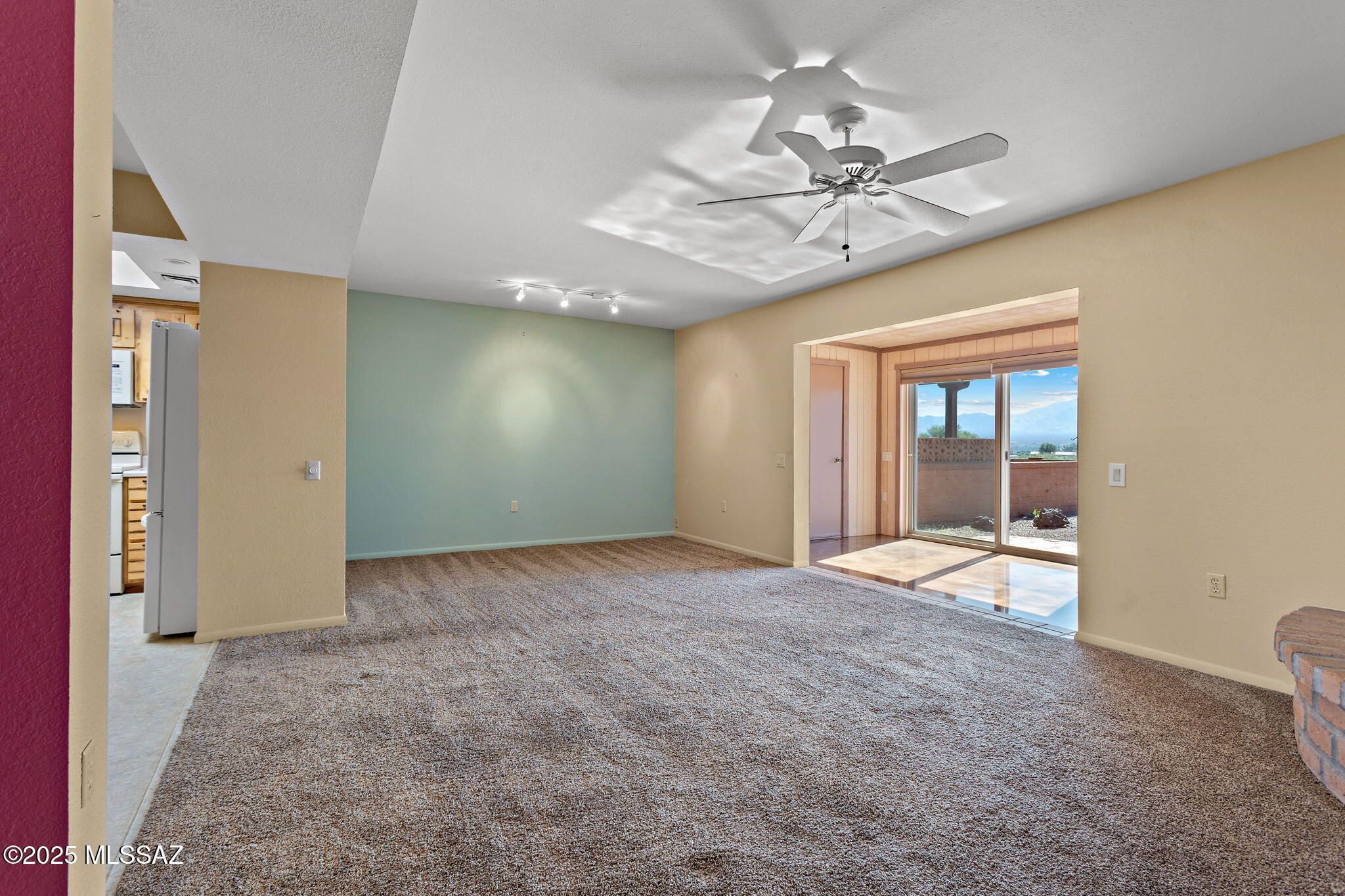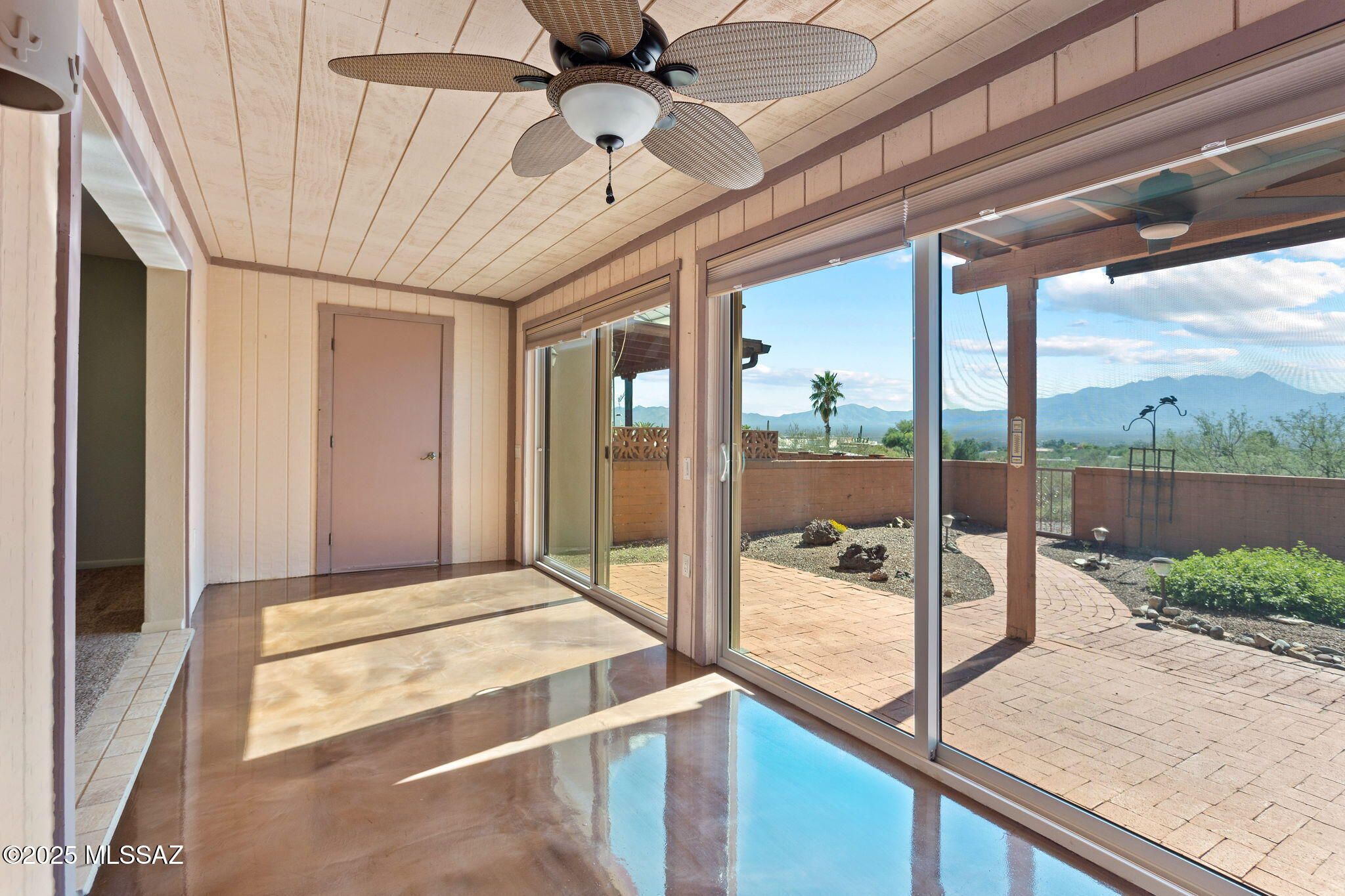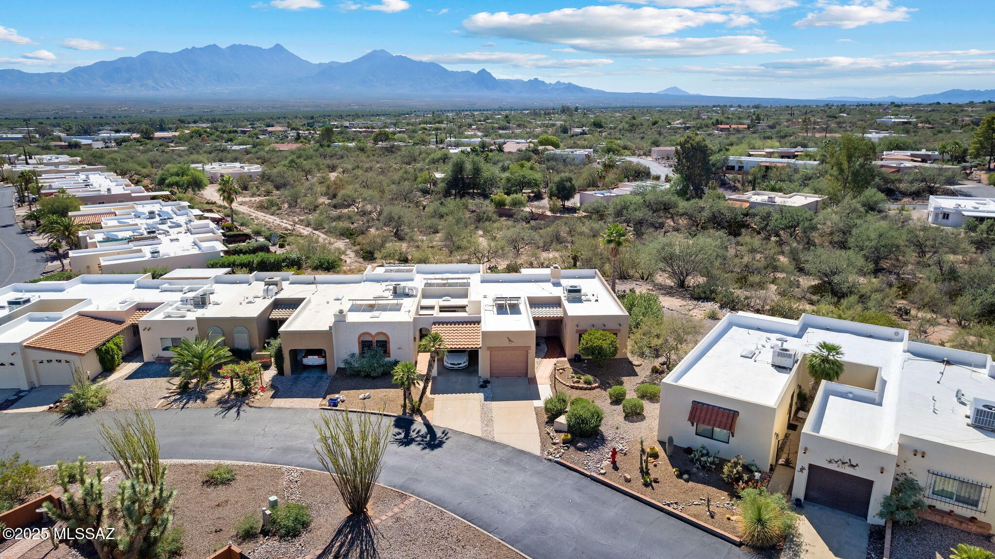 Lovingly maintained, charming 2 bedroom 2 bath townhome in Continental Vistas with a spectacular panoramic views of the Santa Ritas and Mt Wrightson. Enjoy the sunrise, the glow of sunset, or just the daily calming presence of the eastern mountains from the backyard. Property is elevated above the arroyo creating clear and unobstructed views. Original patio enclosed as a sunroom to enjoy the light and view during the cooler months or during the heat of the summer. Beehive fireplace in living room, light filled kitchen and bathrooms, spacious laundry and utility room located between the 1 car garage and kitchen. Solar water heater. GVR community pool walkable from property.