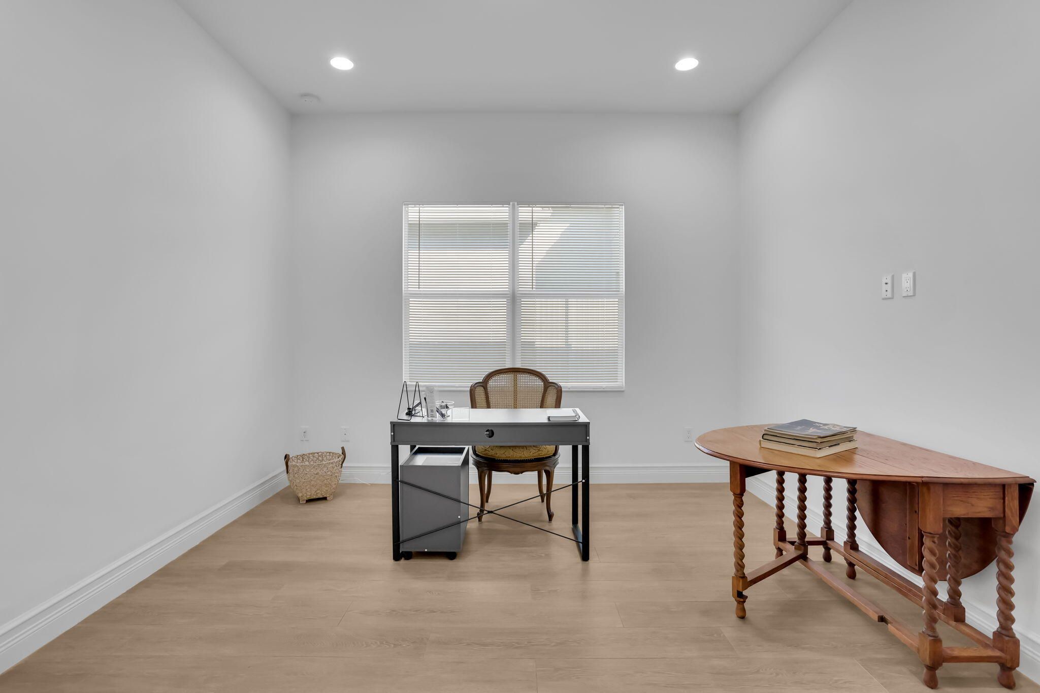 Bimini model with over $110K in Upgrades! Builder's Premium Lakeview lot! Features include Impact windows, Glass entry door, abundance of hi-hat lighting, Plank Wood-look Tile flooring throughout, Designer light fixtures & window treatments. Modern kitchen features 42'' custom acrylic white cabinetry, Quartz counters with full backsplash, Stainless appliances, Center Island and custom seating nook. The kitchen is open to the dining room & large great room. Primary suite boasts a coffered ceiling, custom outfitted walk-in closets, upgraded Quartz bath offering mirrors to ceiling, custom linen cabinet and make-up vanity. In addition to the pavered driveway & entry walkway, the pavered patio, the Bimini features a 2CG, 3 full Bedrooms plus Den/Office & 3 Bathrooms. Monthly maintenance