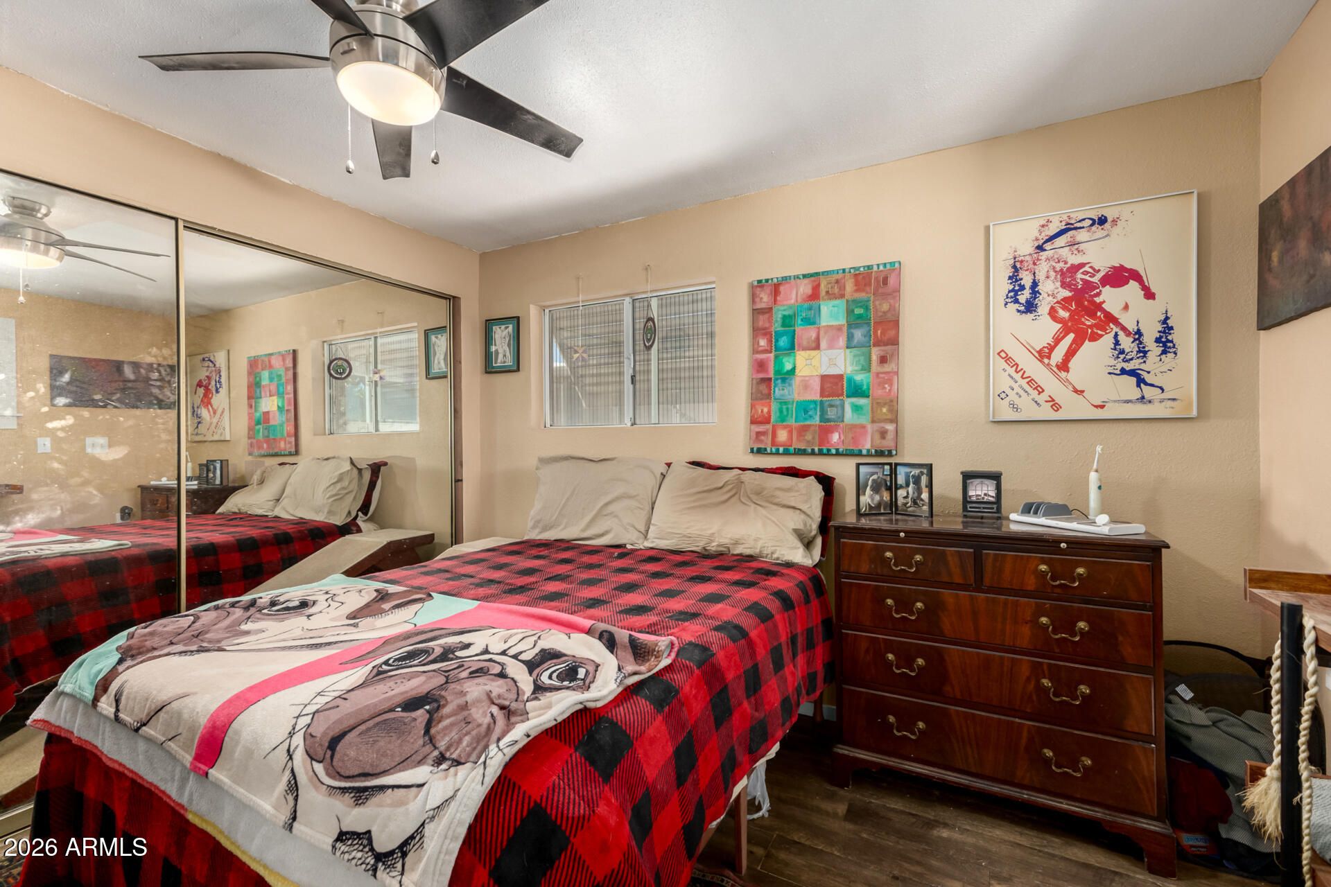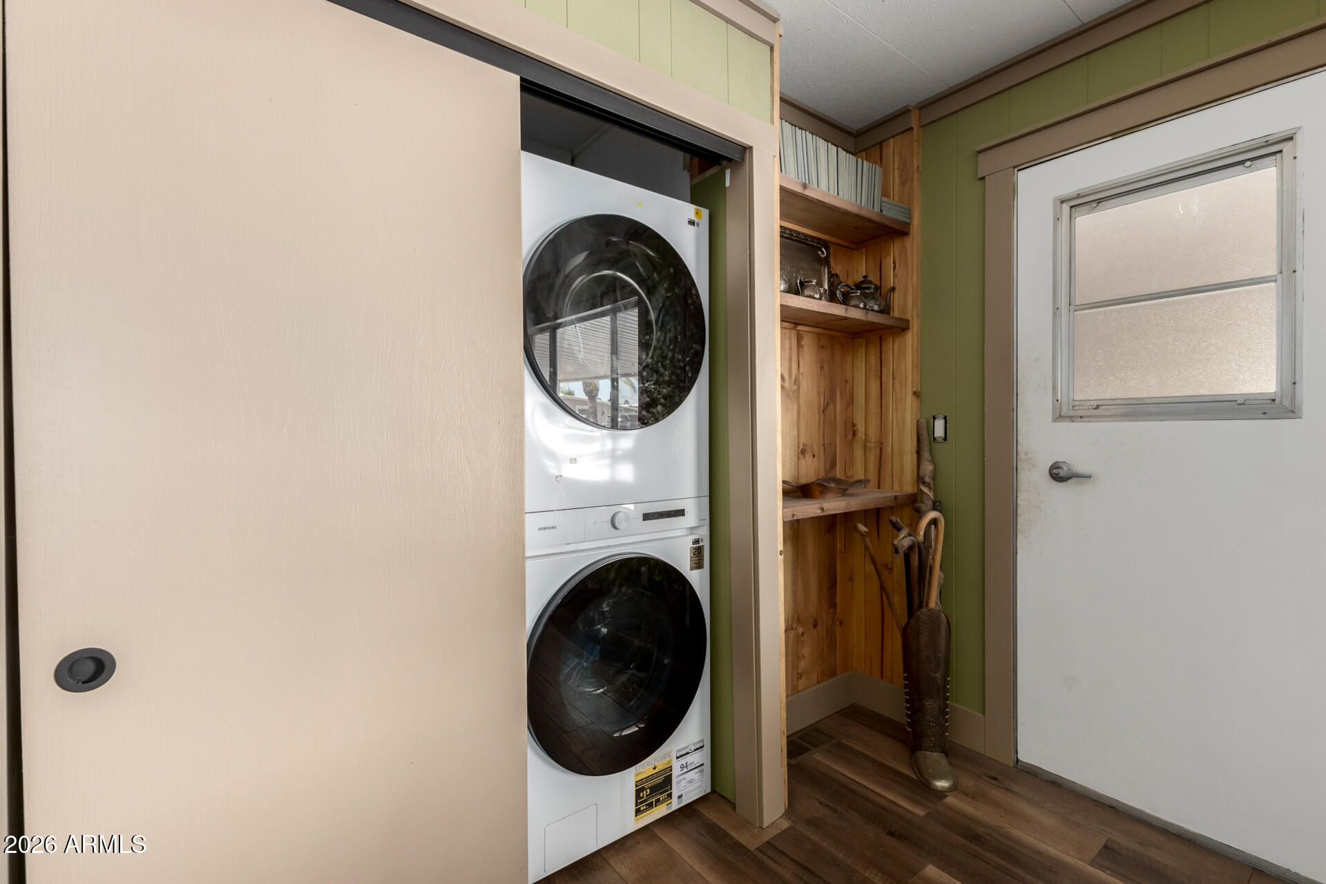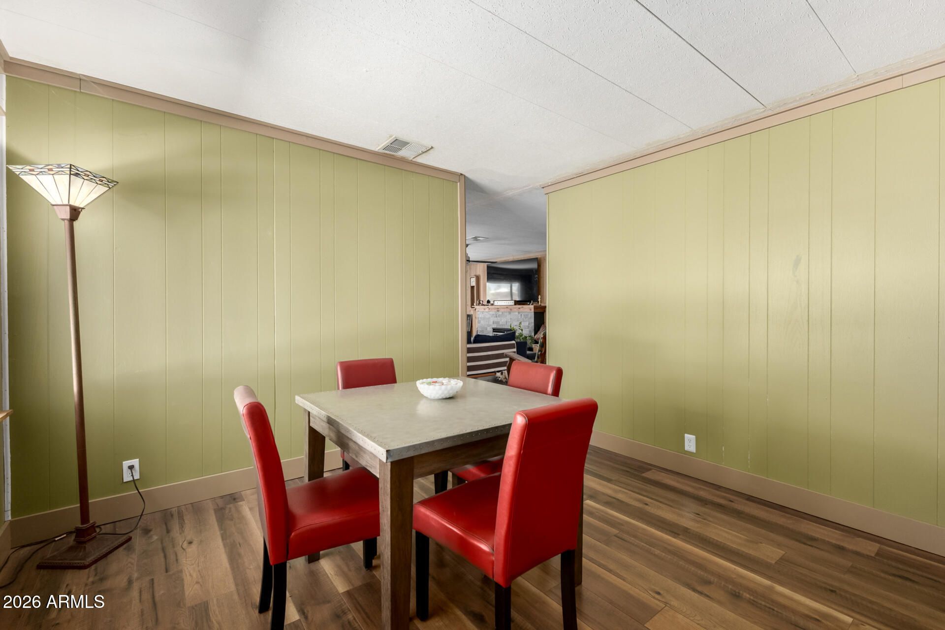 Located in the gated community of Fountain of the Sun, offering resort-style amenities including pools, spas, a community center, restaurant, and golf course. This move-in ready 2-bedroom, 2-bath home features dual-pane windows and water-resistant engineered luxury plank throughout. The updated kitchen showcases shaker-style cabinetry, granite countertops, stainless steel appliances, and a deep sink with a pull-down faucet The dining area includes a large built-in china cabinet with a wine refrigerator and abundant storage. Throughout the home, you'll find upgraded light fixtures and modern ceiling fans. The spacious primary bedroom offers a large mirrored closet and remote-controlled ceiling fans. 2nd bedroom is a private retreat with its own living space, kitchenette, and full bath featuring a thermo shower. A versatile flex room with a separate exterior entrance provides endless possibilities--ideal for a home office, guest formal dining room or hobby space. Additional highlights include a workshop with 220-volt power next to the covered carport, plus a low-maintenance desert landscaped backyard with a covered patio and block fencing. This home offers exceptional space, storage, and flexibility--truly a must-see!