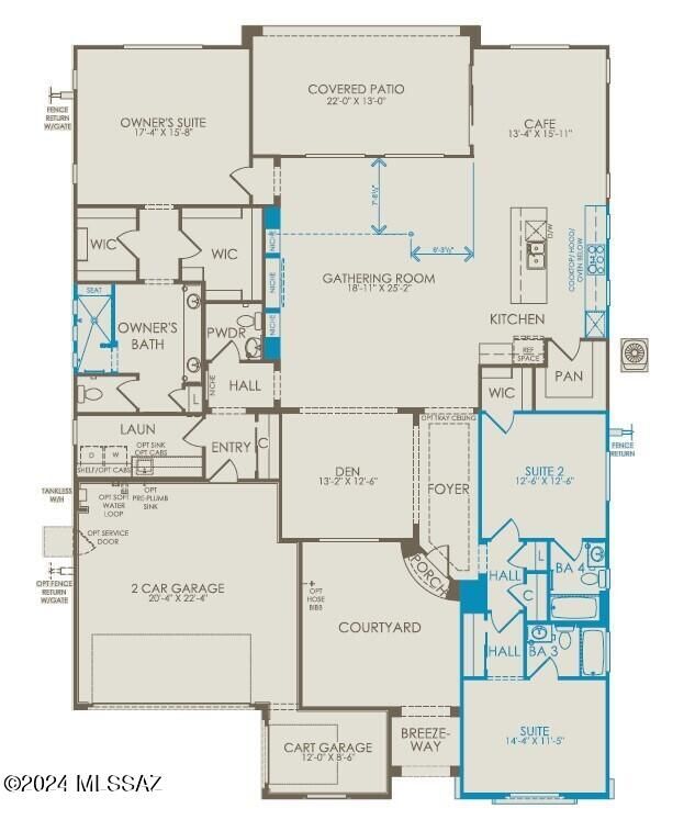 Set for completion in Spring 2025, this elegant Voyage floor plan offers 3 bedrooms plus a den, 3.5 baths, and a 2-car garage with an additional cart garage. With 10' ceilings, a walk-in pantry, and a tankless water heater, the home is designed for both comfort and style. Enjoy gas connections in the kitchen, laundry, and backyard, along with a beautifully framed walk-in shower in the owner's suite. The kitchen boasts upgraded Coconut cabinetry, a gourmet culinary layout with stainless steel appliances, and pre-wiring for ceiling fans and pendant lighting. Thoughtfully selected design finishes complete this impressive home. Clubhouse and Rec Center expected by 2025.