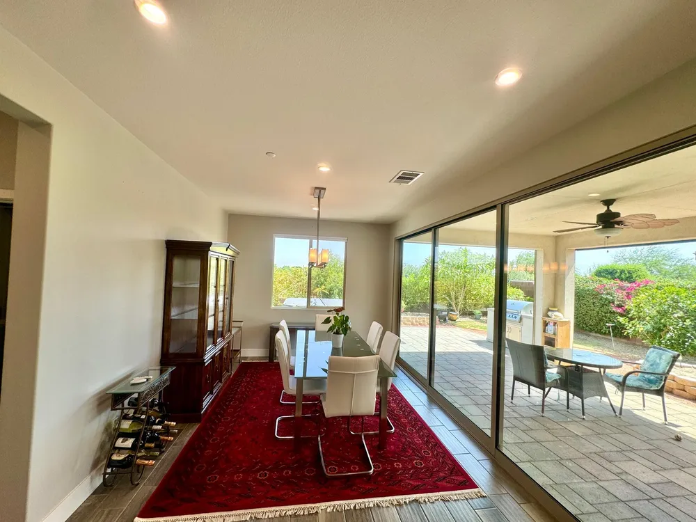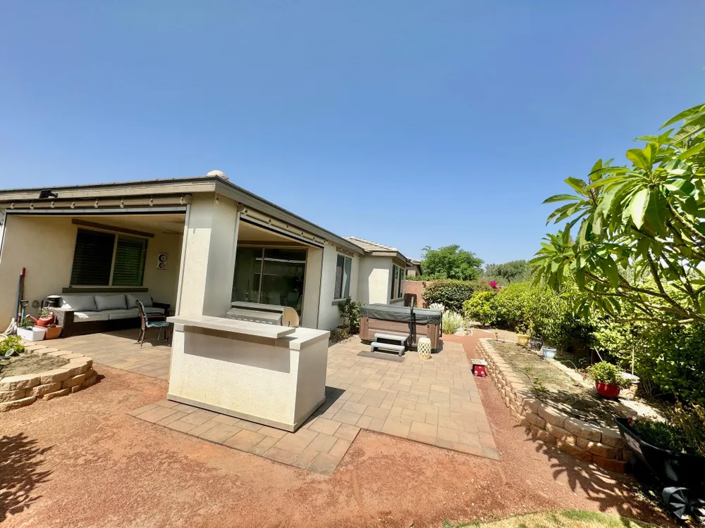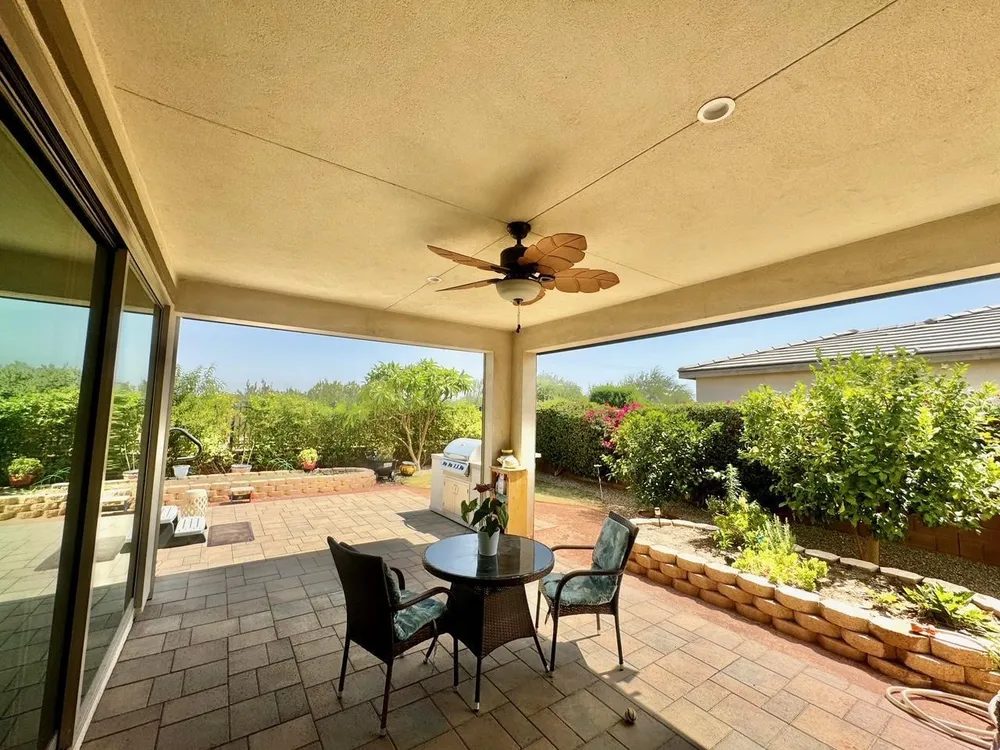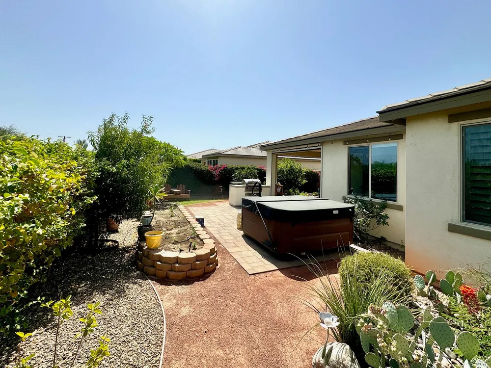 Welcome to the 55+ Community at Trilogy Polo Club! Prepare to be impressed by this beautifully designed home featuring the popular 1,928 sq. ft. Reunion floor plan. Blending elegance, practicality, and flexibility, this layout makes exceptional use of every inch. Boasting 3 bedrooms and 2 bathrooms—with the third bedroom currently configured as a generous den—this home provides space and comfort for modern living. The gourmet kitchen is a chef's dream, complete with a large island that opens to the expansive great room, creating the ideal space for both entertaining and relaxation. The primary suite offers a serene retreat, with a spa like bathroom featuring dual sinks, a seamless glass shower with custom tile and bench seating, the spacious custom walk-in closet with a built-in organizer does not disappoint! A second bedroom is thoughtfully placed on the opposite side of the home to enhance privacy. Walls of glass seamlessly extend the living space to a backyard oasis, where your relaxing private spa tub awaits. Enjoy the shade under a covered patio outfitted with remote-controlled sun shades—ideal for both entertaining guests and quiet moments of relaxation. This outdoor space is thoughtfully designed with ambient lighting, a cooling ceiling fan, a built-in BBQ, and raised garden beds. Lush tropical landscaping and fruit trees complete the serene, resort-style atmosphere.. Additional highlights include a tankless water heater, roll-out kitchen shelves, ceiling fans, plantation shutters throughout, mini-split A/C in the garage, and built-in garage cabinetry. Best of all, the buyer benefits from full membership at a low transfer fee of $1,875 instead of the full buy-in cost.