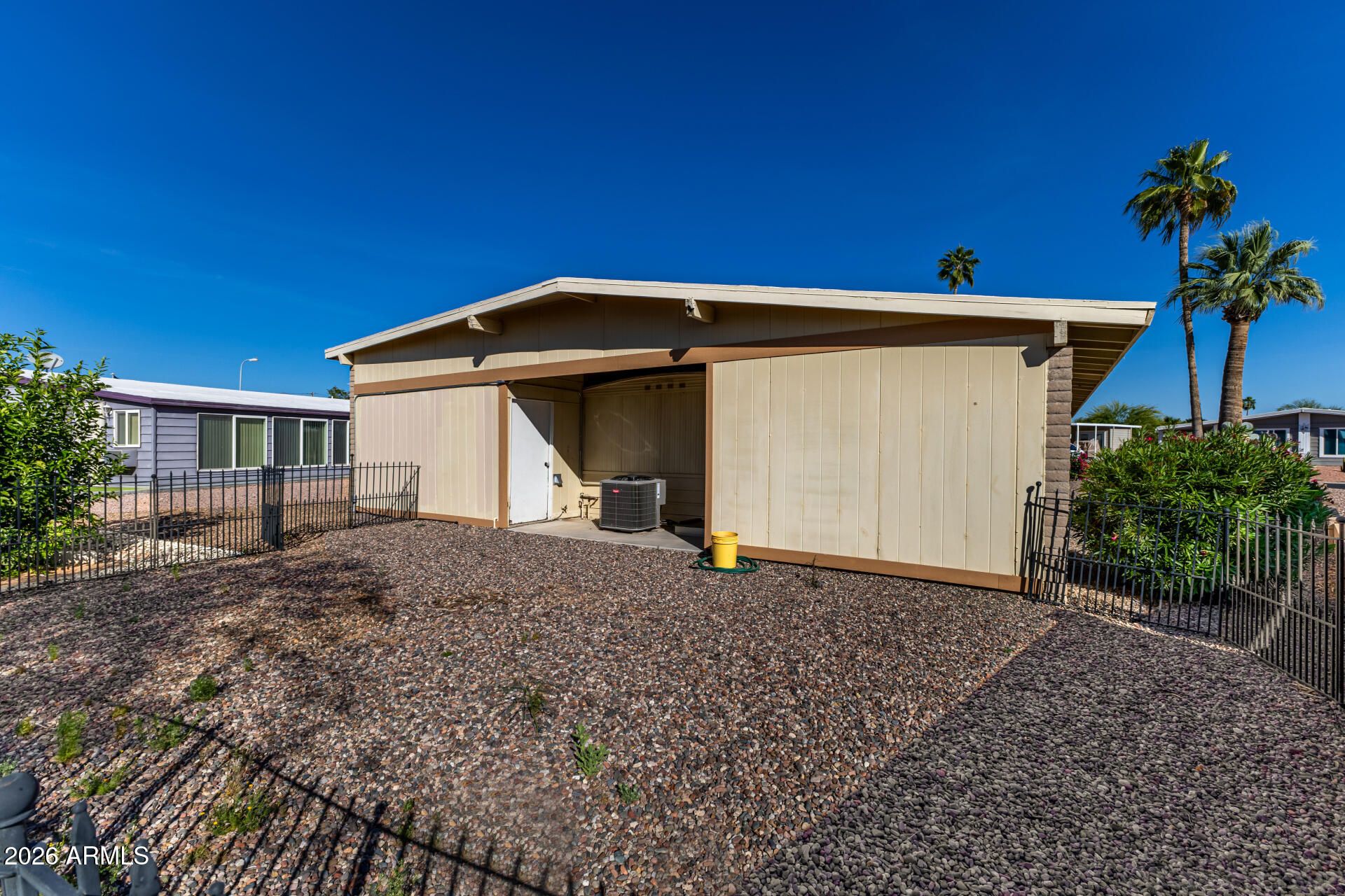 Charming home with great spaces and open layout! Large garage, carport and covered patio. One bedroom, one bathroom, AND a great bonus room that could be used as a second bedroom, den or smart storage as needed. 1346 SF of living space. Updated water heater (2022), cook top and fixtures. Kitchen with double ovens! New A/C and heating units with digital thermostat (2024). Updated electrical panel. Low maintenance desert landscaping. Own in Fountain of the Sun for UNDER $200K and enjoy a gated, guarded community with amenities that include pool, spa, golf, dining, pickleball, bocce ball, dog park, workout facility and tons of activities.