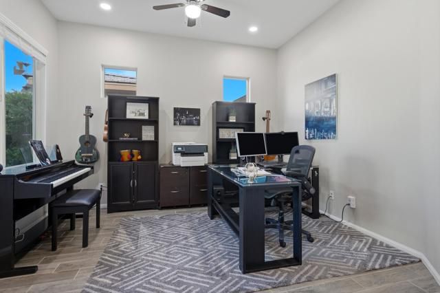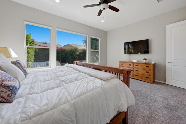 South Facing Pool Home | Celebrare Plan | Trilogy at The Polo Club | 3 Car Garage | Private Pool and Spa | Built 2018This highly upgraded pool residence with den in Trilogy at The Polo Club offers modern indoor outdoor living, a private pool and spa, and access to premier resort style amenities.The single story Celebrare plan offers approximately 2,451 square feet with two bedrooms, three baths, a dedicated den, and a rare three car garage. Built in 2018 and positioned on a 7,405 square foot lot, the home presents a thoughtfully designed open floorplan filled with natural light and seamless indoor outdoor flow.A private courtyard entry leads into expansive living spaces anchored by a great room with fireplace and dramatic 15 foot rolling glass door opening to the covered patio and resort style backyard. Wood tile flooring flows throughout the main living areas while plush carpeting enhances comfort in the bedrooms.The chef's kitchen features quartz countertops, stainless steel appliances, built in cooktop with vent hood, custom backsplash, and a generous island that connects effortlessly to the dining and living areas for entertaining.The primary suite serves as a private retreat with direct access to the backyard. The spa inspired bath includes a soaking tub, walk in shower, and dual vanities.Outdoor living shines in the south facing rear yard which captures all day sun and features a sparkling pool and spa with raised waterfall feature, lush landscaping for privacy, and an expansive covered patio designed for relaxed desert living.Additional highlights include a three car garage with EV charging station, premium upgrades throughout, and a prime location near the 25,000 square foot Polo Club clubhouse.Residents of Trilogy at The Polo Club enjoy access to resort pools, fitness center, tennis and pickleball courts, indoor golf simulator, and the acclaimed June Hill's Table restaurant. Transferable club membership available.This is a rare opportunity to enjoy private pool living within one of the Coachella Valley's most sought after resort communities.