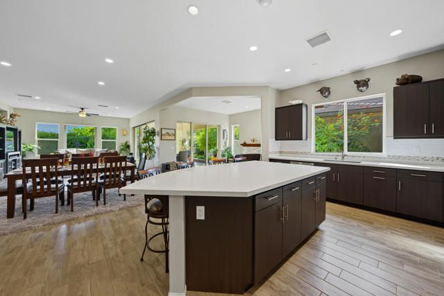 South facing pool home with den at Trilogy at The Polo Club in Indio, offering modern indoor outdoor living, private pool and spa, and access to resort style amenities.Designed to elevate indoor and outdoor living, this highly upgraded Celebrare plan with den offers a rare blend of space, natural light, and resort inspired lifestyle. Built in 2018 and set on a 7,405 sq ft lot, this 2,451 sq ft single story residence presents a thoughtfully designed layout that feels expansive, refined, and timeless.A private courtyard entry leads into open living spaces with dramatic sight lines, anchored by a great room with fireplace and framed by a 15 foot rolling glass door opening to the covered patio. Wood tile flooring flows throughout the main living areas, while plush carpeting in the bedrooms adds warmth and comfort.The dedicated den offers flexibility for a home office, media room, gym, or guest retreat, enhancing everyday living and overall functionality. The chef's kitchen features quartz countertops, stainless steel appliances, a built in cooktop with vent, custom backsplash, and designer finishes, opening seamlessly to the living and dining areas for effortless entertaining.The primary suite is a private sanctuary with direct access to the backyard. The spa inspired bath includes a designer shower, soaking tub, and dual vanities with premium countertops.Outdoor living shines in the south facing rear yard, offering all day sun, a sparkling pool and spa with raised waterfall feature, expansive covered patio, and lush landscaping designed for privacy and year round enjoyment.Additional highlights include a three car garage with electric vehicle charging station, premium upgrades throughout, and thoughtful attention to detail in every room.Located moments from the 25,000 sq ft Polo Club clubhouse, residents enjoy access to a fitness center, tennis and pickleball courts, resort and lap pools, indoor golf simulator, and the acclaimed June Hill's Table restaurant. A transferable club membership is available, buyer to pay the fee.This is a refined opportunity to enjoy modern desert living in one of Indio's most desirable resort communities.