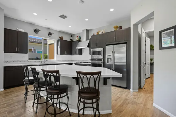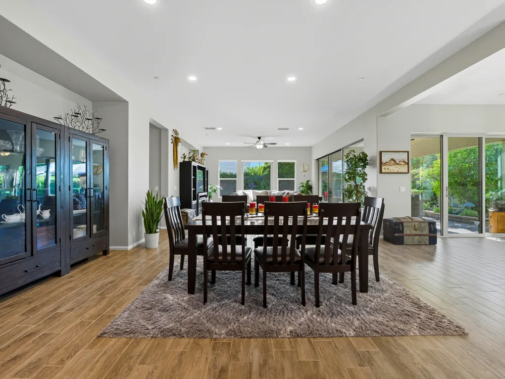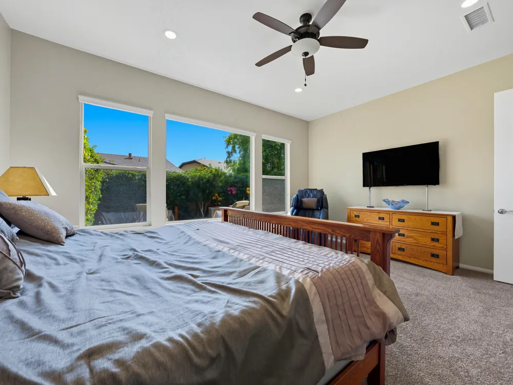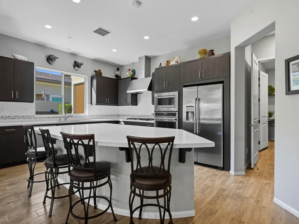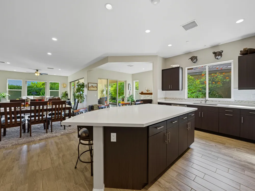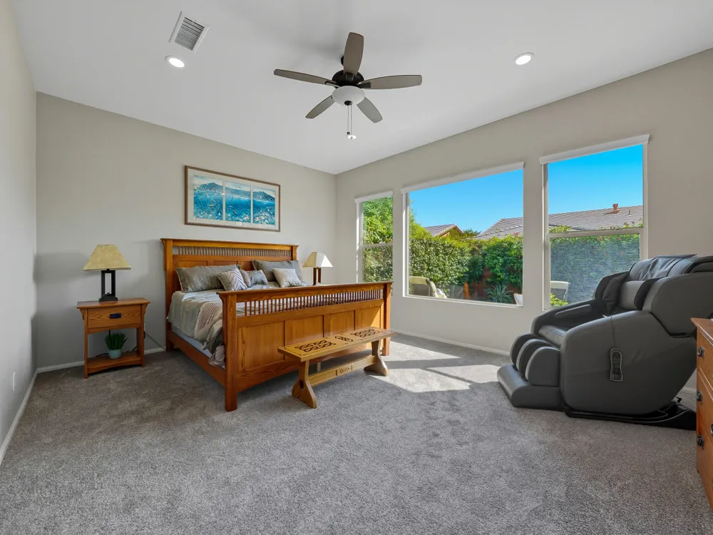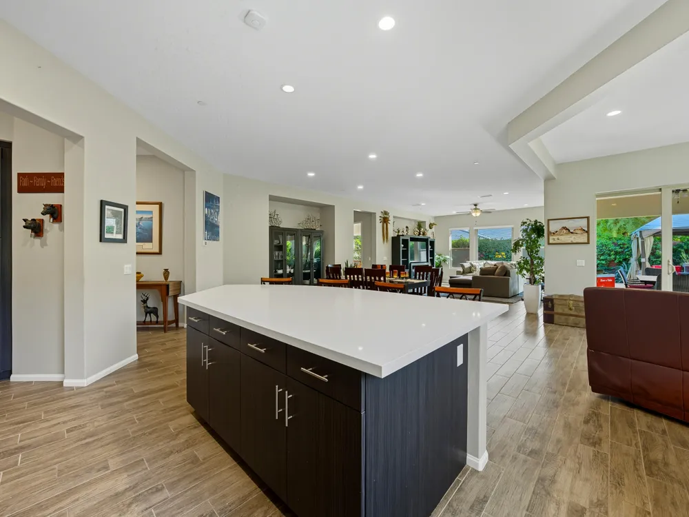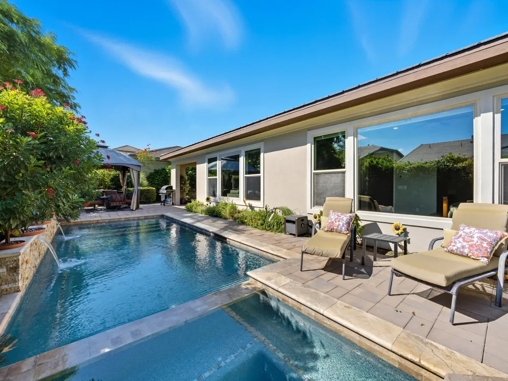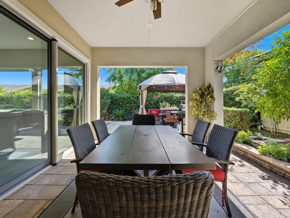Stunning, Highly Upgraded Home in Polo Club — 82595 Ladder Canyon Dr, Indio, CA 92201 Welcome to this exquisite, move-in ready residence offering exceptional upgrades throughout and a resort-style entertainer's backyard. Built in 2018 and set on a 7,405 sq ft lot, this 2,451 sq ft single-story home delivers luxury, comfort, and striking design. Redfin +1 From a private courtyard entry, step into an open Celebrare floor plan where dramatic sight lines guide you through expansive living spaces. The huge great room features a cozy sitting area with fireplace, perfect for gatherings or relaxing evenings. Wood tile flooring flows through all the common areas, with plush carpet in the bedrooms for warmth underfoot. There is a 15' rolling glass door that connects to the patio offering the best in indoor/outdoor living. The chef's kitchen is a culinary masterpiece, boasting stainless steel appliances, built-in cooktop with vent, quartz countertops, custom backsplash, and designer finishes throughout. Entertain effortlessly while prepping meals — this is kitchen perfection. Retreat to the large master suite, boasting ample space and direct yard access. The upgraded primary bath impresses with a designer shower, large soaking tub, and dual vanities with premium countertops — a true spa experience. Outside, enjoy a south-facing rear yard that bathes the space in natural light. The pool & spa feature a raised waterfall, wrapped by a large covered patio for indoor-outdoor living. Lush landscaping frames the property, creating a private sanctuary atmosphere. Additional highlights include a 3-car garage with electric car charging station, premium upgrades throughout, and thoughtful attention to detail in every room. This property is the perfect balance of sophistication and comfort — your dream home in the heart of Indio awaits. This home is located just down the street from the 25,000 sq ft Polo Club clubhouse. A transferable membership (buyer to pay $1,875 fee) provides access to world-class amenities including a fitness center, tennis, pickleball, resort and lap pools, indoor golf simulator, and the acclaimed June Hill's Table restaurant. All set against the stunning backdrop of the Santa Rosa Mountains.