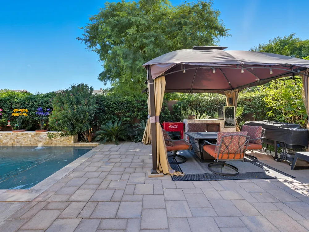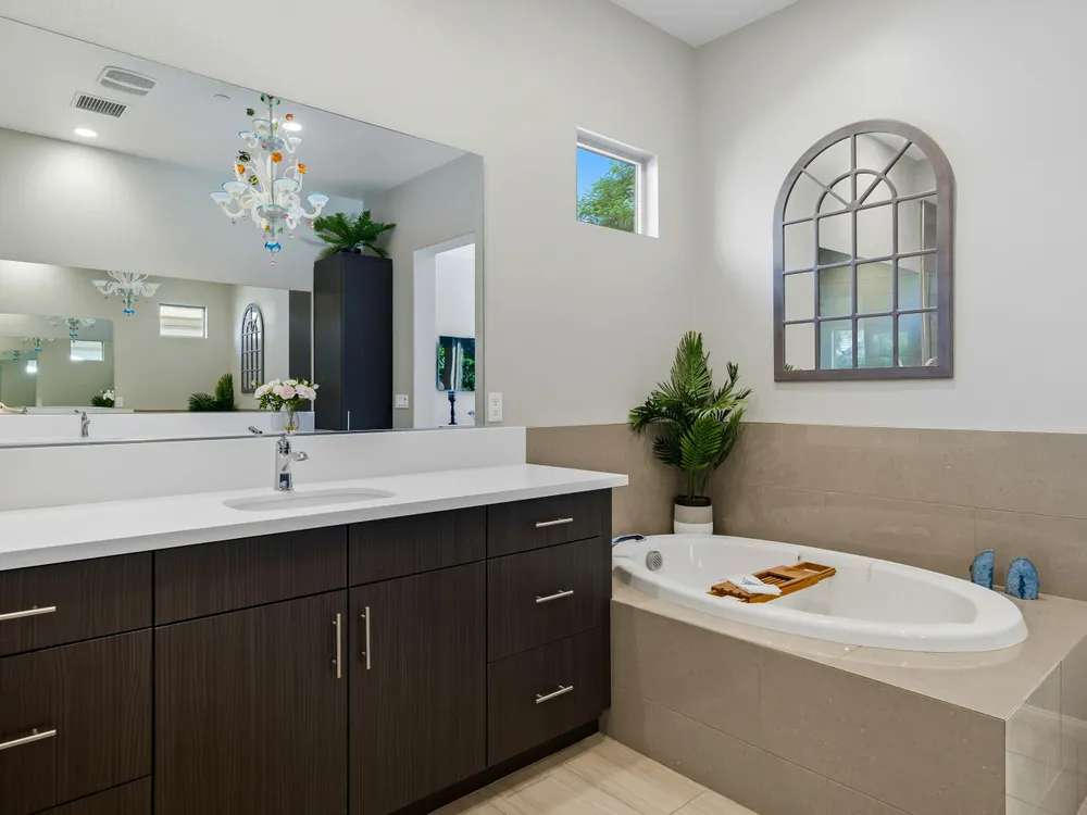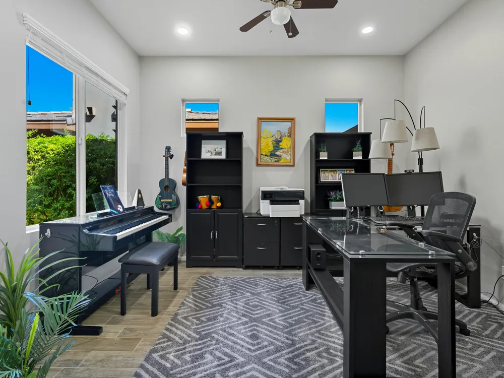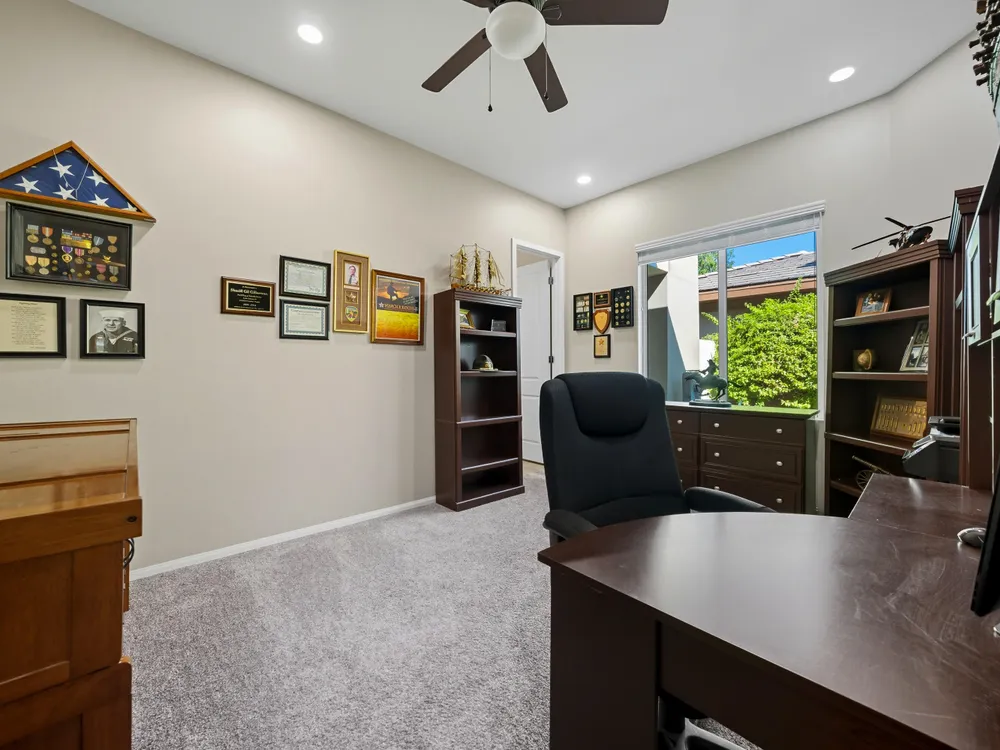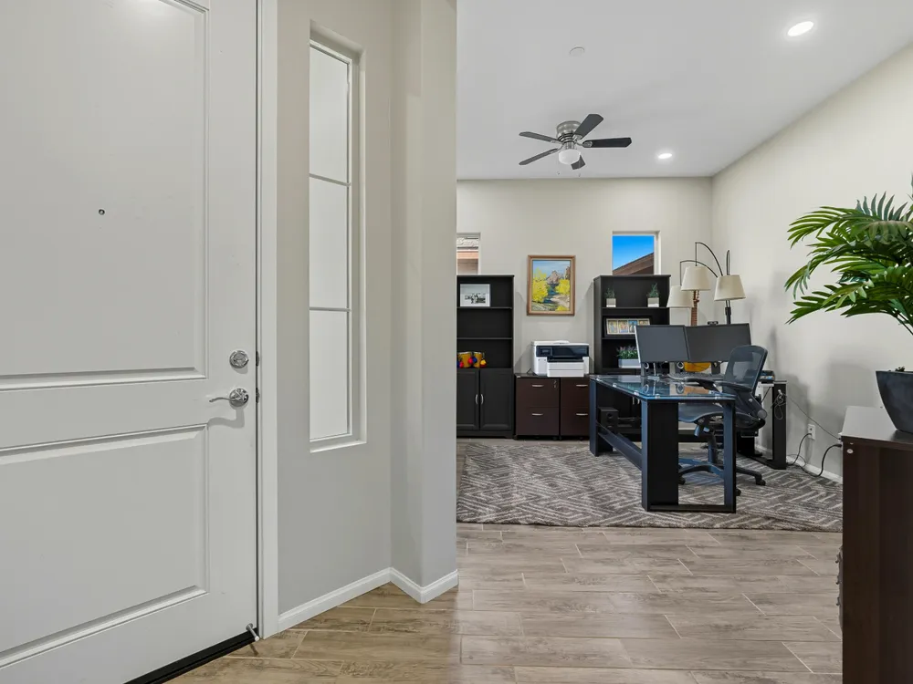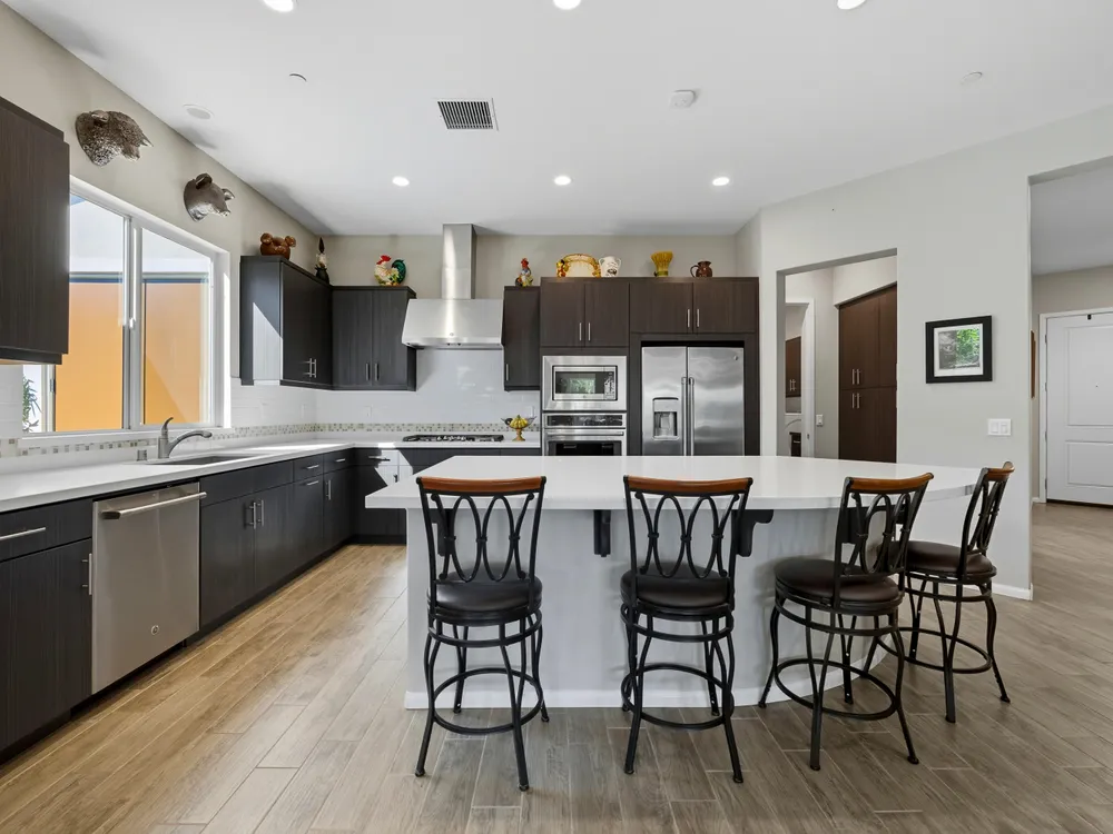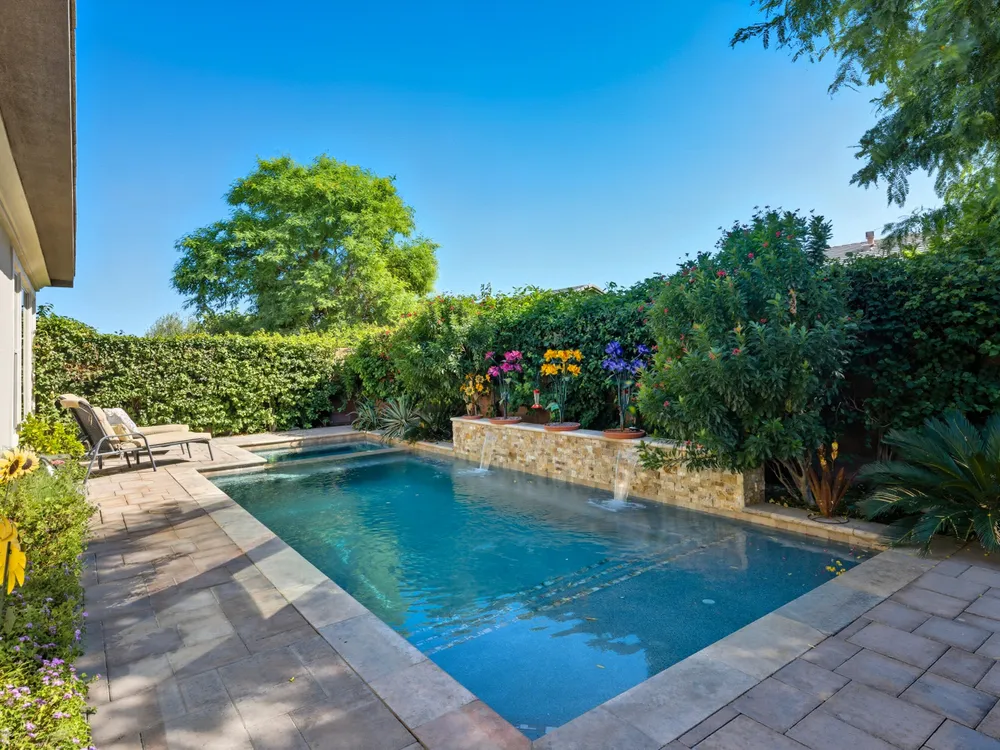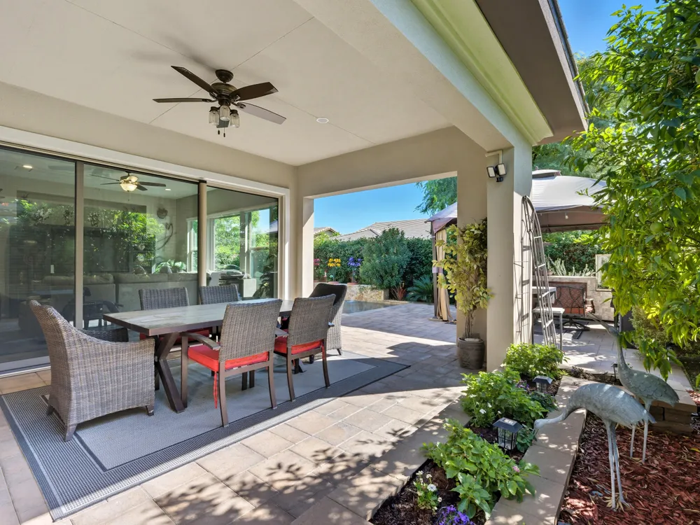 Stunning, Highly Upgraded Home in Polo Club — 82595 Ladder Canyon Dr, Indio, CA 92201 Welcome to this exquisite, move-in ready residence offering exceptional upgrades throughout and a resort-style entertainer's backyard. Built in 2018 and set on a 7,405 sq ft lot, this 2,451 sq ft single-story home delivers luxury, comfort, and striking design. Redfin +1 From a private courtyard entry, step into an open Celebrare floor plan where dramatic sight lines guide you through expansive living spaces. The huge great room features a cozy sitting area with fireplace, perfect for gatherings or relaxing evenings. Wood tile flooring flows through all the common areas, with plush carpet in the bedrooms for warmth underfoot. There is a 15' rolling glass door that connects to the patio offering the best in indoor/outdoor living. The chef's kitchen is a culinary masterpiece, boasting stainless steel appliances, built-in cooktop with vent, quartz countertops, custom backsplash, and designer finishes throughout. Entertain effortlessly while prepping meals — this is kitchen perfection. Retreat to the large master suite, boasting ample space and direct yard access. The upgraded primary bath impresses with a designer shower, large soaking tub, and dual vanities with premium countertops — a true spa experience. Outside, enjoy a south-facing rear yard that bathes the space in natural light. The pool & spa feature a raised waterfall, wrapped by a large covered patio for indoor-outdoor living. Lush landscaping frames the property, creating a private sanctuary atmosphere. Additional highlights include a 3-car garage with electric car charging station, premium upgrades throughout, and thoughtful attention to detail in every room. This property is the perfect balance of sophistication and comfort — your dream home in the heart of Indio awaits. This home is located just down the street from the 25,000 sq ft Polo Club clubhouse. A transferable membership (buyer to pay $1,875 fee) provides access to world-class amenities including a fitness center, tennis, pickleball, resort and lap pools, indoor golf simulator, and the acclaimed June Hill's Table restaurant. All set against the stunning backdrop of the Santa Rosa Mountains.