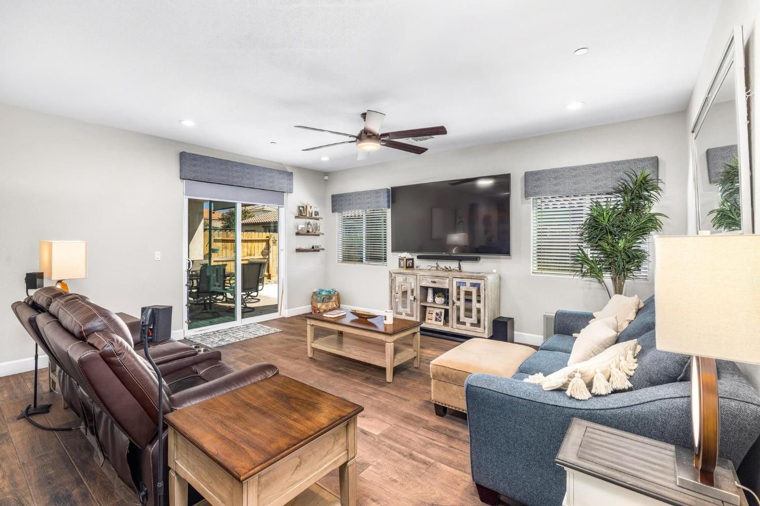 Welcome to this 55 and over vibrant community. This stunning home has upgrades galore! The kitchen has lots of cabinet space, stainless steel appliances, double ovens, large island with beautiful quartz countertop and large kitchen sink. This spacious home has porcelain tile flooring throughout and features 2 large bedrooms and an extra room that can easily be converted into the 3rd bedroom. It also has a 4th room with custom cabinetry that functions as an office! Large backyard and patio that are fully landscaped and easy to maintain. Imagine BBQ's with friends and family in this oasis. Amenities include the large beautiful clubhouse which feature a library, billiards table, full gym and much more. The exterior of the club house features a warm swimming pool, tennis courts, BBQ area with tables and chairs and a gardening area with planters to grow your own vegetables. That's not all, if you have an RV or boat, you can reserve your own parking area located inside the gated community to store it. Included with the home are a beautiful set of washer and dryer, water softner, solar security lights, doorbell camera, outdoor backyard retractable awning and leased solar panels with solar battery. Come see this beautiful home for yourself. Click on the 'Virtual Media' button and take a tour of the home and the amenities. You will be amazed! This home is your dream come true.