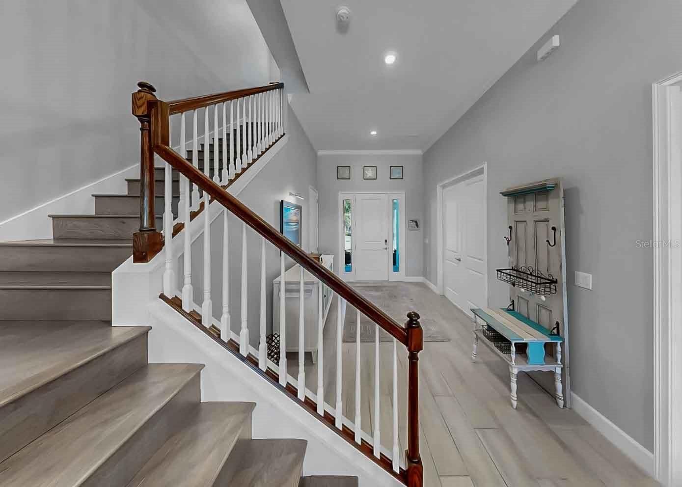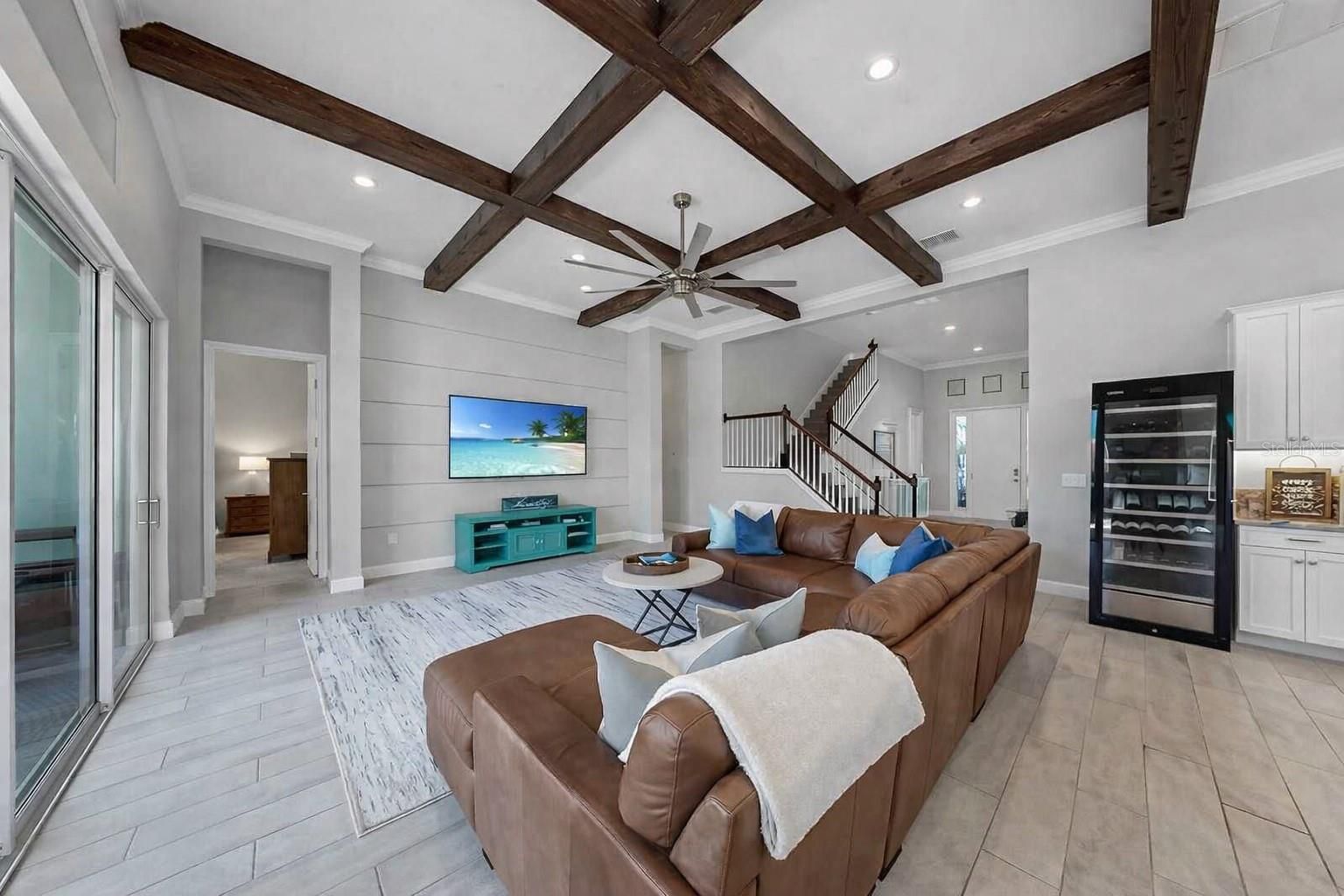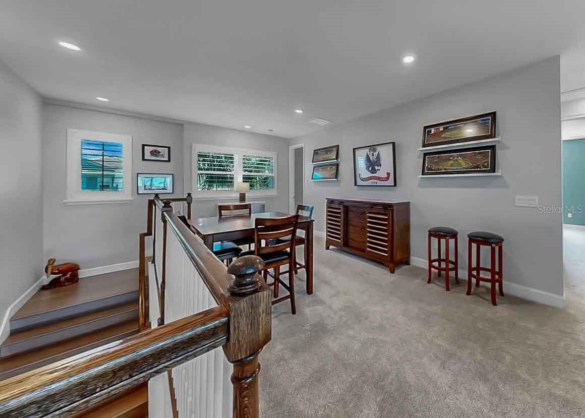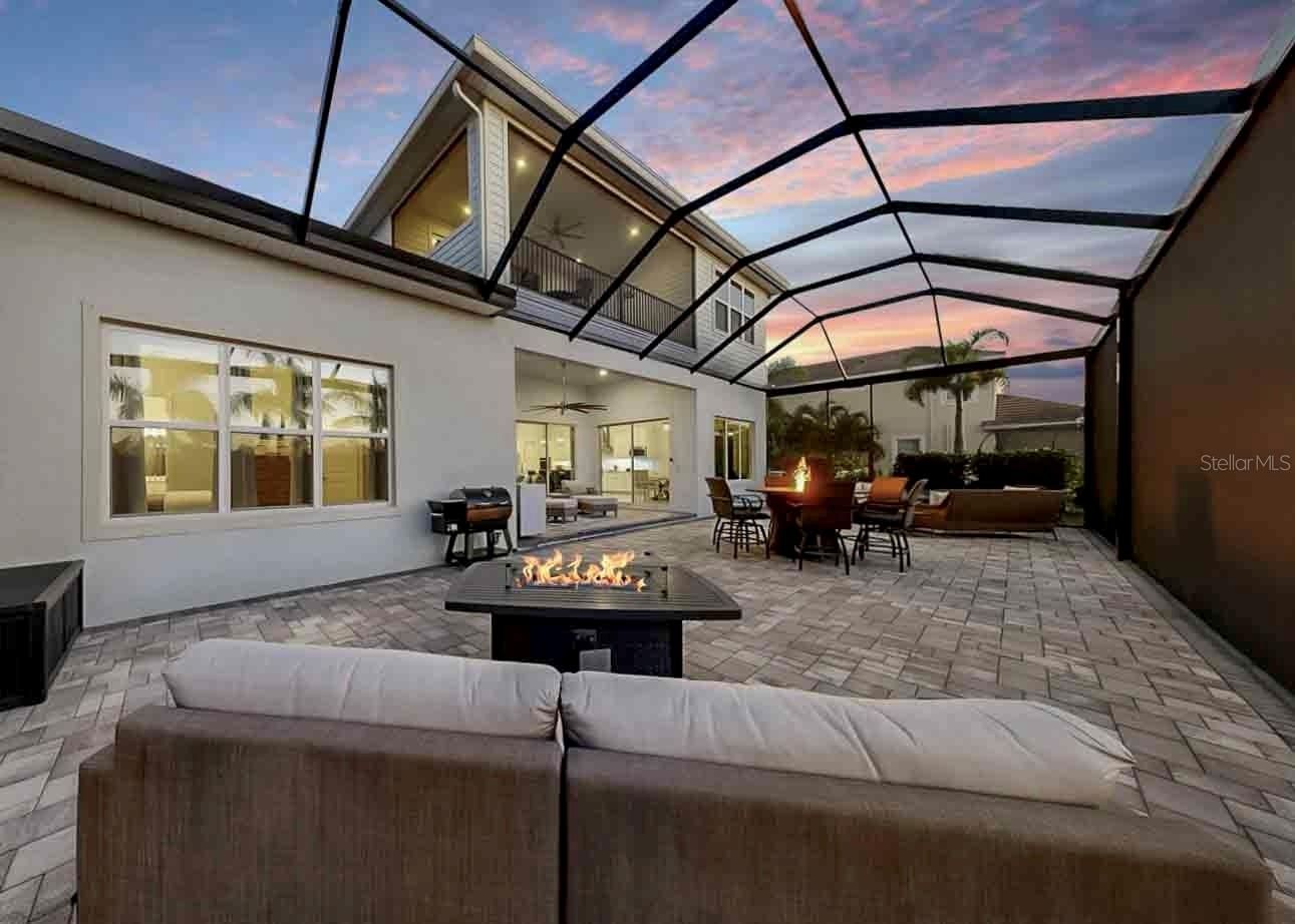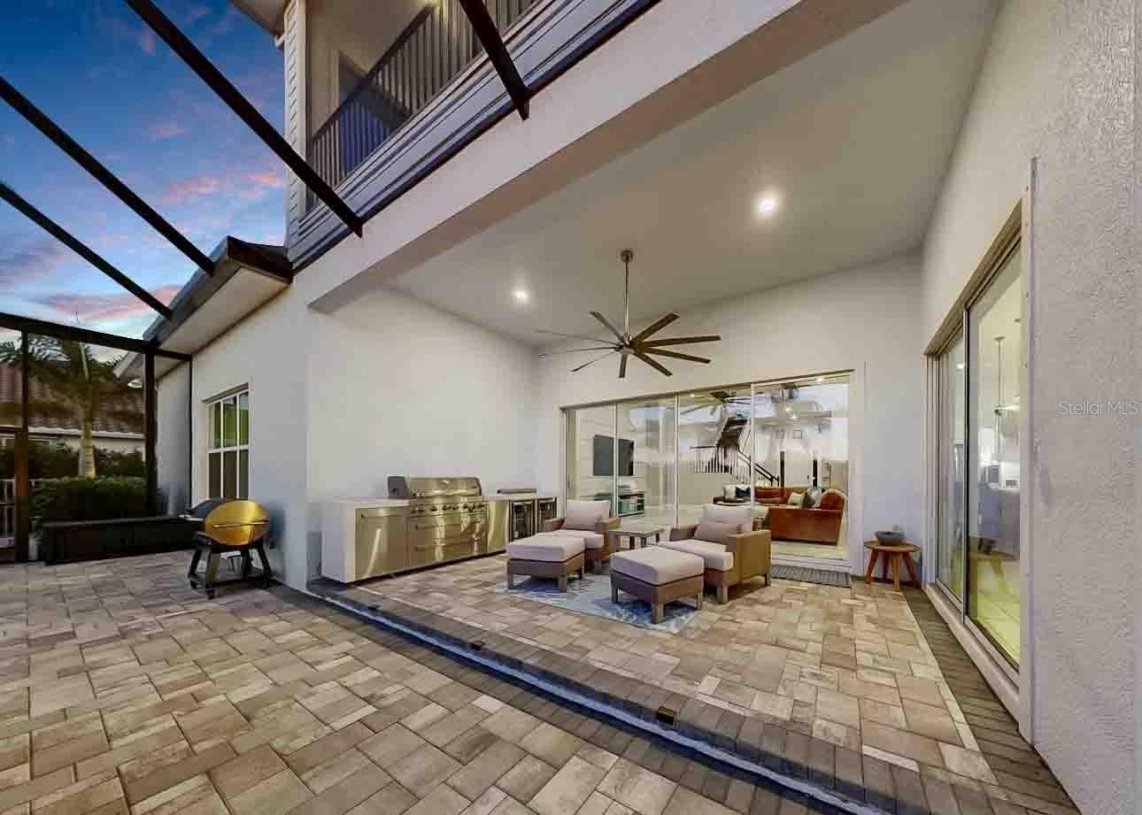 Welcome to refined coastal living in the beautiful, resort-style community of MiraBay, nestled in Bay Estates Preserve. This exceptional 4-bedroom, 4.5-bath residence, situated on an oversized lot, blends timeless design with modern luxury, offering an elevated Florida lifestyle in one of Tampa Bay’s most sought-after communities. The primary retreat is conveniently located on the main floor, while two of the three upstairs bedrooms are ensuite, with an additional bathroom near the bonus room and remaining bedroom, providing flexibility and comfort for family and guests. Enjoy spectacular sunsets from the expansive second-story screened balcony, featuring sweeping views of Tampa Bay and the downtown St. Petersburg skyline. Inside, the home showcases extensive upgrades and custom details throughout. Soaring ceilings reach 11’–12’ on the first floor and 9’ on the second, complemented by elegant 5 1/4" crown molding in the foyer, dining room, kitchen, family room, and primary retreat. Custom wood beams, designer wall accents, upgraded flooring, and enhanced lighting add warmth and architectural sophistication to every space. The gourmet kitchen is a true showpiece, featuring upgraded quartz countertops, wood cabinetry, stainless steel appliances, a double wall oven, built-in microwave, energy-efficient dishwasher, and a 36" gas cooktop with wall-mounted hood and pot filler, ideal for both everyday living and entertaining. Indoor and outdoor living blend seamlessly with an oversized screened lanai with outdoor kitchen, perfect for Florida living. Enjoy looking at the extensive upgraded landscaping accented by low-voltage landscape lighting. Additional highlights include plantation shutters, motorized shades, upgraded lighting throughout, and a dedicated Christmas light package with timer for effortless seasonal décor. This smart home is equipped with a Z-Wave automation package, central smart hub, Wi-Fi and remote thermostat access, a 16-SEER A/C system, and a tankless gas water heater. The exterior is equally impressive with a brick-paved driveway and entry patio, along with a classic barreled tile roof. Residents enjoy resort-style amenities including a clubhouse, café, resort-style pool, fitness center, pickleball, basketball, and tennis courts. Embrace the coastal lifestyle with community access to kayaking, paddleboarding, and fishing. A rare opportunity to own a private, beautifully upgraded home in one of Mirabay’s most desirable settings, where nature, luxury, and an active waterfront lifestyle come together seamlessly.