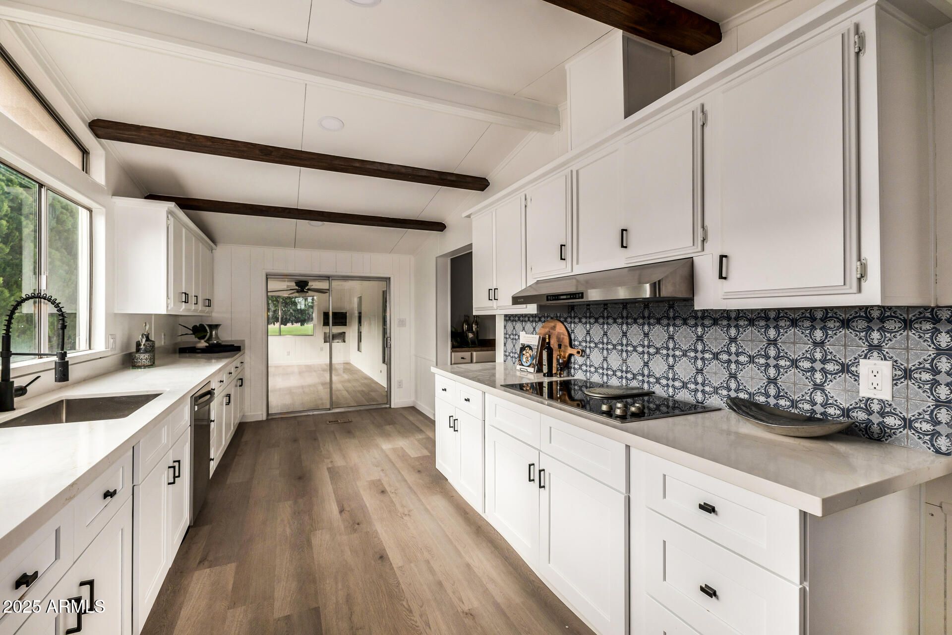 Beautifully remodeled and full of charm, this 2 bedroom, 2 bathroom home sits on a desirable golf course lot in the active adult community of Fountain of the Sun, offering open living spaces and a flexible bonus area ideal for a third bedroom, craft room, or office. The spacious kitchen features a cooktop, wall oven, built-in microwave, and abundant cabinetry for all your culinary needs. The primary suite offers a double vanity, separate shower, and a large soaking tub for ultimate relaxation. Outside, enjoy a covered patio, 2-car tandem carport, a generous workshop, and a backyard dotted with mature citrus trees—perfect for morning coffee or afternoon shade—all within a gated, amenity-rich neighborhood designed for resort-style living.
