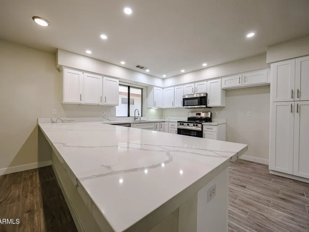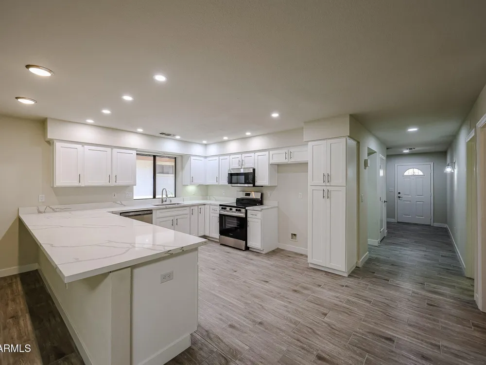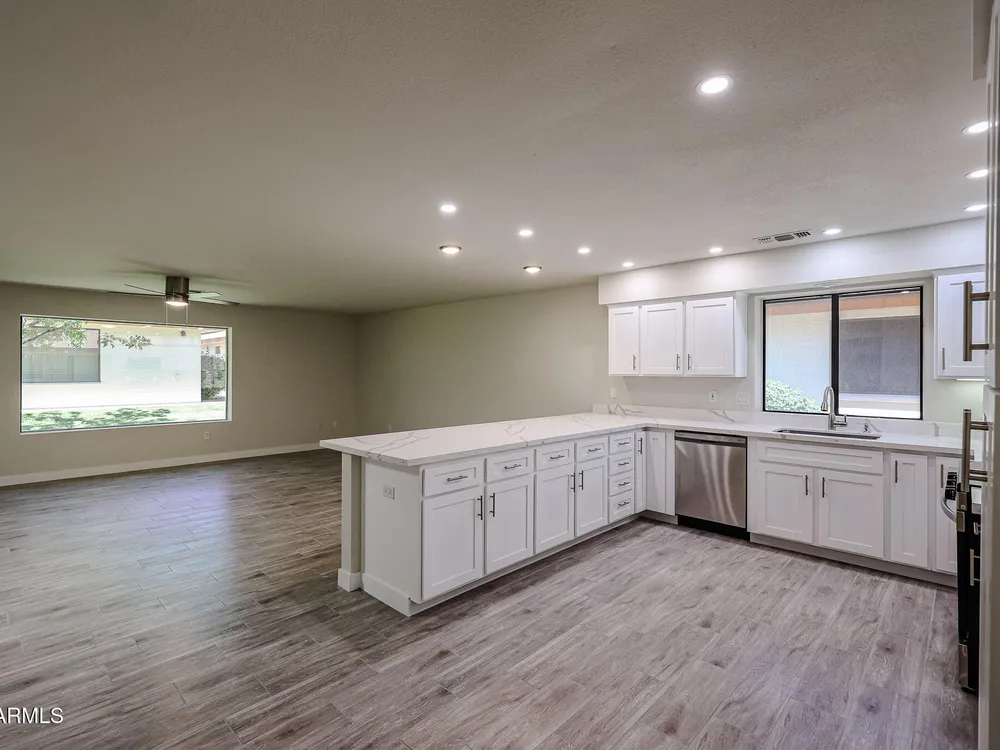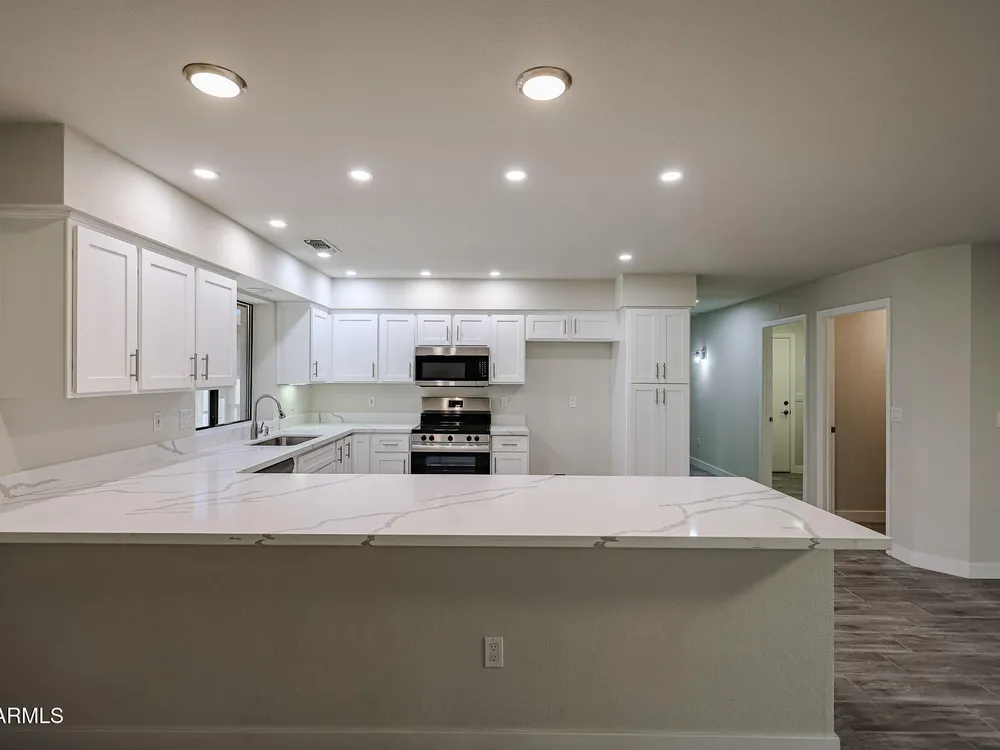 Spectacular single-level 2 bed/2 bath home in Sunland Village East! This move-in ready home features a split floor plan, striking wood-look tile in all the right places, new carpet in the bedrooms, a 2 car garage, and a screened-in Arizona room. The updated kitchen boasts new stainless steel appliances, exquisite cabinetry, and tasteful solid-surface countertops. Enjoy all of the amenities that Sunland Village has to offer, along with easy access around Mesa and beyond. Welcome home!