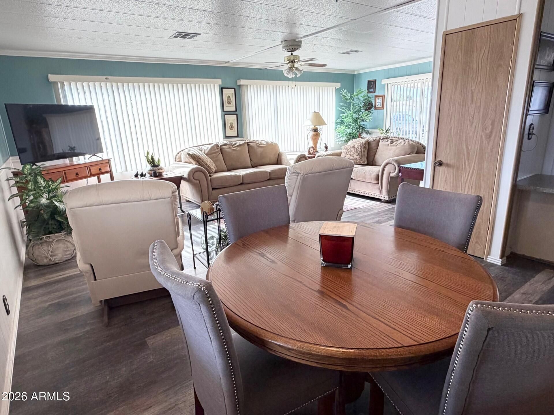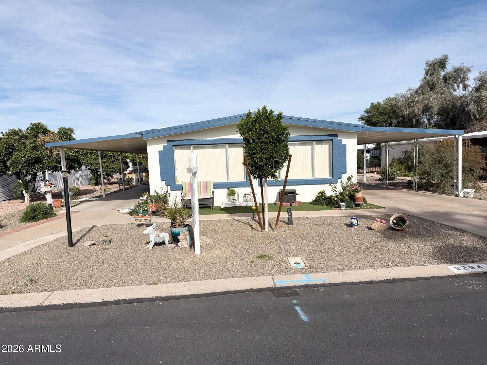 Welcome to this beautifully maintained home in the heart of Fountain of the Sun, a premier 55+ gated golf community in East Mesa. This inviting residence located in a Cul-De-Sac offers a bright, open layout designed for easy living, comfortable entertaining, and year-round enjoyment of Arizona's sunshine, 2 Bedroom 2 Bath, Mobile Home, Nice Open Floorplan, Wonderful Large Covered Patio Area, Fruit Trees, Large Storage Area and a Separate Workshop as well, Workshop is 17 X 7 and back shed is 14 X 10.5, North/South Exposure to enjoy the Beautiful AZ Weather. Residents enjoy Golf, Pickleball, Bocce Ball, a heated pool and spa, fitness center, on-site dining, and a full calendar of social activities, all within a secure, friendly neighborhood with beautifully kept grounds.