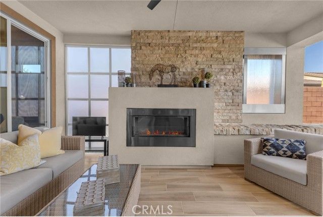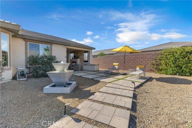 Set on a quiet cul-de-sac, this home offers privacy, smart upgrades, and the relaxed indoor/outdoor lifestyle buyers love at Trilogy Polo. Inside, the main living area features a flexible bonus room perfect for an office, hobby space, or visiting guests. Smart upgrades include top-down bottom-up shades, fans throughout, laundry room built-ins, a water softener, and a finished garage with overhead storage. The open plan kitchen adds everyday convenience with a dedicated wine fridge that makes hosting easy. A full sliding glass wall opens the dining area to a tiled Arizona room with a water-wall feature and built-in fireplace, extending the living space year-round. Outside, a large backyard with a fountain and mature citrus trees delivers a private setting for morning coffee or evening gatherings. The bedrooms are nicely appointed, with the primary suite including an expanded sitting area, walk-in closet, and dual sinks for added convenience. Experience the Trilogy Polo lifestyle! Schedule your private showing today.