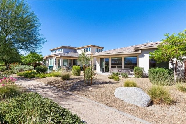 Discover effortless living in this beautifully maintained Aria model home, located in Trilogy Polo Club's exclusive 55+ neighborhood. Perfect as a full-time primary residence or secondary vacation home, this 2-bedroom, 2-bath residence offers the perfect blend of style and low-maintenance convenience. Step inside to wide-plank tile flooring that flows throughout the open-concept living spaces. The thoughtful split-bedroom layout ensures privacy, with the primary suite positioned opposite the guest suite. Both bedrooms feature fresh carpeting for added comfort. The chef's kitchen showcases granite countertops, an attractive backsplash, and premium appliances including a stainless steel gas range, microwave, and GE Profile side-by-side refrigerator. A versatile flex room houses the washer and dryer while providing space for a home office or craft studio. Both bathrooms have been elegantly updated with floor-to-ceiling ceramic tile showers featuring built-in benches and granite vanities, creating a spa-inspired atmosphere. Your private patio offers stunning mountain views of the Santa Rosa and Chocolate Mountain ranges, complemented by professionally maintained landscaping. As a resident, enjoy access to the spectacular 25,000 sq ft Polo Club featuring June Hill's Table restaurant, three outdoor pools, state-of-the-art fitness center with Afturburn program, yoga studio, pickleball and tennis courts, bocce, golf simulator, game room with billiards, artisan and culinary studios with chef demonstrations, and 19 parks woven throughout the community. A full-time Lifestyle Director ensures endless opportunities for connection and recreation. Located just 25 miles from Palm Springs International Airport with easy I-10 access, shopping nearby, and over 100 world-class golf courses in the region, this turnkey home offers the ultimate desert lifestyle. Schedule your private showing today! If pre-approved through Jarrod Leitch at Franklin Loan Center, you will receive a free appraisal credit at close of escrow. Go to: www.franklinlc.com/jleitch for application!