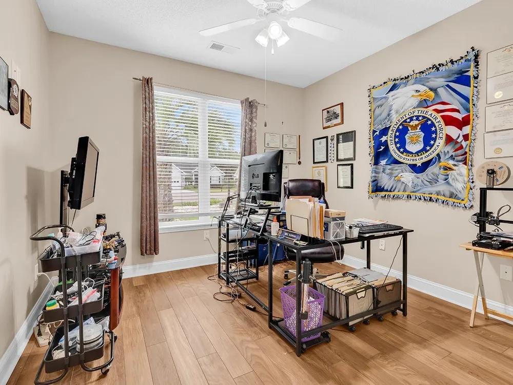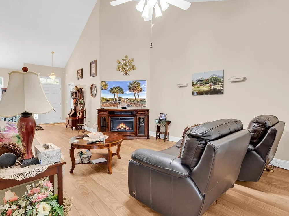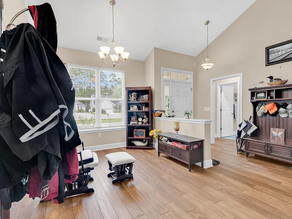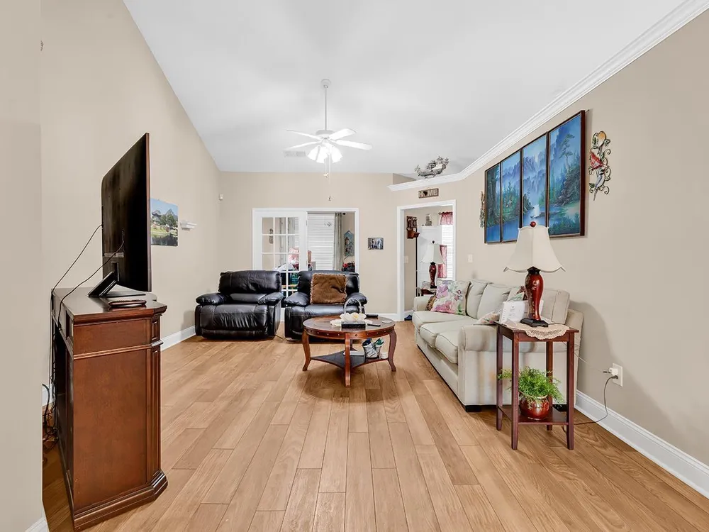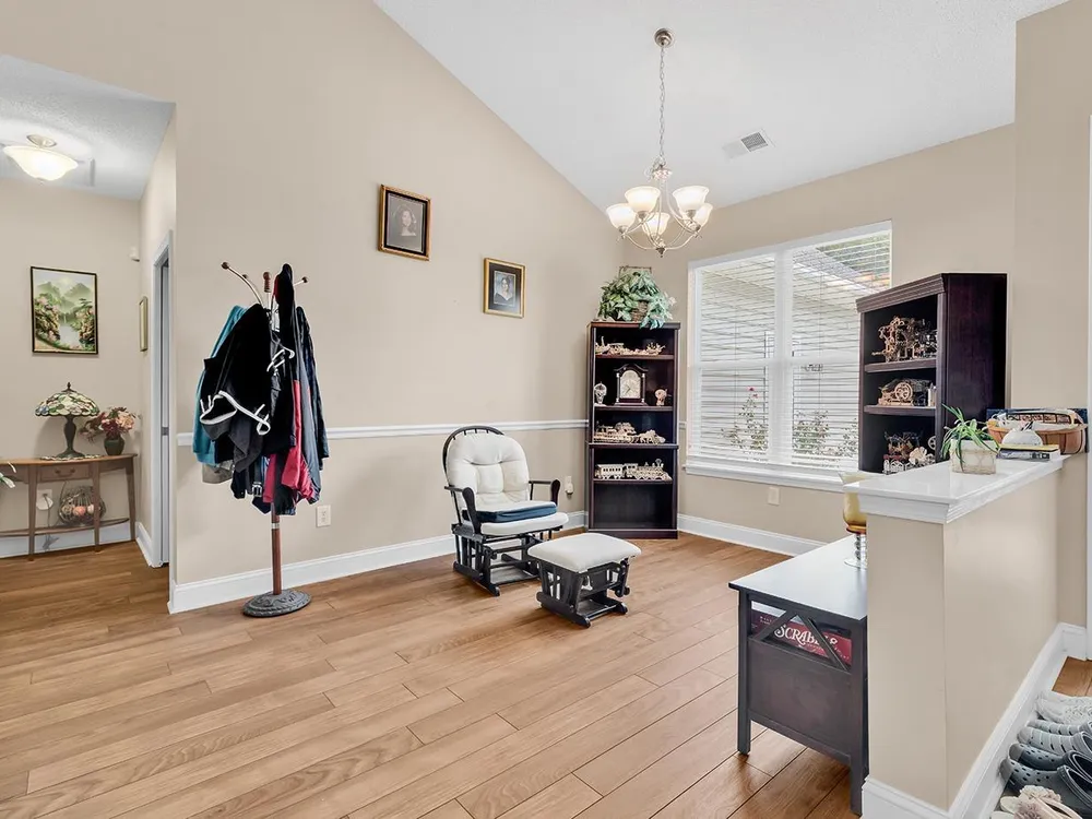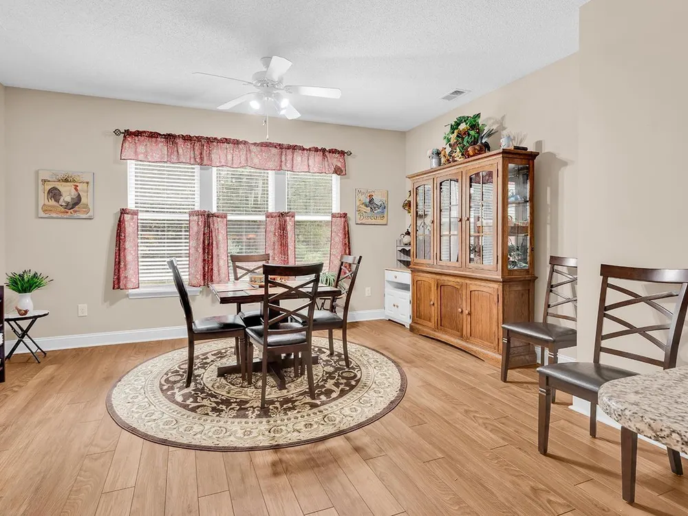 Schedule your showing today at 827 Helms Way, Myrtle Trace South, a distinguished community designed for individuals aged 55 and over. You are invited to explore the Charleston II model, which encompasses three bedrooms, two bathrooms, an office/den, and a two-car garage, all situated on a private and premium lot. Upon entry, one will find the formal dining room located to the right. To the left, a corridor leads to two nice-sized bedrooms and the main bathroom. The living room is characterized by its impressive vaulted ceiling and a doorway that connects to the den/office. The kitchen is fully equipped with all necessary appliances, features a decorative backsplash, a breakfast bar, and a charming morning room. The primary bedroom is positioned on the opposite side of the residence, offering a ceiling fan, a spacious sitting area, and a walk-in closet. The laundry room is conveniently outfitted with a washer and dryer. Residents are invited to unwind on the private patio, where they may enjoy reading a book while observing the local birdlife. Myrtle Trace South boasts low homeowner association dues that encompass mowing of the lawn. The community is equipped with a clubhouse and pool, alongside a variety of planned activities. Strategically located between Highway 501 and Highway 544, this home provides effortless access to Burning Ridge Golf Course, Conway Medical Center, Walmart, Coastal Carolina University, Tanger Outlets, Historic Conway, and the numerous attractions of Myrtle Beach, including access to the beach itself.