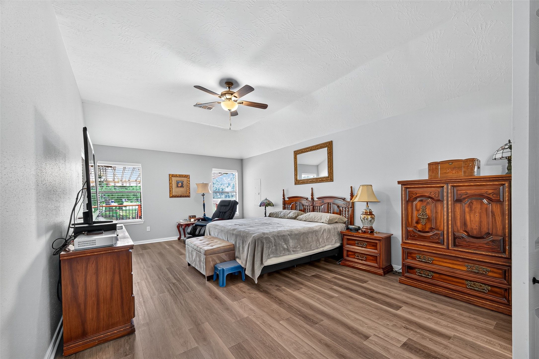 - Double Vanity, Separate Shower, Tub Shower, Window Treatments, Ceiling Fan(s)