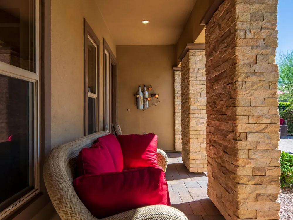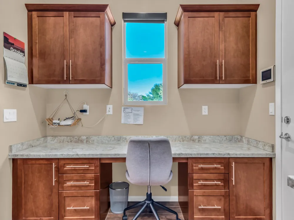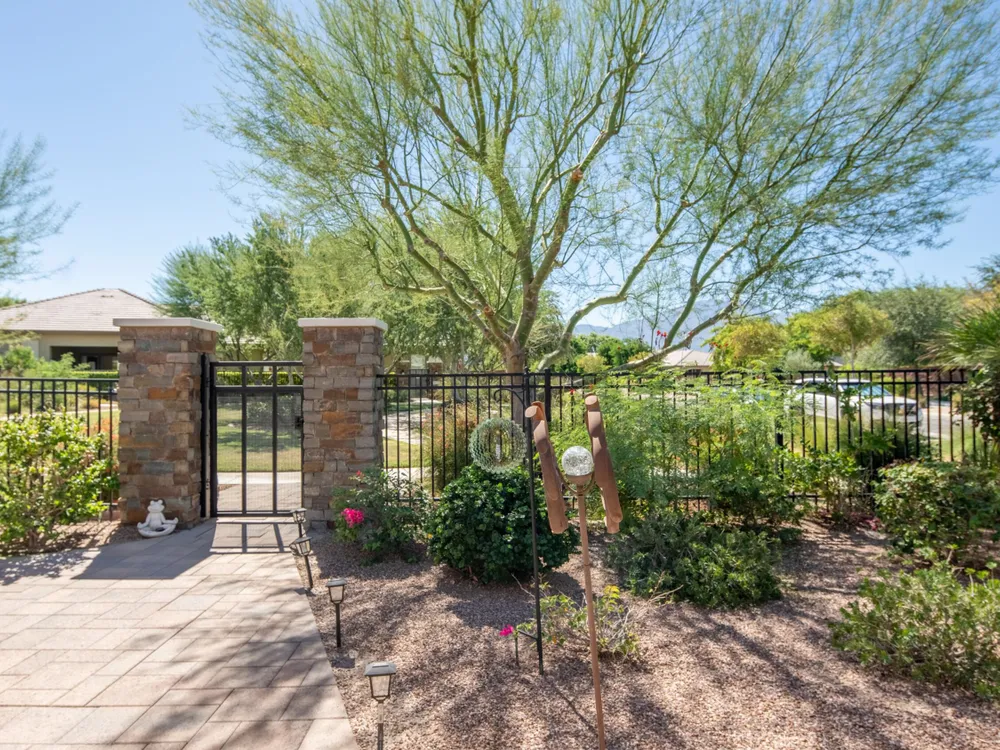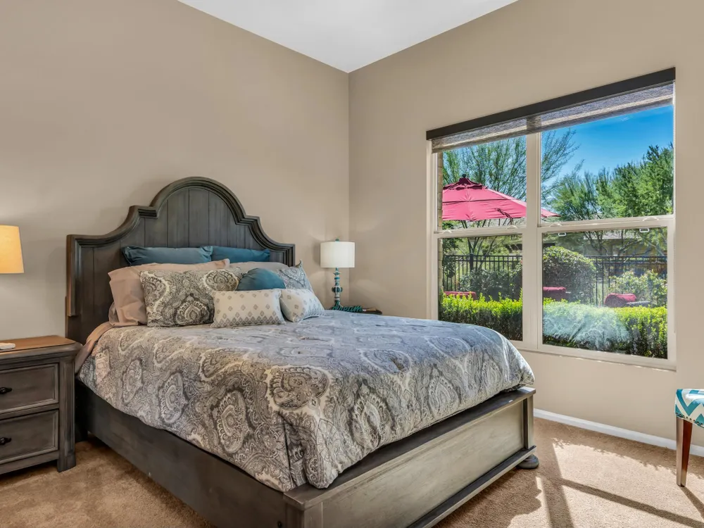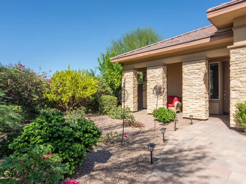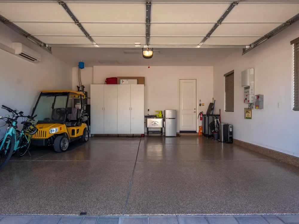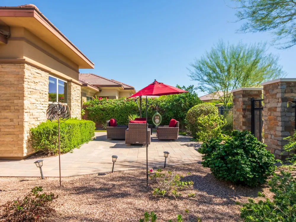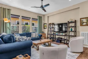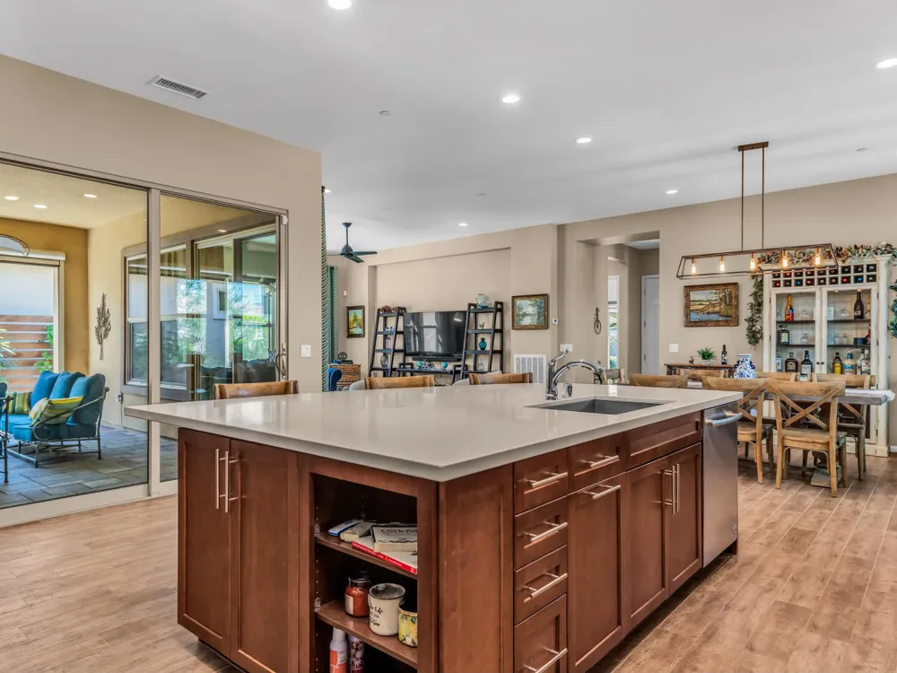Welcome to your fully furnished desert getaway in the sought after All Ages section of Trilogy Polo Club where resort living meets everyday convenience. This beautifully maintained 2 bedroom plus den, 2 bath home sits on a desirable corner lot with lush greenspace right out front, offering privacy and serene views the moment you arrive. Enter inside to a bright and open great room concept, perfect for entertaining or relaxing in style. The modern chef's kitchen features a spacious breakfast bar, sleek finishes, and seamless flow to the living and dining areas. A rolling wall (glass pocket sliding doors) leads from kitchen to the private covered patio where you can relax in all seasons with the electric roll-down drop shade. Whether you're working remotely or hosting guests, the flexible den/workspace offers the versatility you need — ideal for a home office, media room, or guest overflow. A prepaid solar lease means affordable utility costs. The attached 2 car garage has a mini split for cooling, epoxy flooring - could be the perfect work-out area or hobby/DIY space. The laundry room is spacious and features a built-in workspace. Offered turnkey furnished, this home is ready for immediate enjoyment — just bring your suitcase! Enjoy ALL benefits of the Trilogy Clubhouse by purchasing the optional Club Membership Transfer at $1,875 and $210/mo dues - for a lifestyle including: resort-style amenities, pools, fitness, tennis, pickleball, dining, and a vibrant social calendar — all just minutes from the Empire Polo Grounds, La Quinta shopping, and world-class golf. Lock and leave home perfect for Second Home or Vacation Buyers, resort style living without the age restrictions, upsize or downsize with ease as this home is already perfectly furnished. Don't miss your chance to own in one of the desert's most flexible and stylish resort communities. This home checks all the boxes — location, lifestyle, and livability.