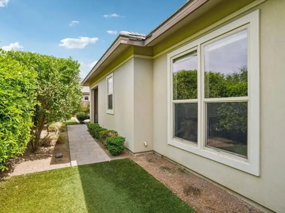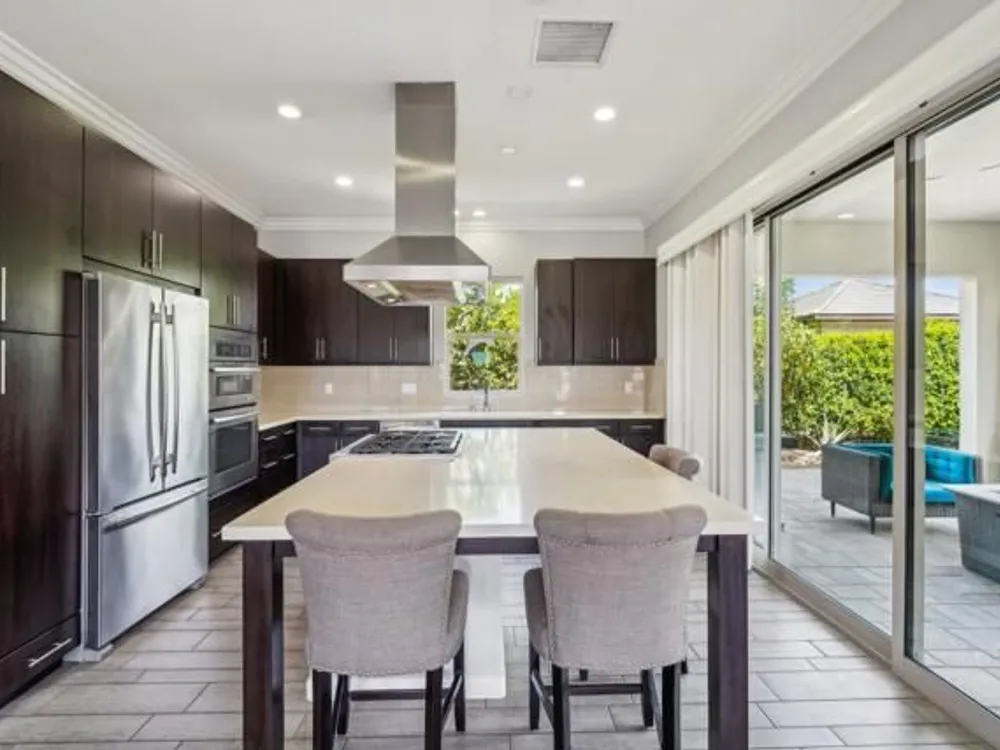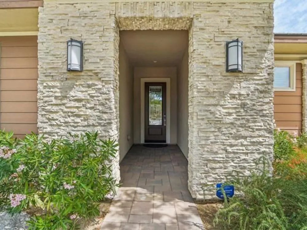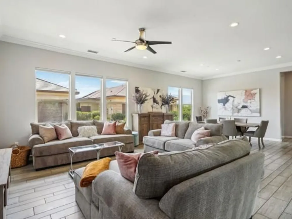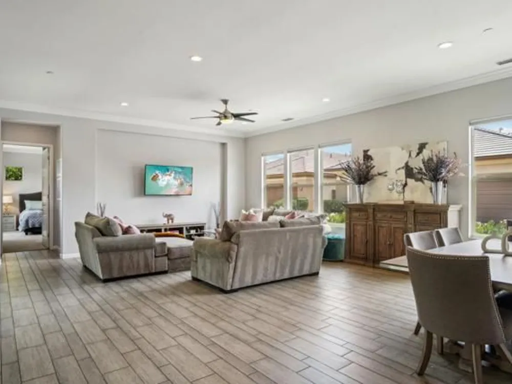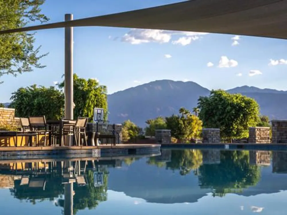 Step into refined desert living at its finest with this impeccably maintained single-family gem, nestled behind the manned-gated entrance of Trilogy Polo Club; in the All-Ages section--one of the Coachella Valley's premier resort communities. Offering 2,245 sq ft of stylishly appointed living space, this 2 bed, 2.5 bath home includes a versatile SMART room with laundry, built-in workspace, and generous cabinetry. Through a custom etched-glass door, you're welcomed into an open-concept great room showcasing designer plank flooring, crown molding, recessed lighting, and a chic TV/media niche. The adjacent flex space easily transforms into a den, office, or 3rd bedroom. Entertain with ease in the Chef's kitchen, complete with stainless steel appliances, quartz countertops, espresso cabinetry, subway tile backsplash, built-in ovens, a 6-burner gas cooktop with dramatic hood, and an oversized island with bar seating. Retreat to your sun-drenched primary suite with a spa-worthy bath featuring a soaking tub, dual quartz vanities, oversized tiled shower, and a large walk-in closet. Your guests will love the private accommodations, while the serene backyard--framed by professional landscaping, paver patios, and covered lounging areas with pocket sliders--offers the ultimate indoor-outdoor lifestyle. Just steps from world-class amenities at the clubhouse, this desert dream home is ready to impress. Schedule your private showing today!