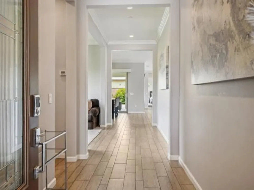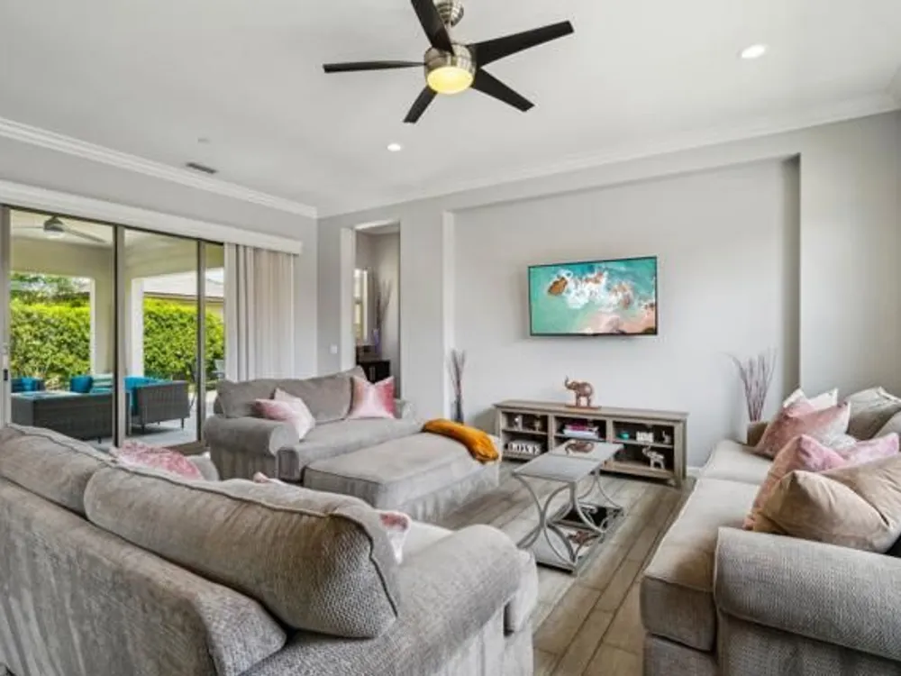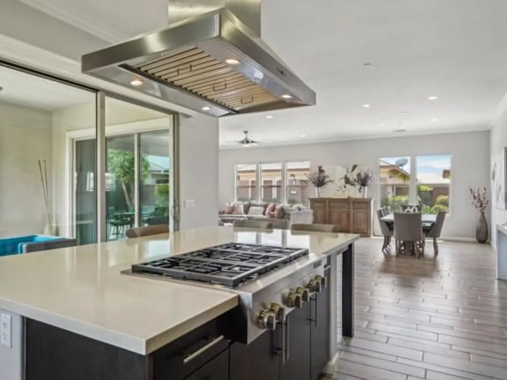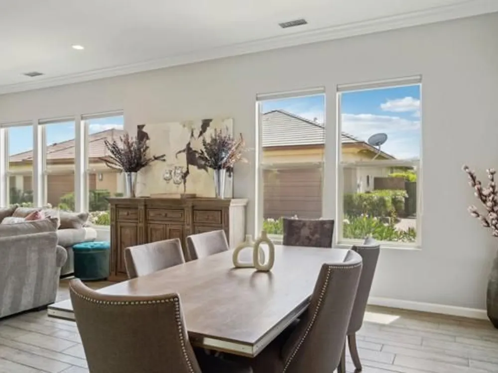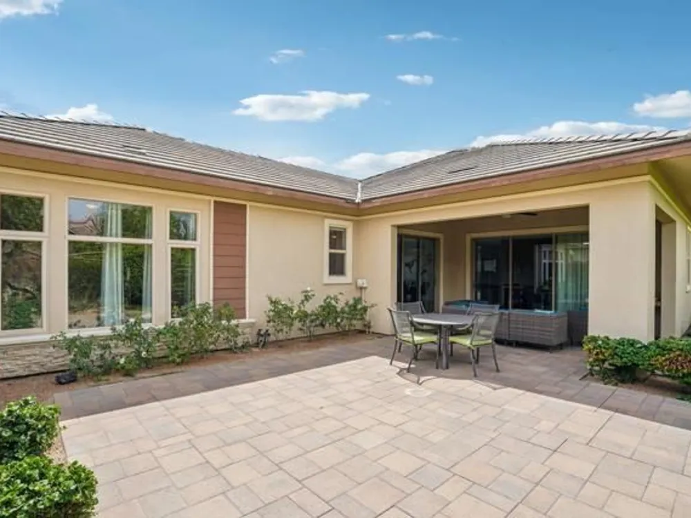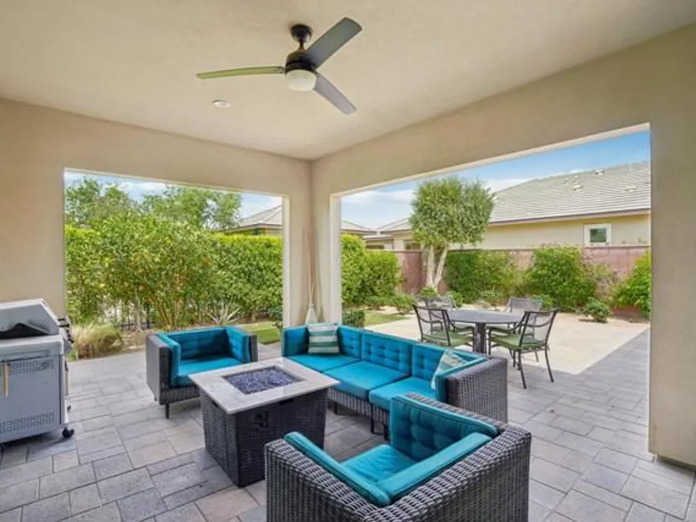Step into refined desert living at its finest with this impeccably maintained single-family gem, nestled behind the manned-gated entrance of Trilogy Polo Club; in the All-Ages section--one of the Coachella Valley's premier resort communities. Offering 2,245 sq ft of stylishly appointed living space, this 2 bed, 2.5 bath home includes a versatile SMART room with laundry, built-in workspace, and generous cabinetry. Through a custom etched-glass door, you're welcomed into an open-concept great room showcasing designer plank flooring, crown molding, recessed lighting, and a chic TV/media niche. The adjacent flex space easily transforms into a den, office, or 3rd bedroom. Entertain with ease in the Chef's kitchen, complete with stainless steel appliances, quartz countertops, espresso cabinetry, subway tile backsplash, built-in ovens, a 6-burner gas cooktop with dramatic hood, and an oversized island with bar seating. Retreat to your sun-drenched primary suite with a spa-worthy bath featuring a soaking tub, dual quartz vanities, oversized tiled shower, and a large walk-in closet. Your guests will love the private accommodations, while the serene backyard--framed by professional landscaping, paver patios, and covered lounging areas with pocket sliders--offers the ultimate indoor-outdoor lifestyle. Just steps from world-class amenities at the clubhouse, this desert dream home is ready to impress. Schedule your private showing today!