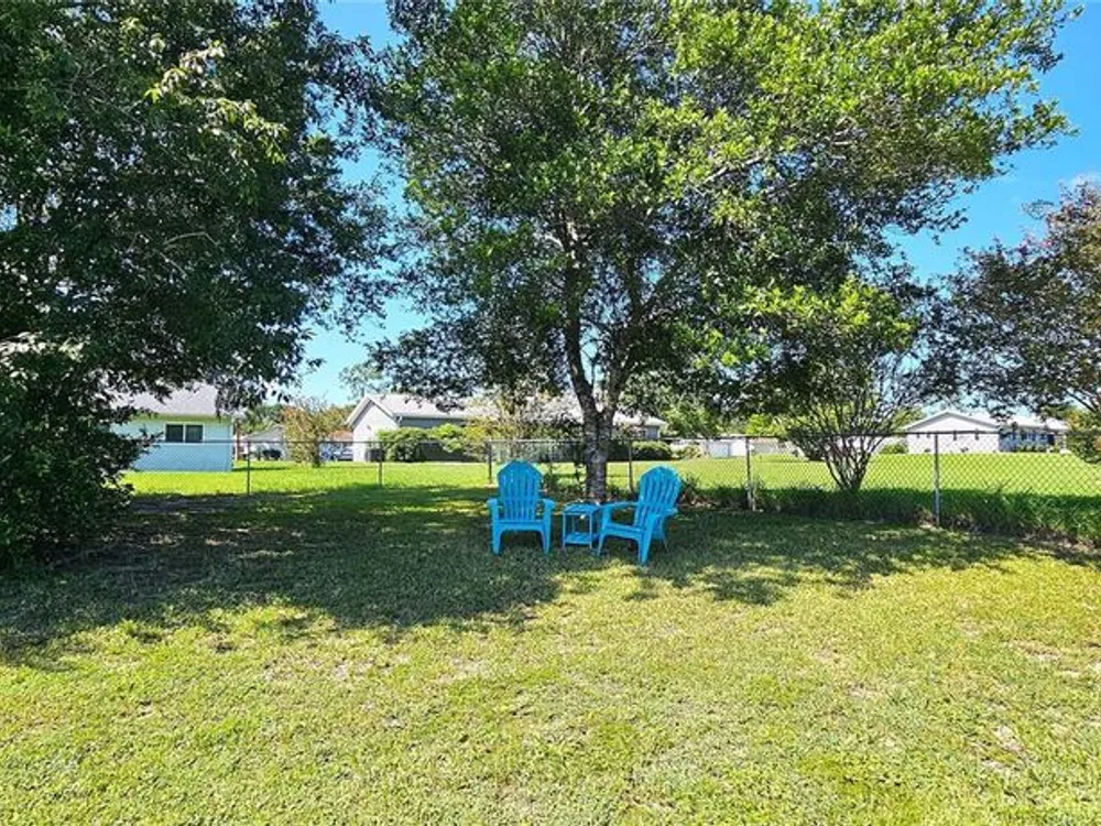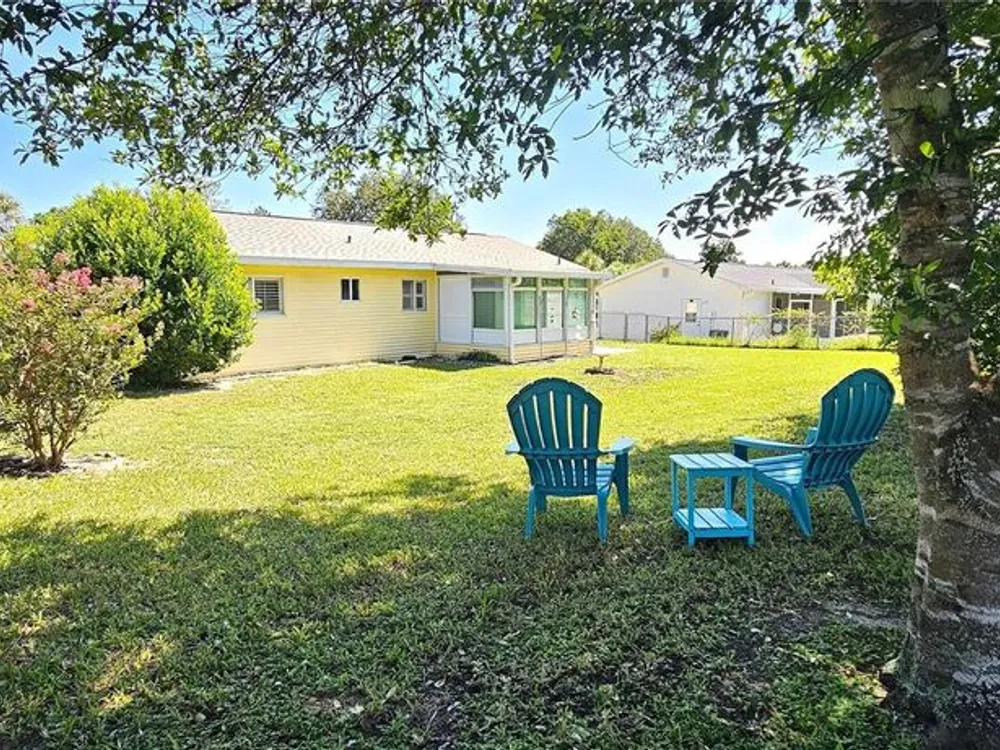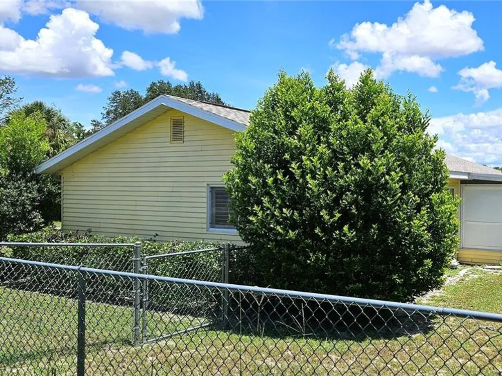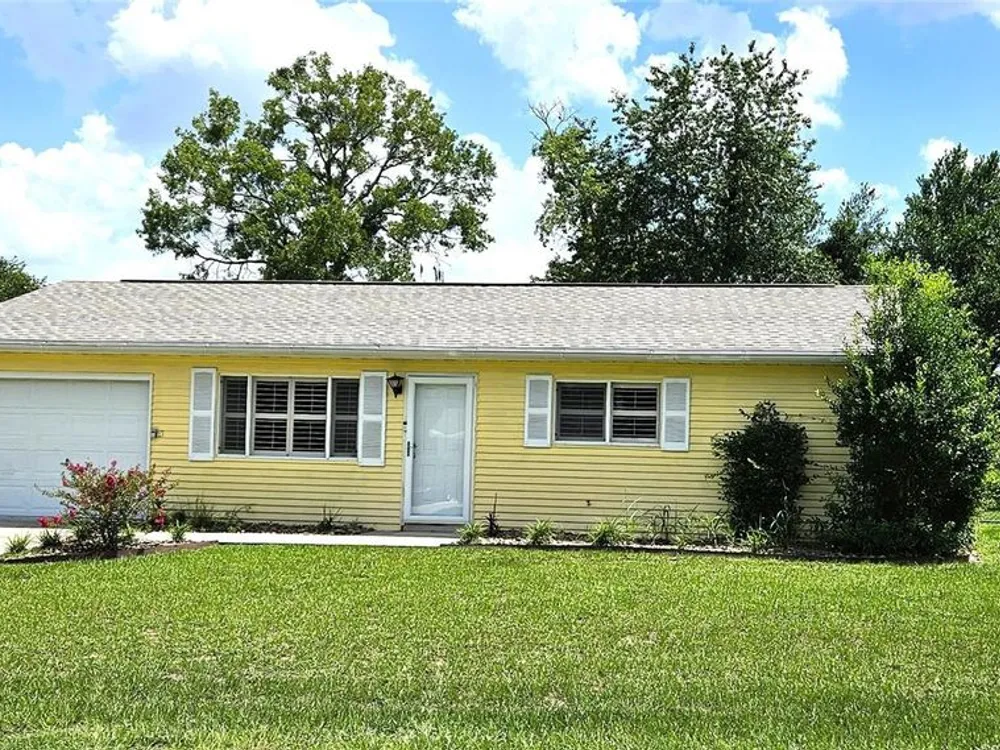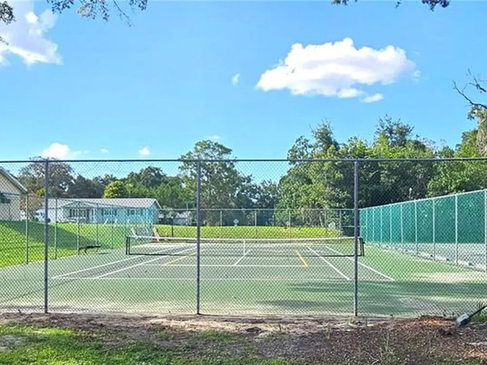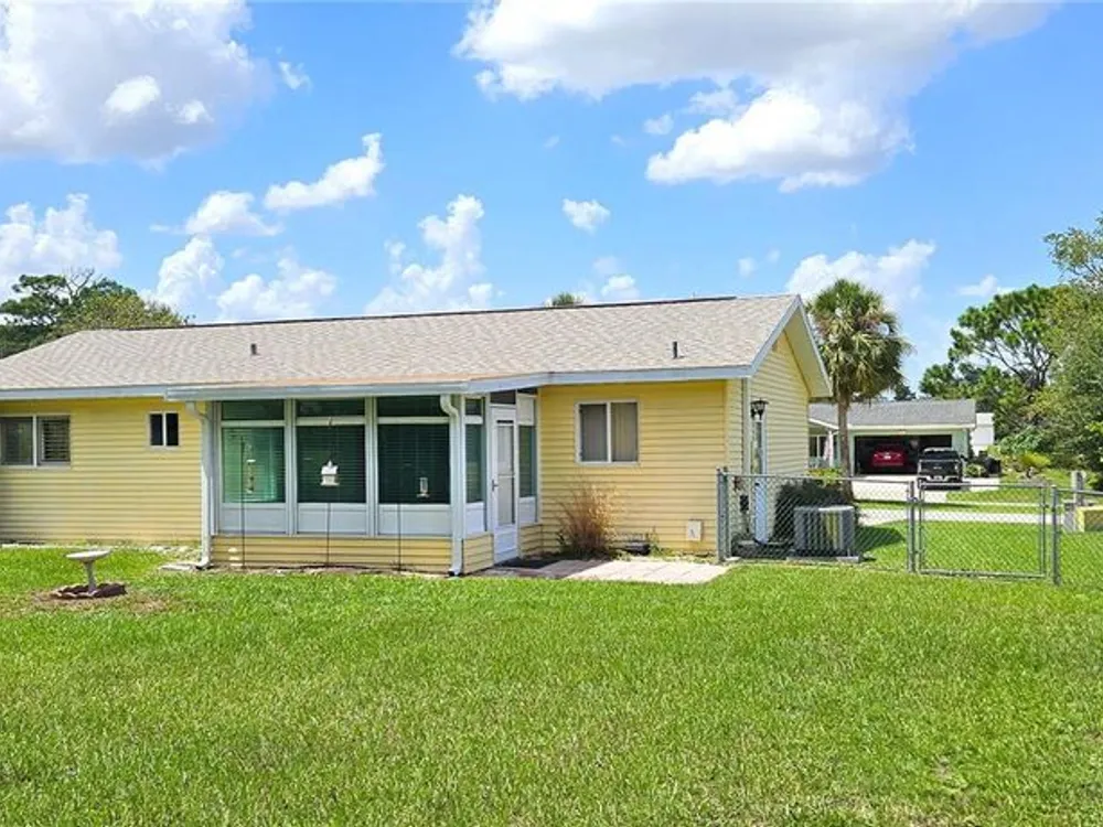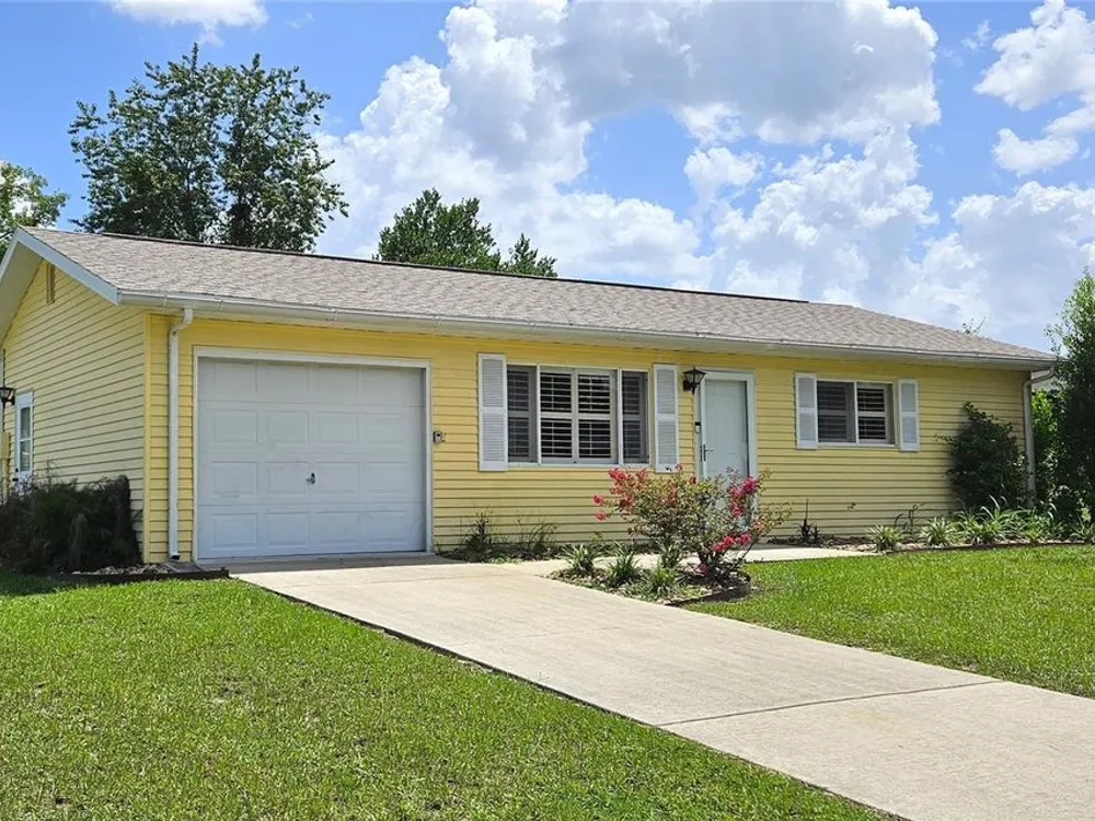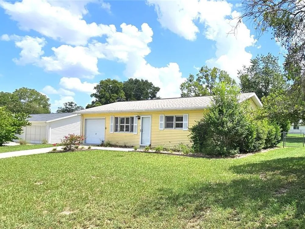 Two-bedroom, one-bathroom and a one-car garage with a side entry door. Plantation shutters, a Florida room, tile flooring, carpeted bedrooms, and an updated bathroom. Fully fenced yard with two gates. AC 2015, New roof 2025. Located in a safe and secure, 24-hour gated 55+ community with a low management fee. Amenities, including planned social events, a library, billiards, a card room, an arts and crafts room, a community pool, and a tennis court. The low management fee covers trash removal, access to the 24-hour guarded gate, maintenance of common areas, and use of the clubhouse facilities. This property is conveniently located in Southwest Ocala, just a short distance from shopping, restaurants, VA hospitals, and other healthcare facilities. Golf carts are permitted, and RV/boat storage may be available for a modest monthly fee. The property is just minutes from I-75, one hour from Gainesville, and one and a half hours from Disney.