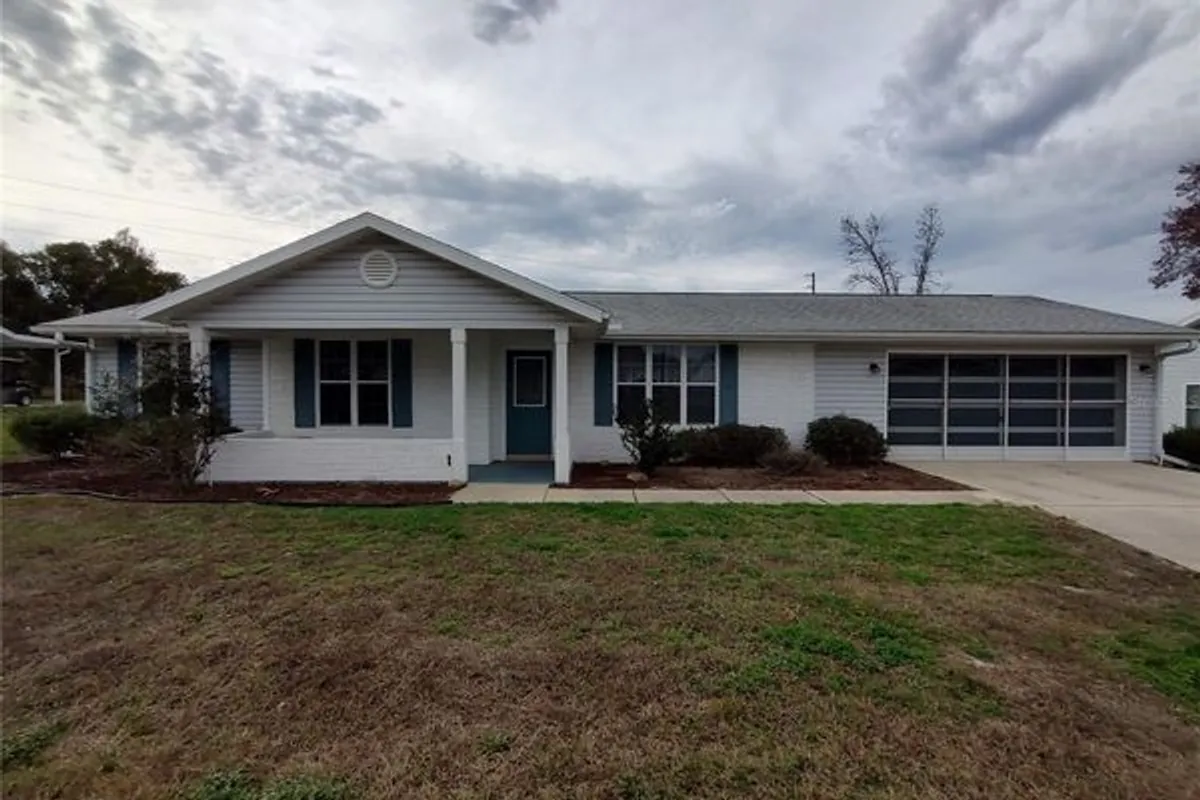 Lovely expanded Hampton model located near the Oak Run Island Club. As you enter the home you notice the laminate flooring that is throughout the main living space of the home. There is a lovely eat-in kitchen with newer appliances. This charming kitchen features lots of counter space, storage and tile backsplash throughout. This dining space has been expanded to allow for comfortable dining. Additional living space is provided by extending into the carpeted back den area. The den leads out to enclosed lanai and covered back patio. The large master suite features a large walk-in closet, the master bath and shower. Large two-car garage with work space and access to the fenced back yard. All the major upgrades have been done; AC is less than 9 years old and roof replaced 2021. Oak Run enjoys numerous amenities including gated entry, 3 clubhouses, 6 pools, pickleball, tennis courts and over 100 clubs and organizations. If you are looking for your full time residence or a seasonal retreat this home is ready for it's next owner! This home is a must see!