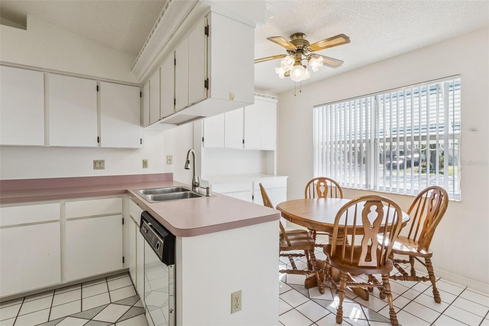 - Ceiling Fan(s), Eat-in Kitchen, Living/Dining Room, Main Level Primary, Solid Surface Counters, Split Bedrooms, Thermostat, Tray Ceiling(s), Walk-In Closet(s), Window Treatments