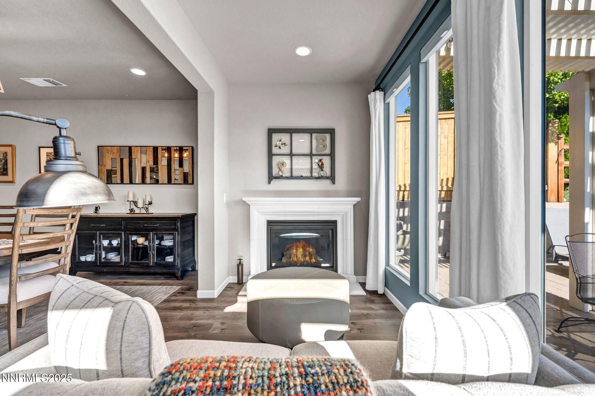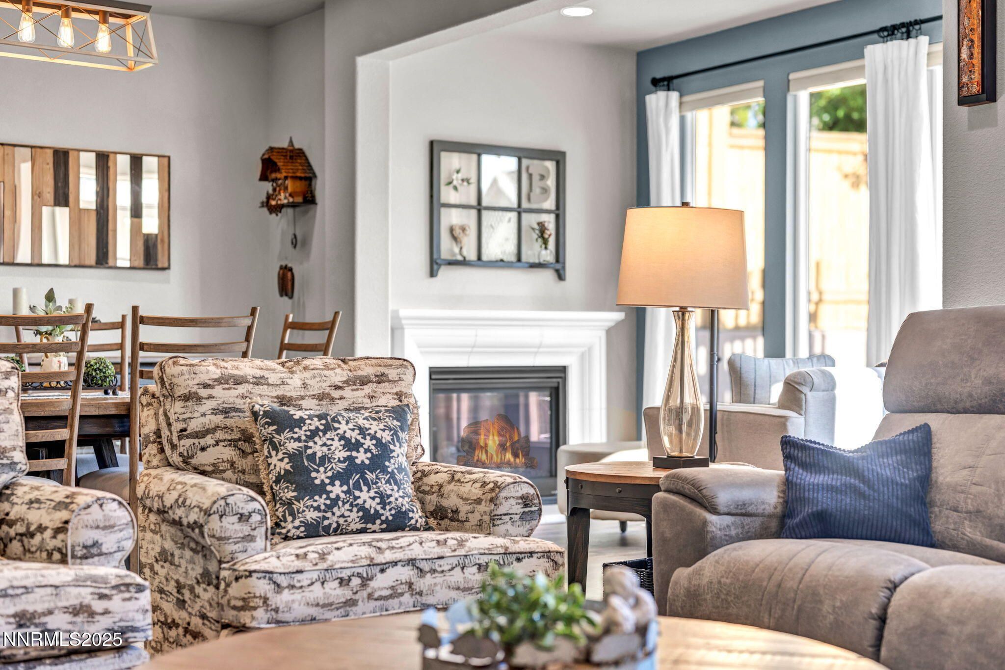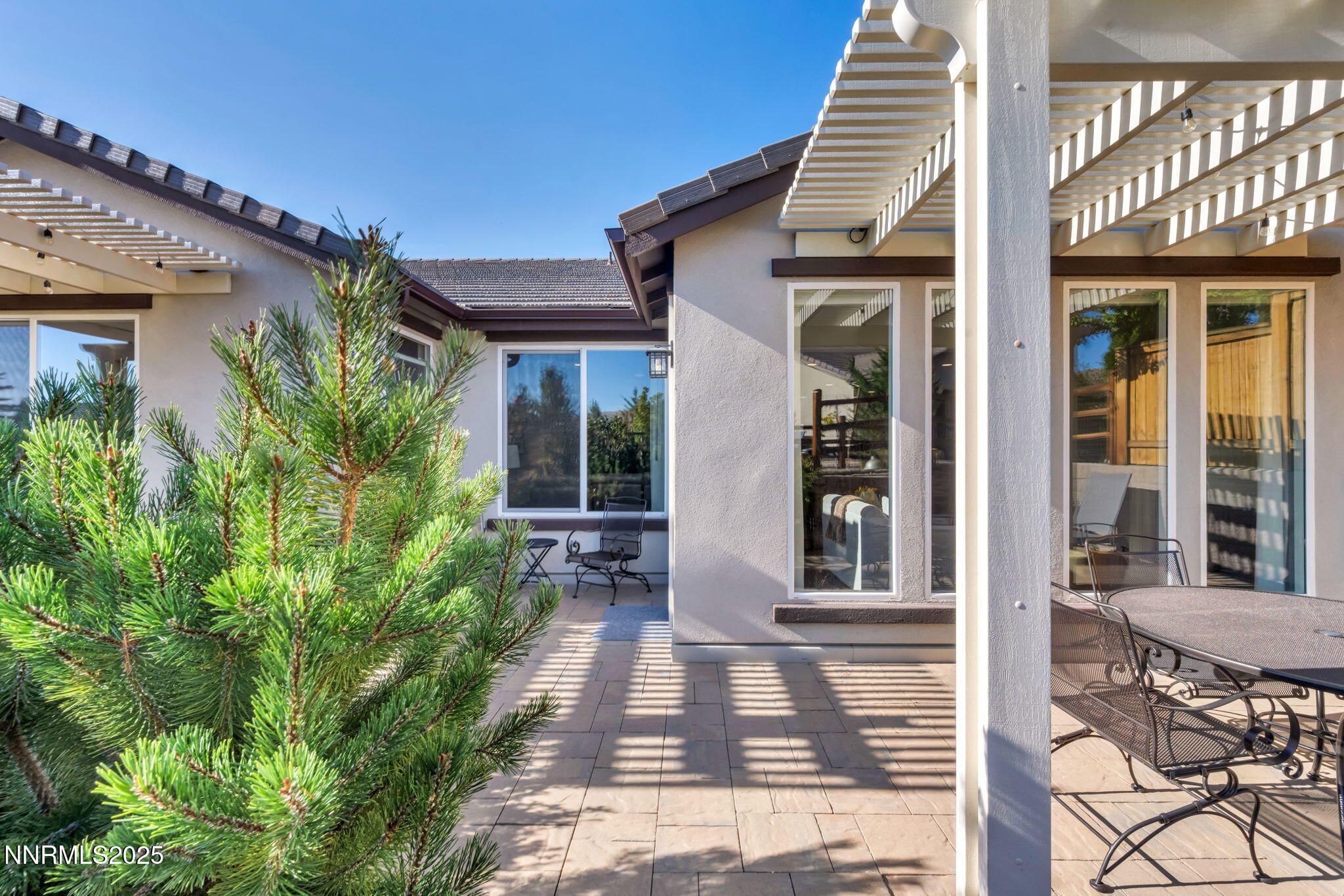 Welcome to sought out Alpine model, located in the highly desirable Del Webb 55+ community at Somersett in Northwest Reno. This thoughtfully updated 2 bedroom, 2 bath home includes a versatile office/den. It blends comfort and convenience with low-maintenance living. The kitchen features crisp white cabinets, new laminate flooring, two pantries, under-cabinet lighting, and an under-sink instant hot water system. A cozy hearth room with a gas fireplace creates the perfect space to relax, while thoughtful details like a built-in hall tree, custom bookcase, and closet organizers add both charm and function. Smart-home and energy-efficient features include a Nest thermostat, whole-house fan, Yale/Nest auto-locks, and yearly roof inspections for peace of mind. A French door with side light brightens the living space and leads to the outdoors, where you'll enjoy a welcoming front courtyard, two backyard awnings, and easy-care xeriscape landscaping. Living in Del Webb at Somersett means more than just a home—it's a lifestyle, with access to exclusive amenities, scenic surroundings, and a vibrant, active community. This move-in ready home offers the best of modern living in one of Reno's most sought-after neighborhoods.