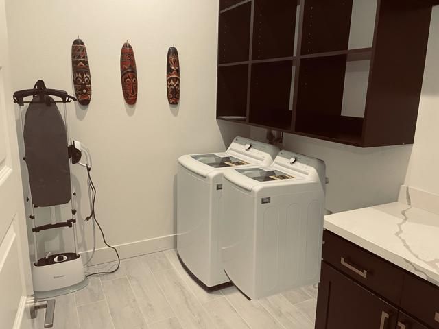 Welcome to your new home in the spectacular Trilogy Polo Club! This premier, gated, 55+ community offers everything you need for active adult luxury living. This exceptional home, built in 2022, boasts 3 bedrooms, 3 baths, plus a large Den/Media room. One of the largest models, it offers 2,367 SqFt, with every bit of it showcasing beautiful ceramic floor tile. Nearly every upgrade is included: Quartz countertops and coffee bar, a Kohler farm sink, Kohler bath fixtures, 9-foot doors, a spa like primary bath featuring beautiful tile shower, rainfall glass shower, a huge LED mirror, and a walk-in closet with built-in cabinetry. Experience great indoor-outdoor entertaining as you pass through the triple slide patio door system to the extend covered patio space. Full paver extensions on the back patio and both sides of the home include an upgraded drainage system. Upgrades for the large 3 car garage include a 4 foot garage length extension, allowing for all full size vehicles, custom glass panel doors, a 24,000 BTU mini split AC, a 60 Amp EV charging outlet, a 20 year water softener/filtration system, ceiling storage system, tankless water heater, and a heavy duty security safe. The entire garage also had wall insulation added to help keep it cool. The Polo Club 25,000 Sq Ft clubhouse, includes a restaurant, bar, fitness center, game room, recreation rooms, tennis, pickle ball, pools, bocce ball, putting green, and endless activities. See attached Club brochure. Membership initiation has been paid, and just the transfer fee would be required. Don't miss this opportunity to enjoy the best desert living lifestyle!