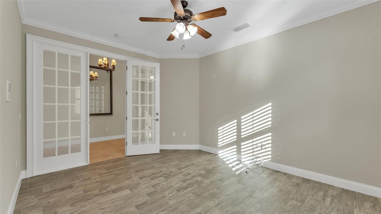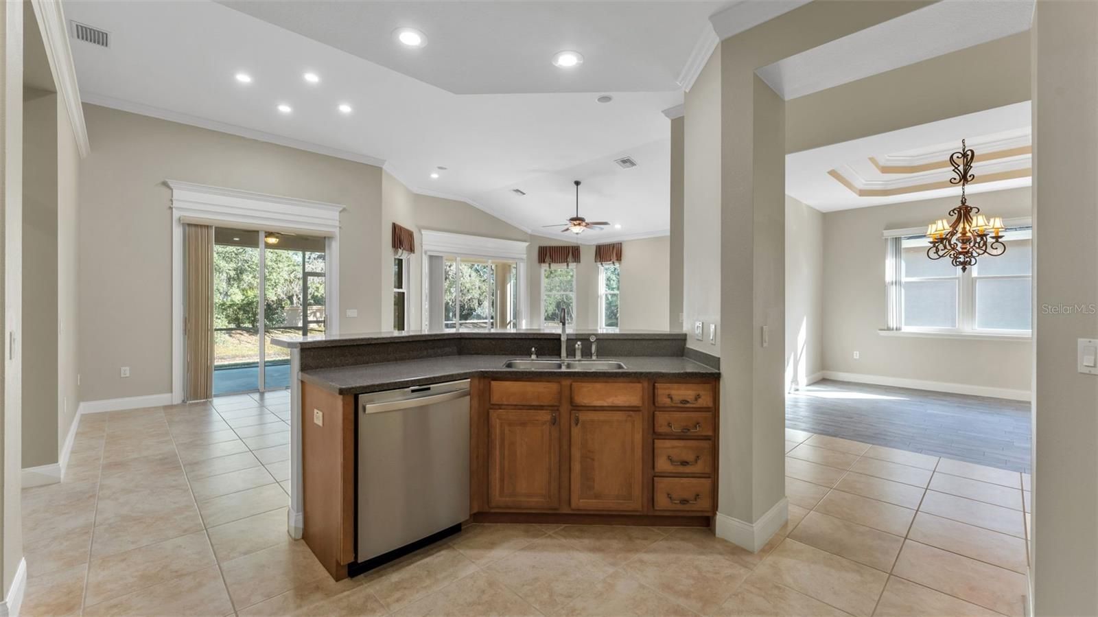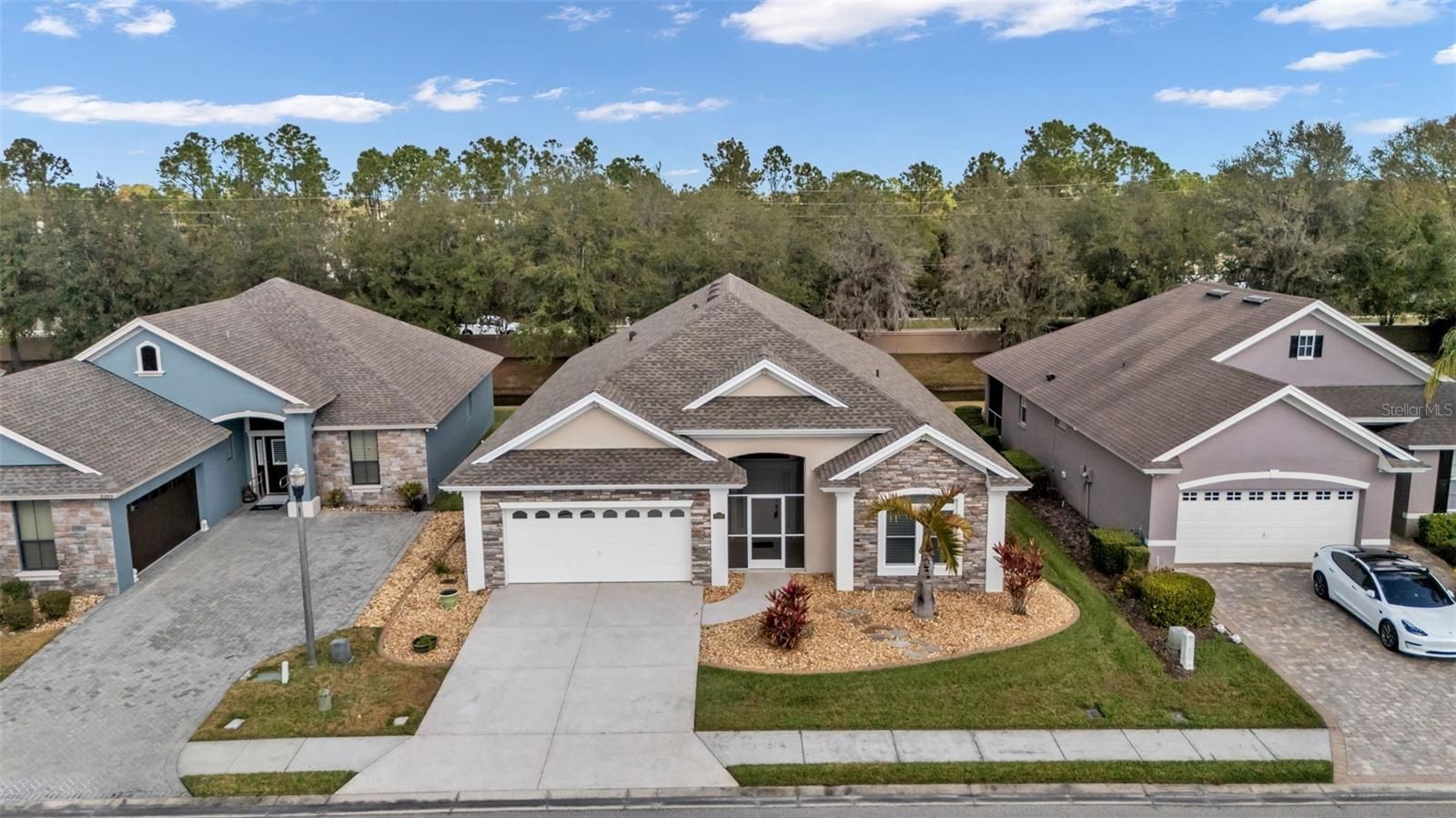 Discover refined, low-maintenance living in Lake James, a sought-after gated 55+ community featuring exclusively Ernie White–built homes known for their quality and craftsmanship. Residents enjoy an exceptional lifestyle with access to a clubhouse, fitness center, heated lakeside pool, walking paths, sidewalks, and a secure gated entrance. This “Hollingsworth” model home offers a thoughtfully designed split floor plan with 2 bedrooms, 2 bathrooms, and a dedicated office. From the moment you arrive, the home’s curb appeal stands out with stone accents, an impressive elevation, freshly painted exterior and driveway, and lush landscaping. Inside, a welcoming foyer opens to a beautifully detailed interior showcasing the builder’s signature touches—crown molding, tray ceilings, French doors, and custom built-ins. Stylish tile flooring, plantation shutters, upgraded fixtures, and ceiling fans enhance both form and function throughout the home. Designed with entertaining in mind, the open main living area features soaring ceilings, a formal dining space, and a generous kitchen that overlooks the family room and casual dining area. Large sliding glass doors flood the space with natural light, frame serene water views, and lead to the covered and screened rear porch—an ideal spot to unwind or host guests. The spacious primary suite serves as a private retreat, offering an oversized bedroom, a spa-inspired en-suite bathroom, and an impressive walk-in closet with custom storage. Additional highlights include intercoms, a security system, double-pane windows, an interior laundry room with sink and cabinetry, and a spotless two-car garage with epoxy flooring and built-in shelving. This move-in-ready home has been meticulously maintained and updated, including a new roof (2022), fresh exterior paint (2024), interior paint (2019), and an 18-SEER HVAC system (2019). GE Profile appliances (2022) and the washer and dryer are included. Enjoy true maintenance-free living with lawn care, landscaping, fertilization, pest control, and basic cable all included, allowing more time for relaxation, community activities, and enjoying the Central Florida lifestyle. Ideally located in Lakeland between Tampa and Orlando, Lake James offers convenient access to theme parks, beaches, dining, and entertainment. Experience the comfort, convenience, and quality of life waiting for you in Lake James.