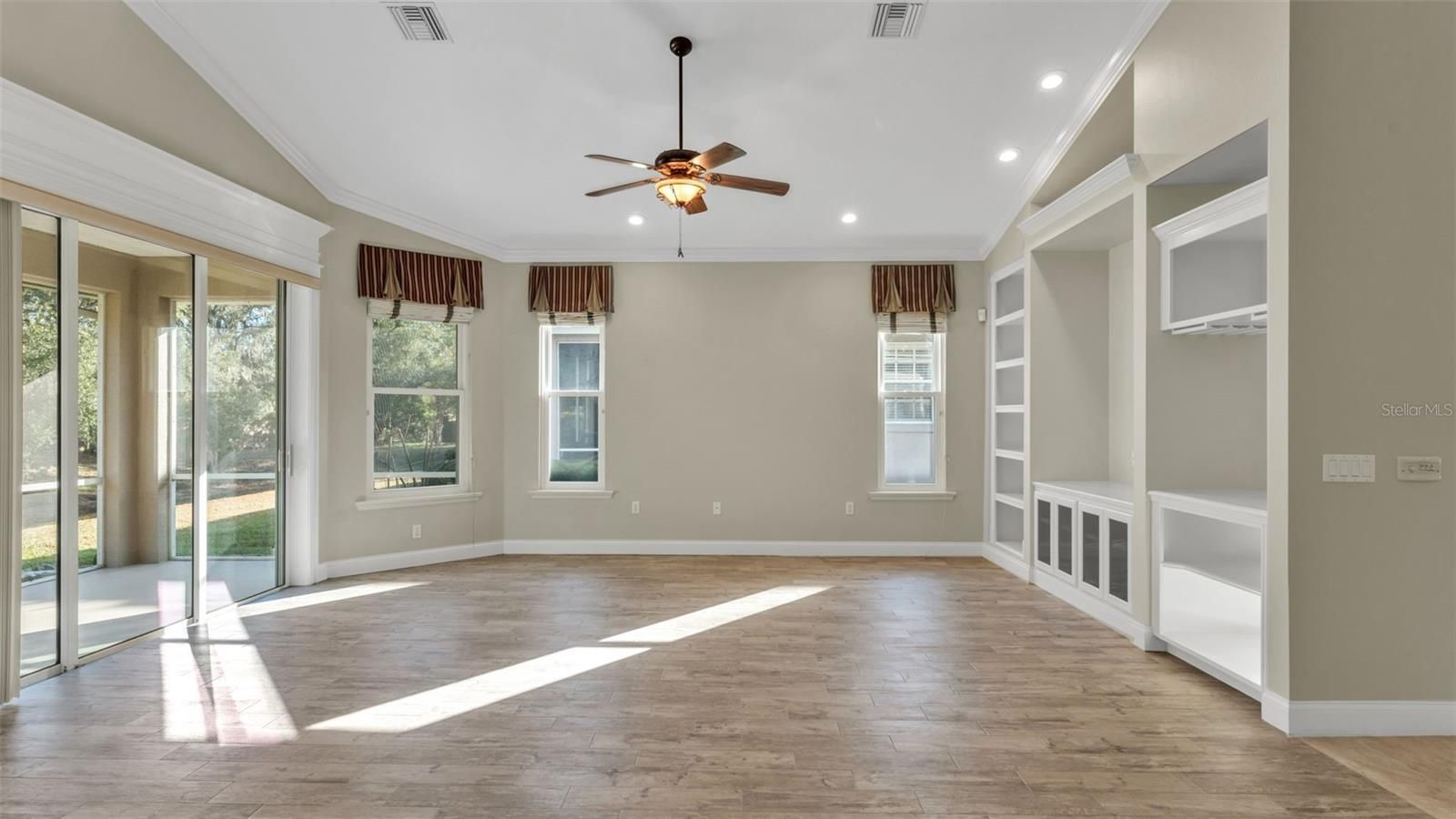 - Built-in Features, Ceiling Fan(s), Crown Molding, High Ceilings, Open Floorplan, Solid Surface Counters, Solid-Wood Cabinets, Split Bedrooms, Tray Ceiling(s), Walk-In Closet(s), Window Treatments
