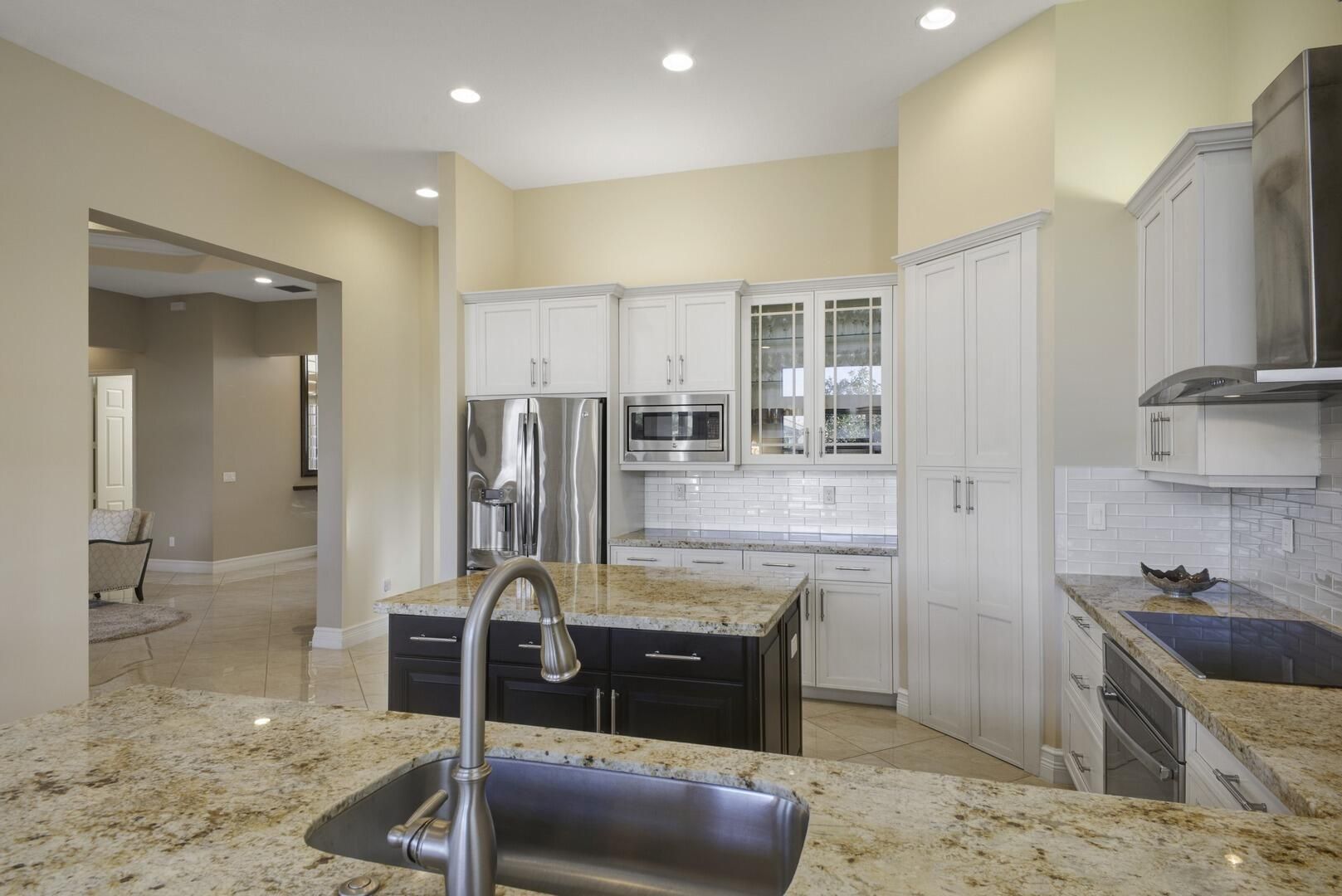 This stunning 3-bedroom plus den, 3-bath home in Valencia Cove showcases elegant design and modern comfort throughout. A glass double-door entrance opens to a formal living room with a coffered ceiling and a formal dining room with a vaulted ceiling, creating a grand first impression. The dream kitchen is beautifully appointed with granite countertops, a tiled backsplash, cabinets with pullouts, stainless steel appliances, a breakfast nook, and a snack bar, all flowing seamlessly into the spacious family room--perfect for entertaining or relaxing. The primary suite offers a peaceful retreat featuring a coffered ceiling, private access to the patio, two walk-in closets, and a luxurious bath with dual sinks topped with marble counters, a soaking tub, and a walk-in shower.