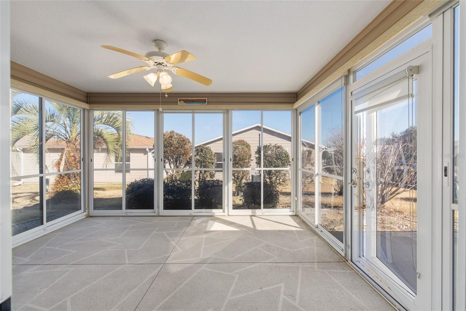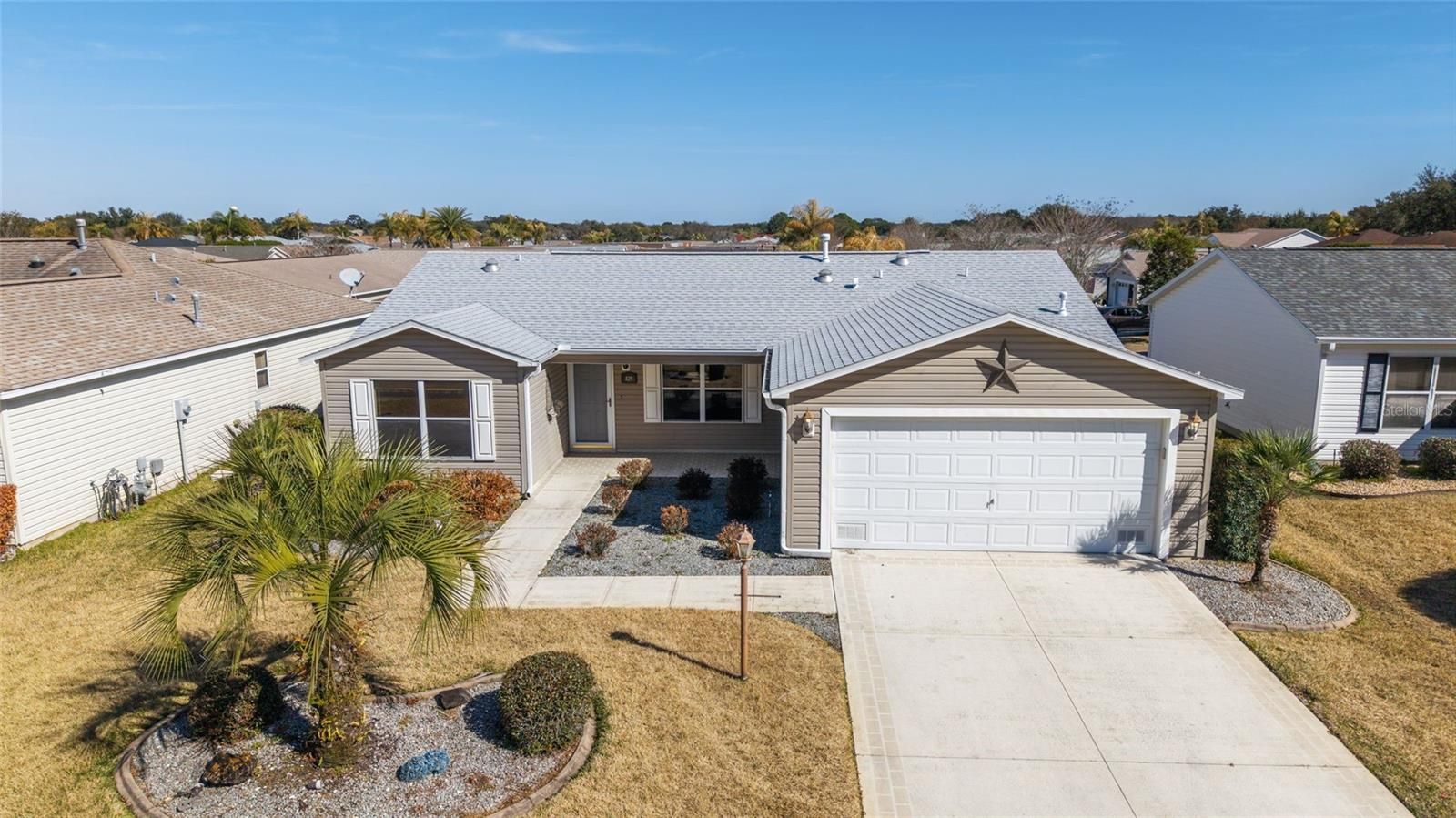 One or more photo(s) has been virtually staged. Welcome to 829 Evelynton Loop. Bond is paid. This Amarillo model is ideally situated just minutes from Costco and a range of shopping, fuel, and dining options along Hwy 466. The property offers convenient access to Executive Golf Courses, the Lynnhaven Neighborhood Pool, and the Churchill Downs Recreation Center, which features a family pool and numerous recreational activities. Follow the painted drive and sidewalk up to your new home to a nice outdoor sitting area. This residence presents an efficiently designed split ranch floorplan, providing three bedrooms and two bathrooms—a blend of comfort, style, and practicality well-suited for life in The Villages. Quality laminate flooring extends through the main living areas, while the open kitchen is highlighted by a center island, updated appliances, and ample maple cabinetry, catering to both casual gatherings and culinary pursuits. Yes - You'll have a GAS STOVE! Each bedroom offers generous closet storage and serves as a peaceful retreat. The primary bedroom includes a spacious walk-in closet and an ensuite bathroom equipped with a shower. You will also find three solar tubes conveniently placed in the guest bath, primary bedroom closet and in the laundry area. At the rear of the home, there is no direct "kissing" lanai, as a patio villa community provides additional privacy. The sizable lanai boasts painted concrete floors and acrylic windows, increasing seasonal usability. The private backyard with a patio is ideal for entertaining or relaxing. The two car garage features painted flooring and three banks of custom storage closets. There is also an inside laundry. Enjoy the Vitually staged Living area and Primary suite! Don’t miss this beautiful home. This is a rare opportunity—schedule your private showing today to experience all this exceptional home!
