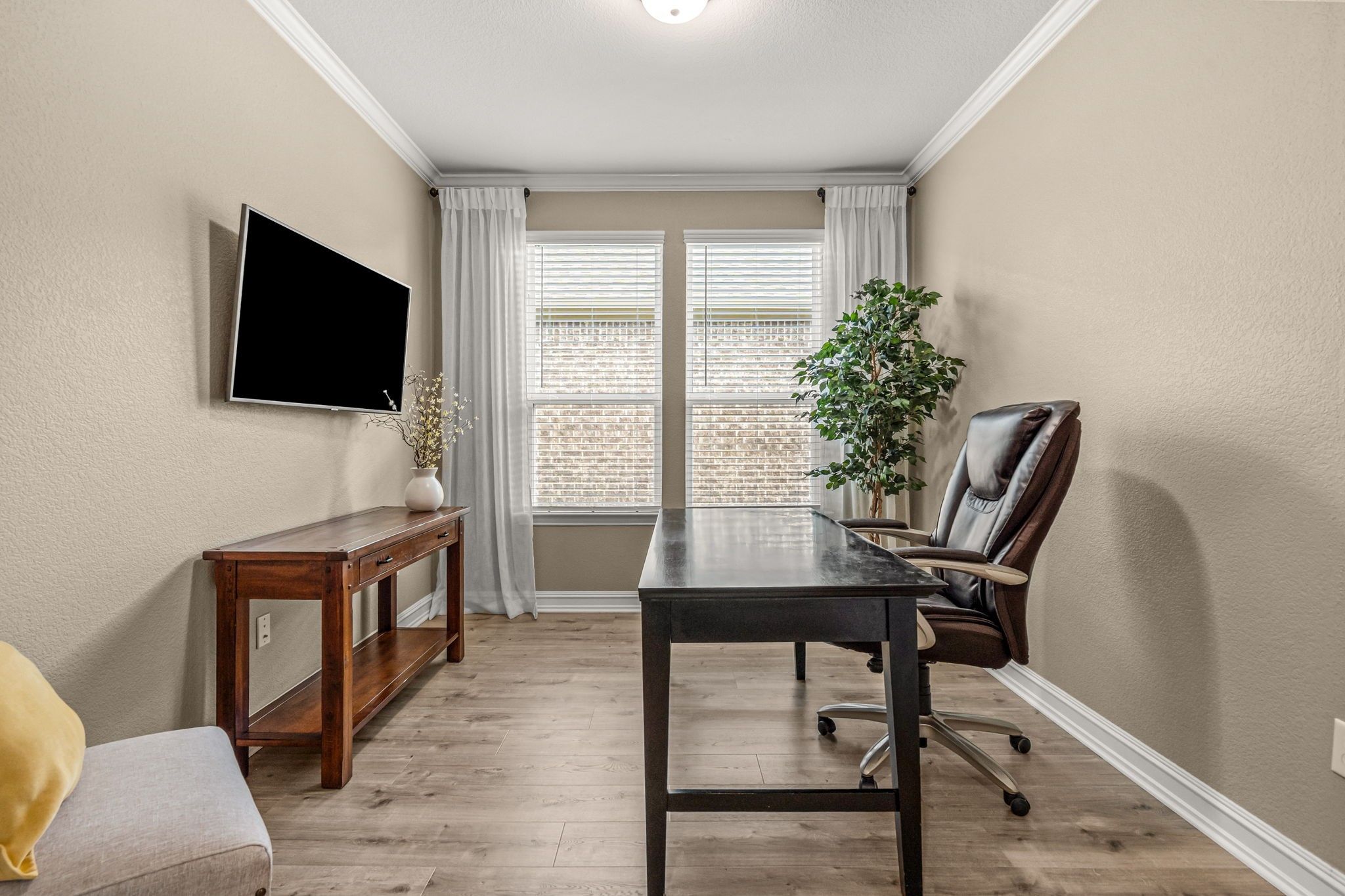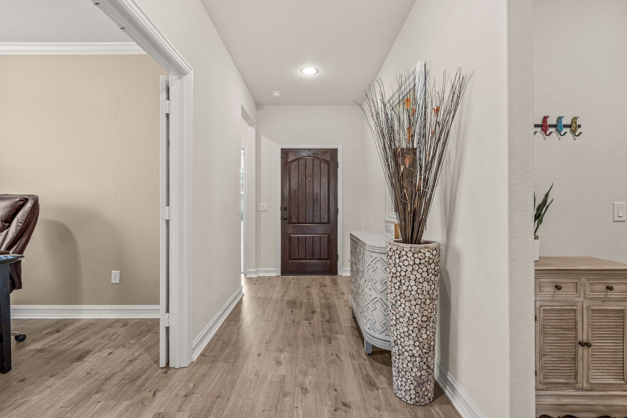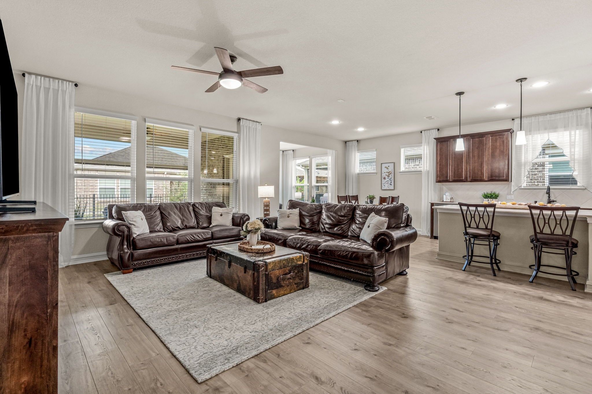 Be in your new home for the Holidays! Seller is motivated, priced under market value! Fresh new luxury vinyl plank flooring has just been installed, giving this home a modern, refreshed feel throughout. This beautifully maintained Abbeyville floor plan offers the perfect blend of comfort and style, featuring 2 bedrooms, an office with french doors, and a versatile flex space that can easily serve as a reading nook, hobby room, or whatever fits your needs. Step inside and you’ll be greeted by an open-concept design with quartz countertops, a large island, stainless steel appliances, and a gas range which is ideal for both everyday living and entertaining. The spa-like primary suite showcases a luxurious walk-in shower with rainfall showerhead, dual sinks and a quartz vanity, creating a true retreat at the end of the day. Outside, unwind on the covered patio complete with remote sunshades for privacy and comfort. Of course, the heart of Del Webb is its lifestyle. This premier 55+ community is where lifestyle and leisure come together! You’ll enjoy resort-style amenities including pickleball and bocce ball courts, a sparkling pool, state-of-the-art fitness center, miles of scenic trails, and a vibrant amenity center where neighbors quickly become friends. If you’re looking for a beautifully move-in ready home that pairs low-maintenance living with an active, social lifestyle, this one is ready to welcome you home.