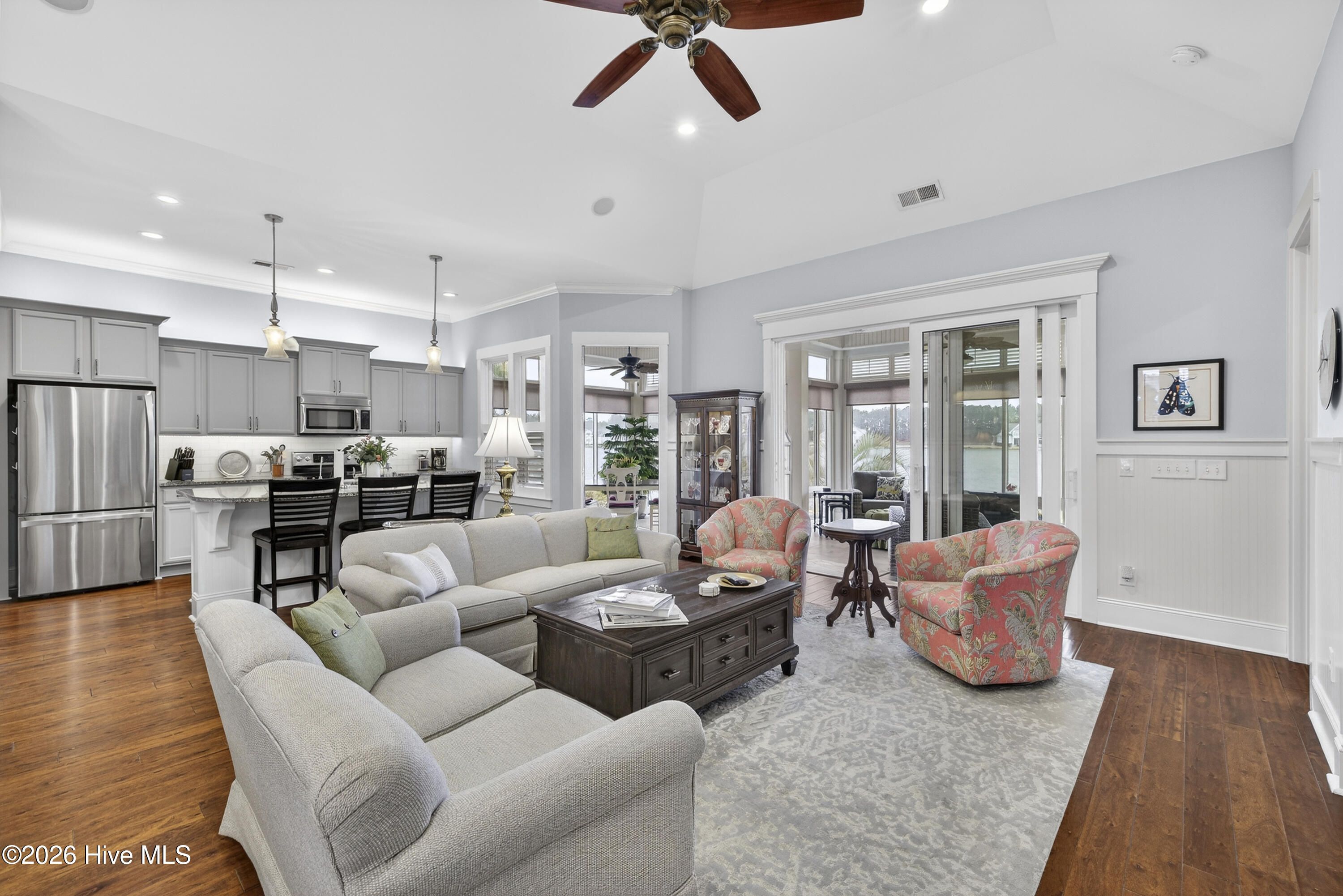 Walk through the front door and immediately take in the water view of Cardinal Lake,at the rear of the home. Ideally situated on a quiet 12-home cul-de-sac, within walking distance to resort amenities. This home offers the charm and quality expected within the award-winning Compass Pointe community. The thoughtfully designed floor plan features three bedrooms and three baths, including a private en suite ideal for guest privacy. Designer doors, engineered hardwood floors, and tasteful tile accents enhance the interior, while a whole-house generator provides added peace of mind. The inviting lanai offers the perfect space for morning coffee, entertaining, or relaxing with a book, all while enjoying expansive views of Cardinal Lake. Recent updates throughout the home include a new AC/heat pump installed in 2021, California Closets added to the primary bedroom in 2022, and a patio enhanced with uplighting and professional landscaping in 2022. A retractable awning over the patio and additional improvements further add to the home's appeal. This could be your forever home.