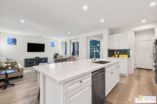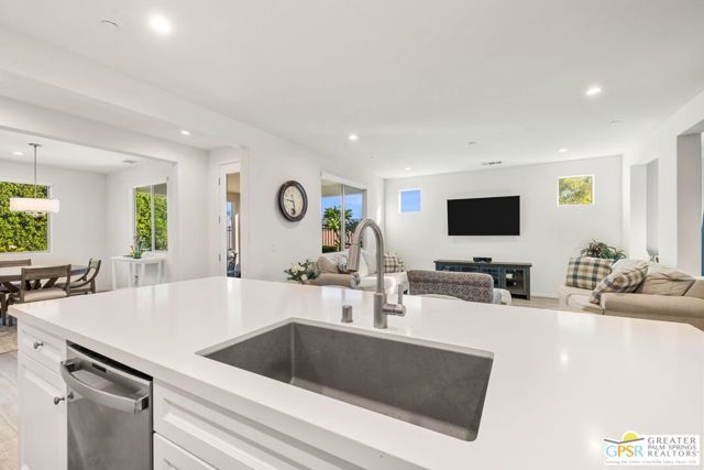 Step into one of this highly upgraded and thoughtfully designed Reunion plan located within the Trilogy Polo Club by Shea homes. Immaculate and loaded with premium, designer selected upgrades, this home immediately impresses from the moment you enter. The chef's kitchen is designed to impress, featuring GE Profile appliances, shaker style dovetail soft close cabinets, quartz countertops, an undermount sink, an expansive island, and a custom designer backsplash. Porcelain tile throughout the main living areas offers lasting durability and effortless maintenance, ideal for pets and grandkids alike.The thoughtfully designed layout places the second bedroom on the opposite side of the home, enhancing privacy for guests or family members. . A third bedroom option and is currently used as a spacious home office. A covered back patio finished with pavers and enhanced by electronic drop down sunshades creates an ideal setting for year round indoor outdoor entertaining. The backyard is beautifully curated with artificial turf, plumeria plants galore, and tall ficus trees that provide exceptional privacy with no homes directly behind you. Additional highlights include an extended garage two feet longer than standard, a space saving tankless water heater, and a versatile SmartSpace combinin
