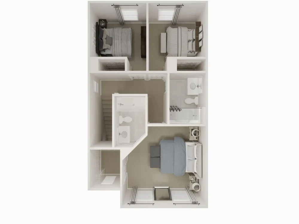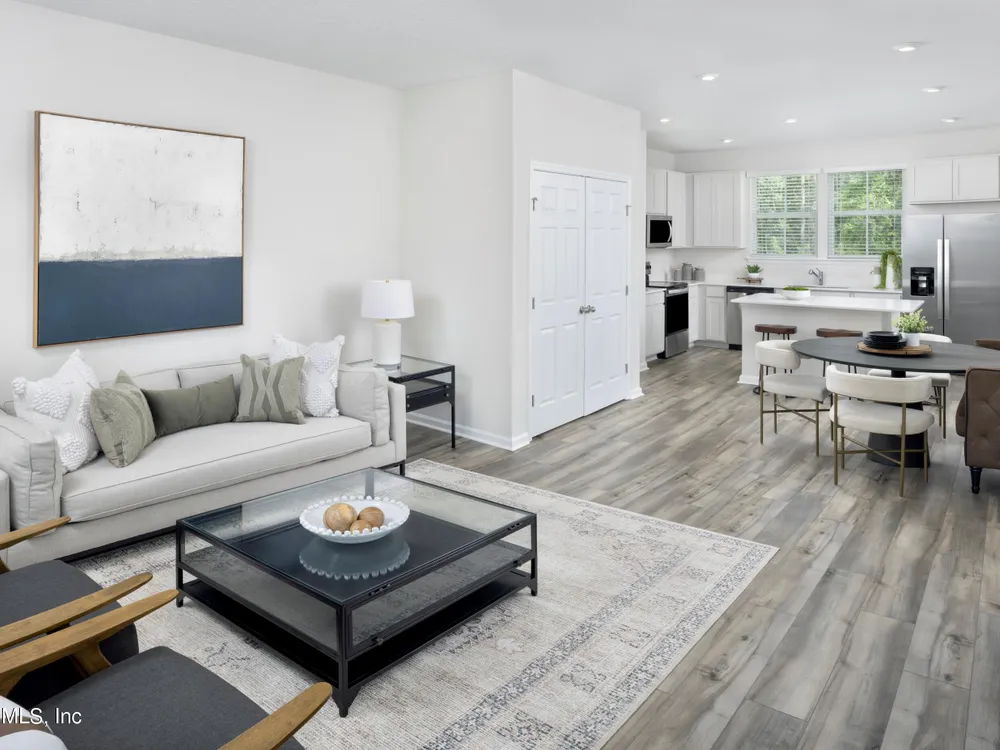 LOT 68 - The Carver's two-story townhome offers a one-of-a-kind, contemporary design in a resort-style community unlike any other. Ideal for today's busy lifestyles—whether you're a first-time buyer, a growing family, or an individual homeowner—it features an open-concept layout where living and dining spaces blend seamlessly, perfect for entertaining or relaxing. The island kitchen with breakfast bar overlooks this airy space, and the nearby powder and laundry rooms add everyday convenience. Upstairs, the owner's suite is set apart from two versatile bedrooms—ideal for a nursery, home office, wellness space, or welcoming back a college student. No other home matches this modern layout in such a vibrant setting. RIVERTOWN, a master-planned community along the St. Johns River, offers unmatched amenities focused on fitness, fun, and connection. Residents enjoy parks with scenic views, miles of nature trails, and year-round sunshine in beautiful northeast Florida.